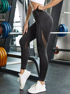 Sheer Mesh Insert Wide Waistband Sports Leggings