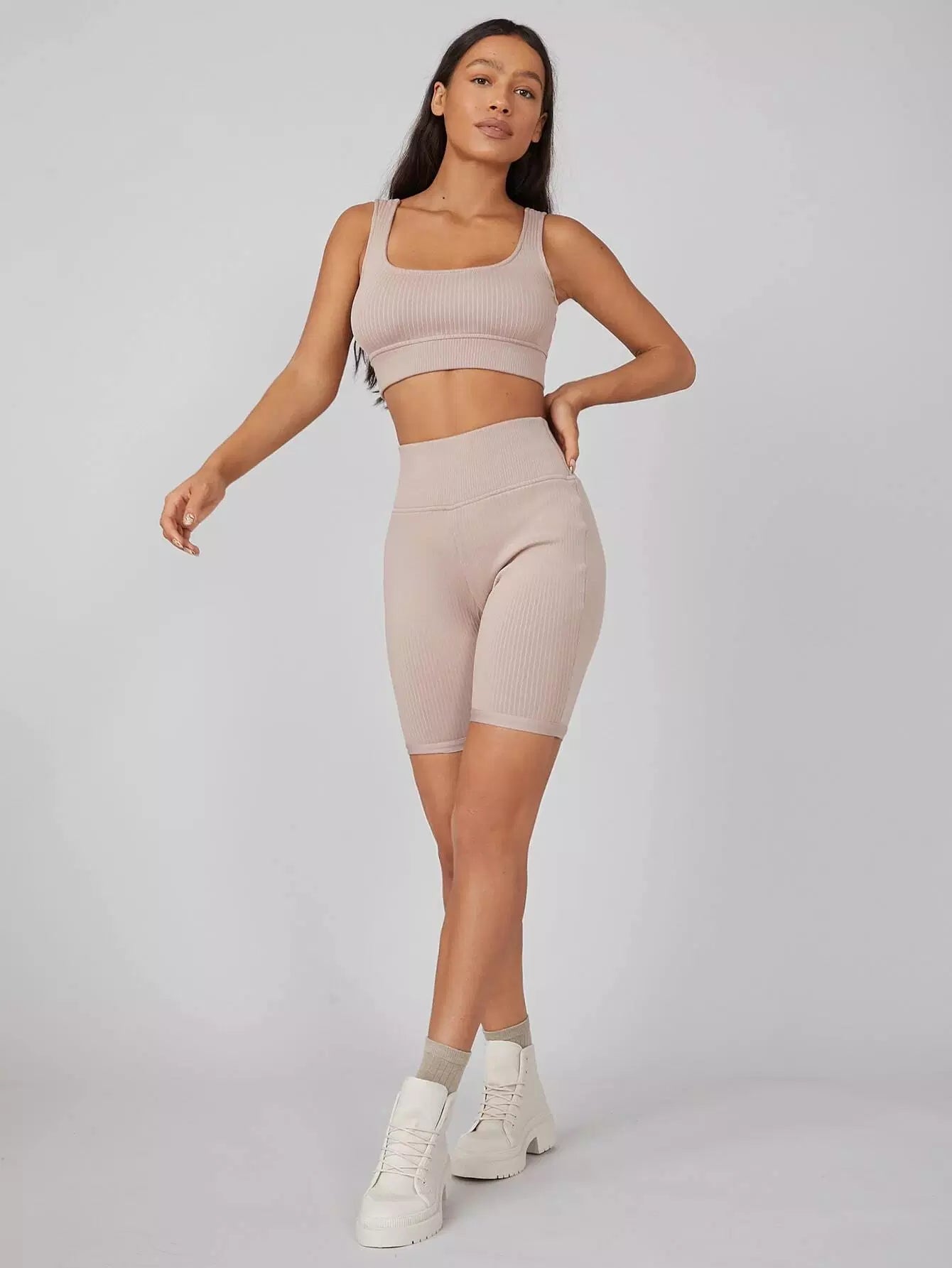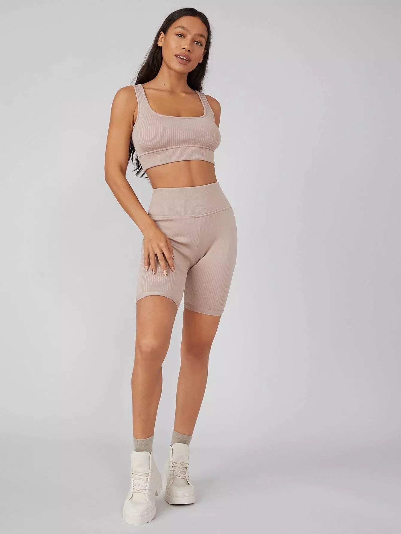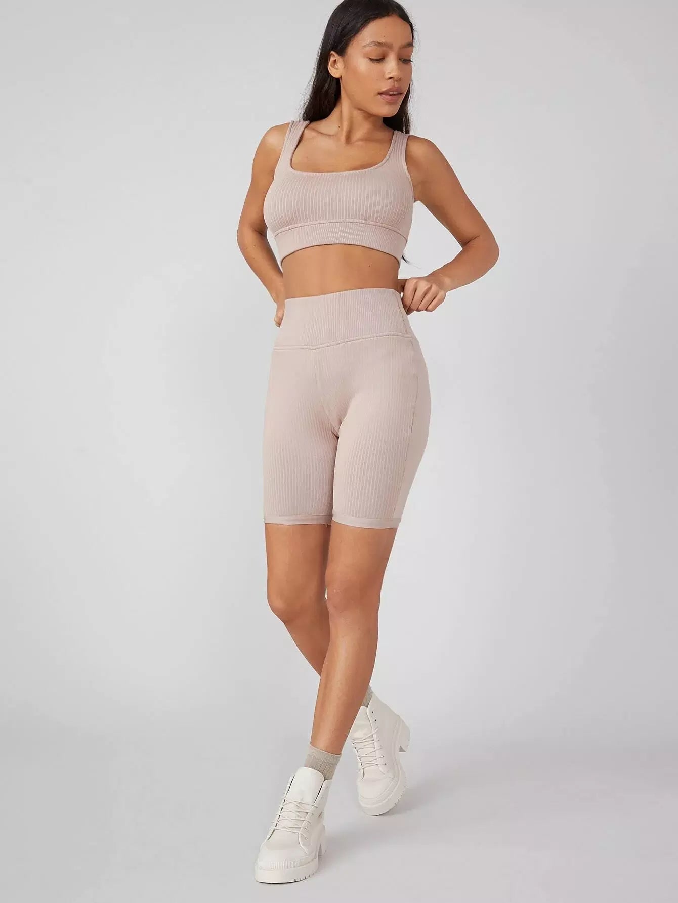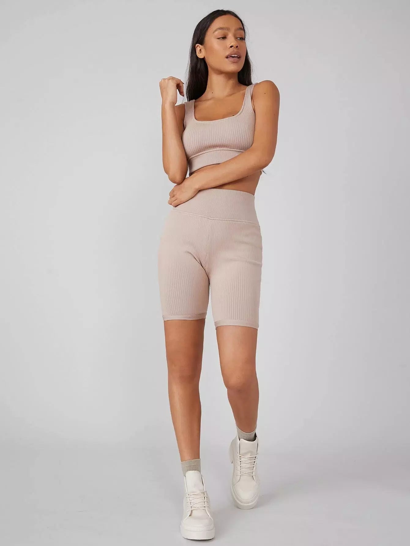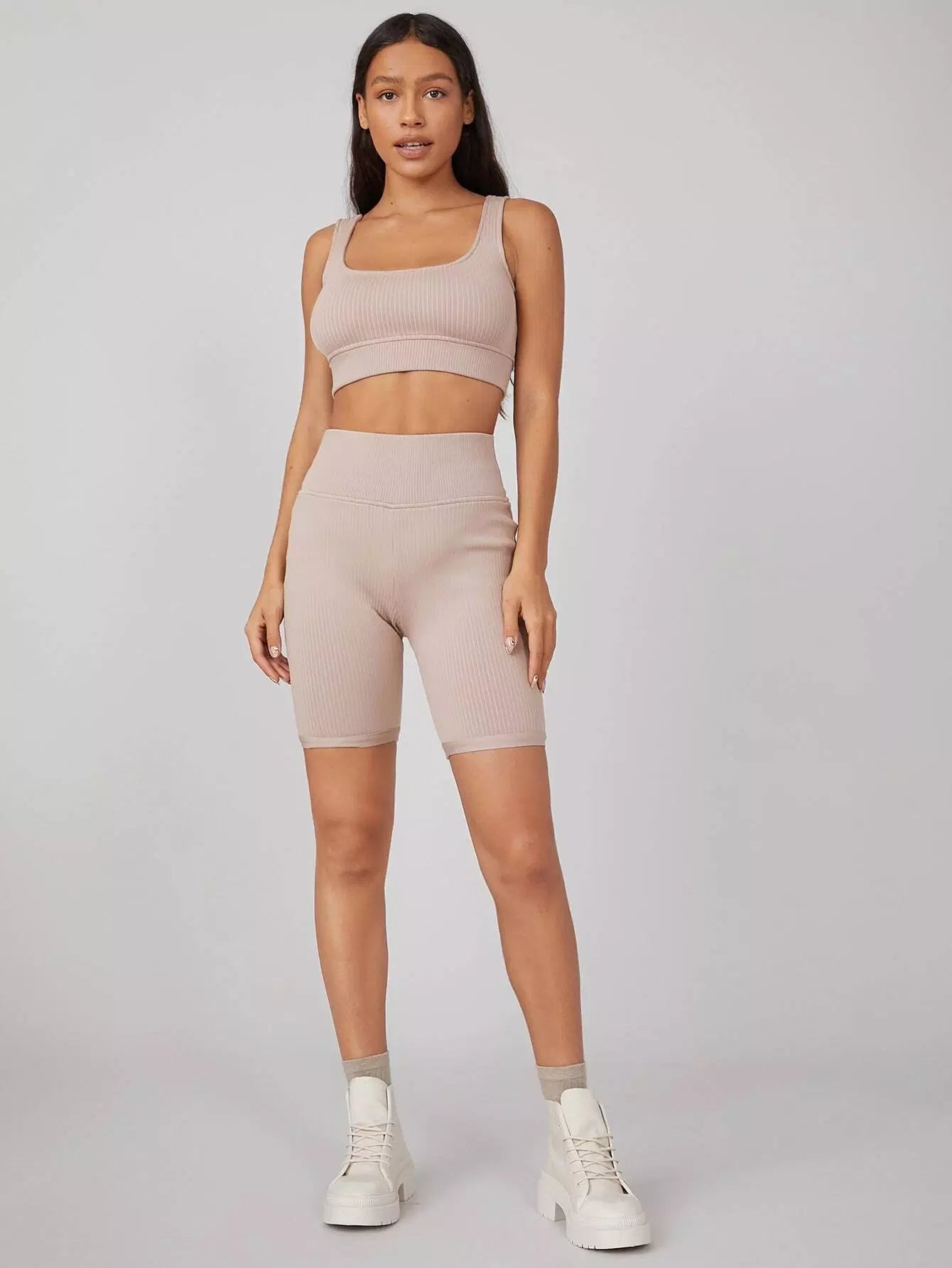 Spandex Ribbed Biker Shorts