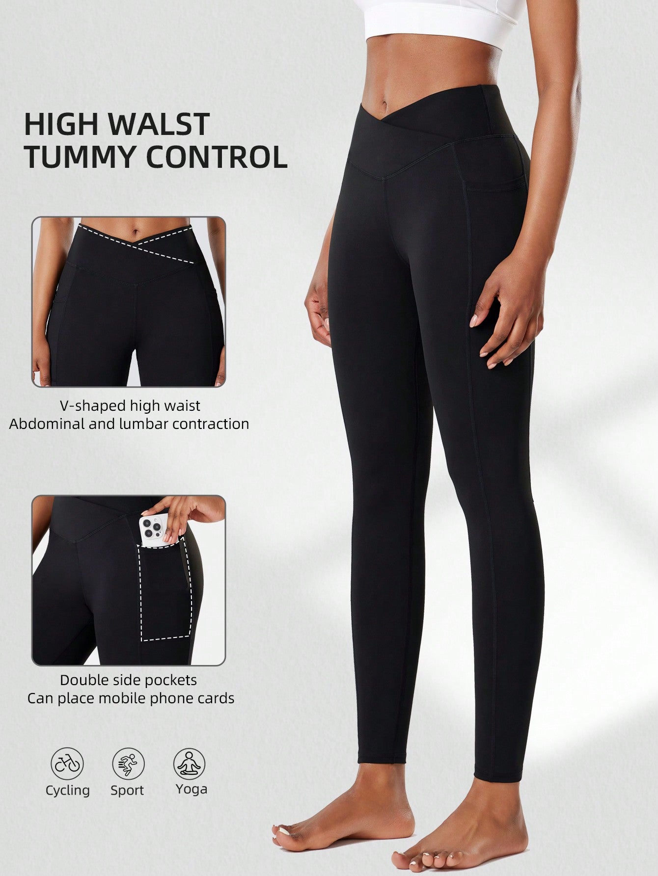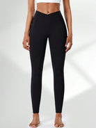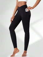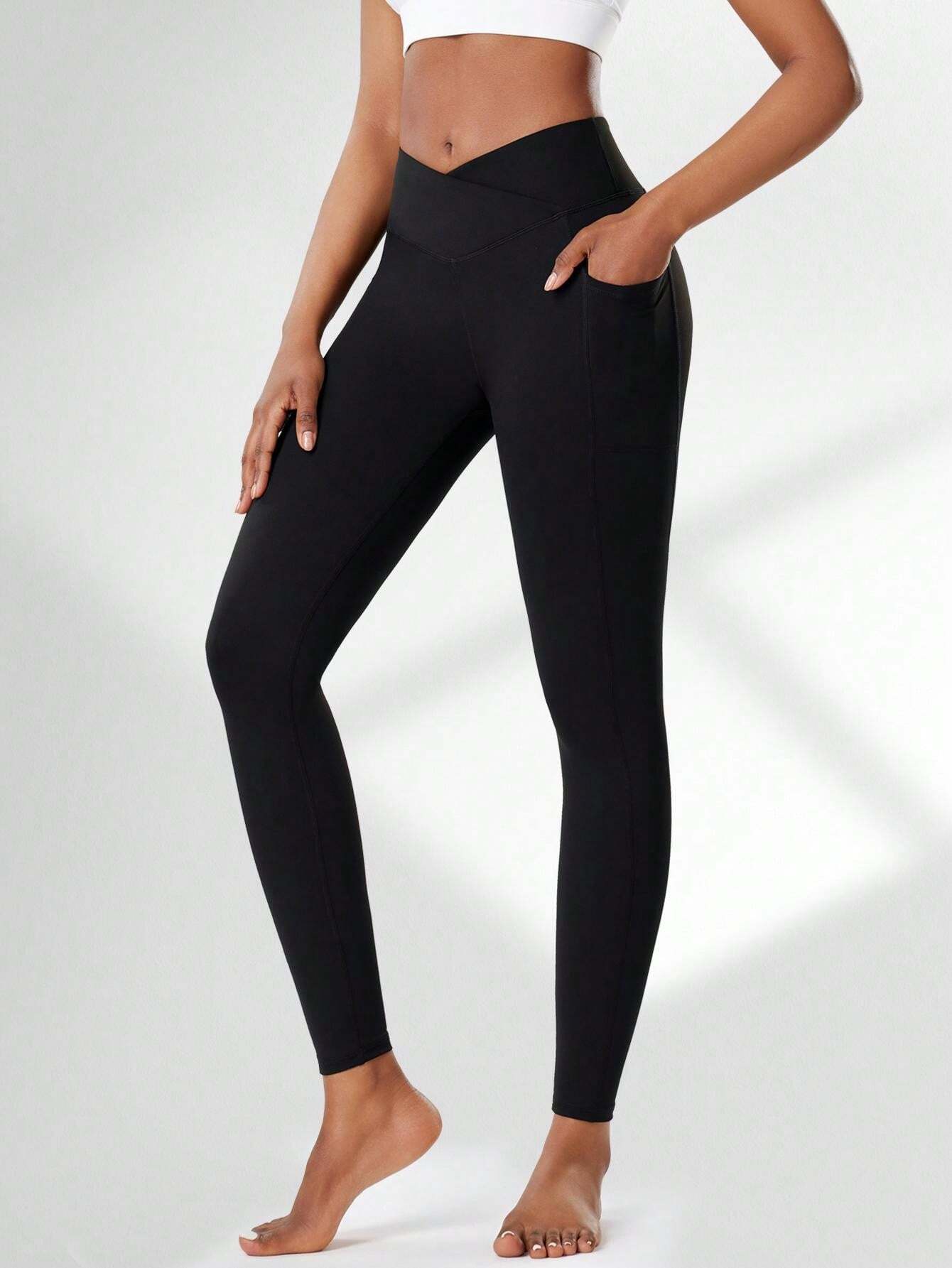 Women High Waist Yoga Pants With Side Pockets - Criss-Cross Waistband, Tummy Control, Squat-Proof, Quick