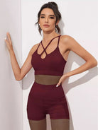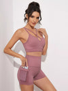 Criss Cross Front Sports Bra & Biker Shorts With Phone Pocket