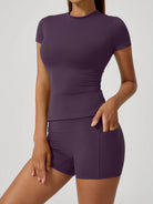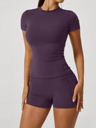 NcmRyu Women's Dance & Casual Sports Fitness Sweet Short Sleeve Butt-Lifting Shorts Activewear Set