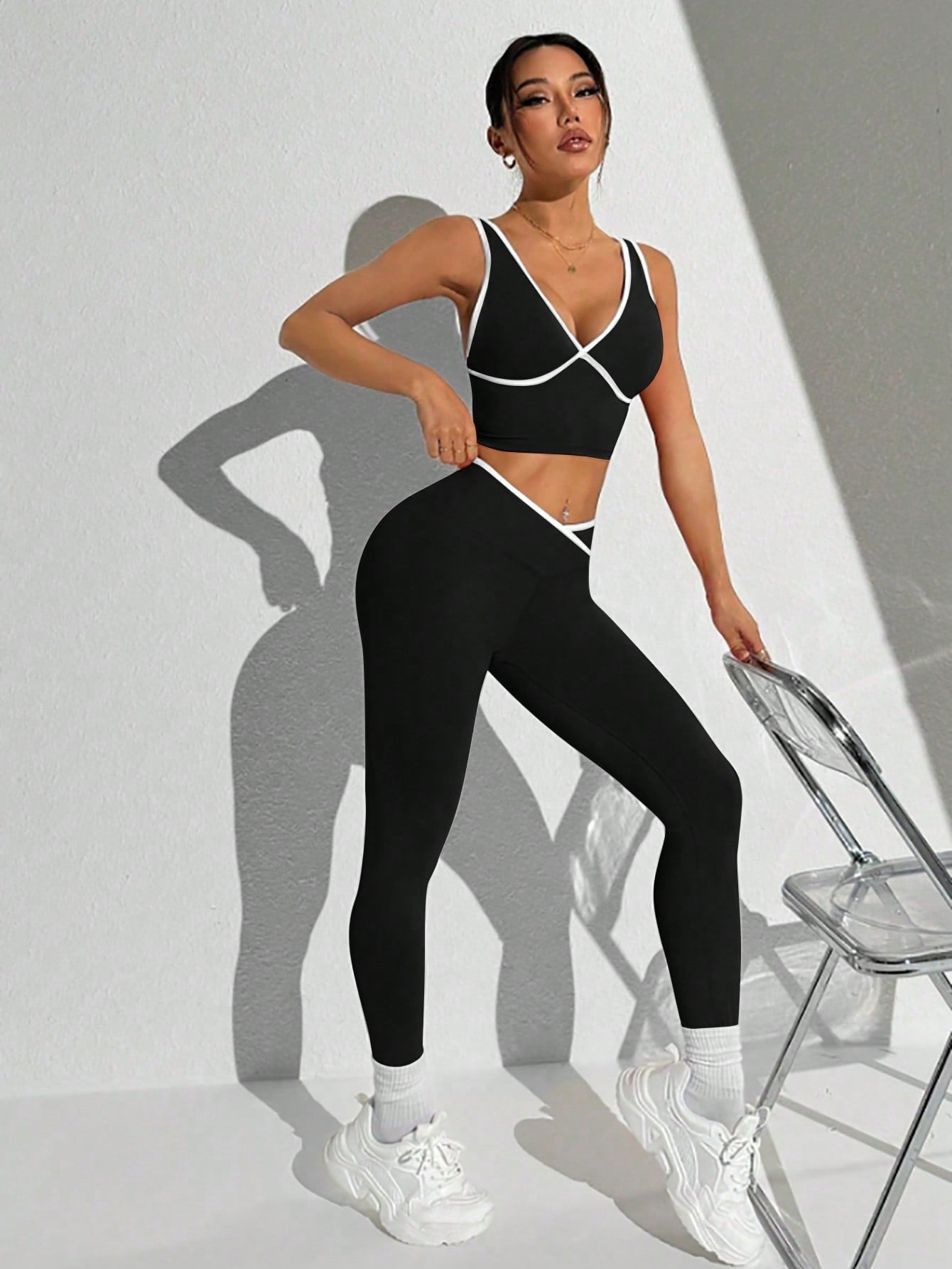 Studio Sport Women's Edging Crop Tank Top And Legging Sports Suit