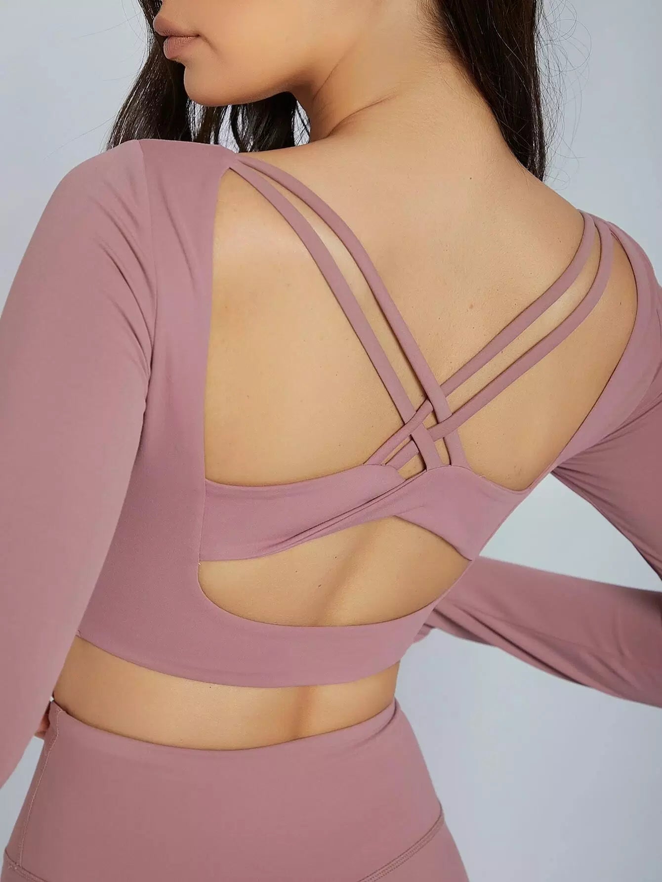 Crisscross Cutout Backless Crop Sports Tee