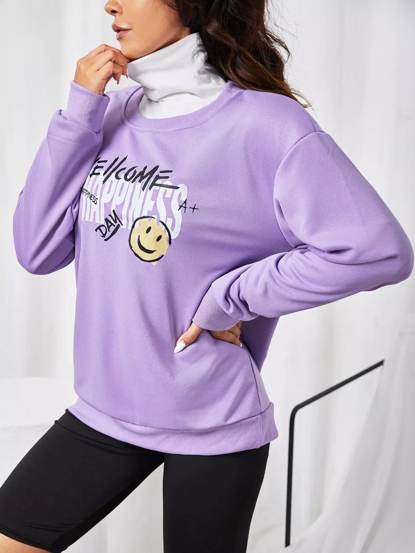 Letter & Graphic High Neck 2 In 1 Sports Sweatshirt