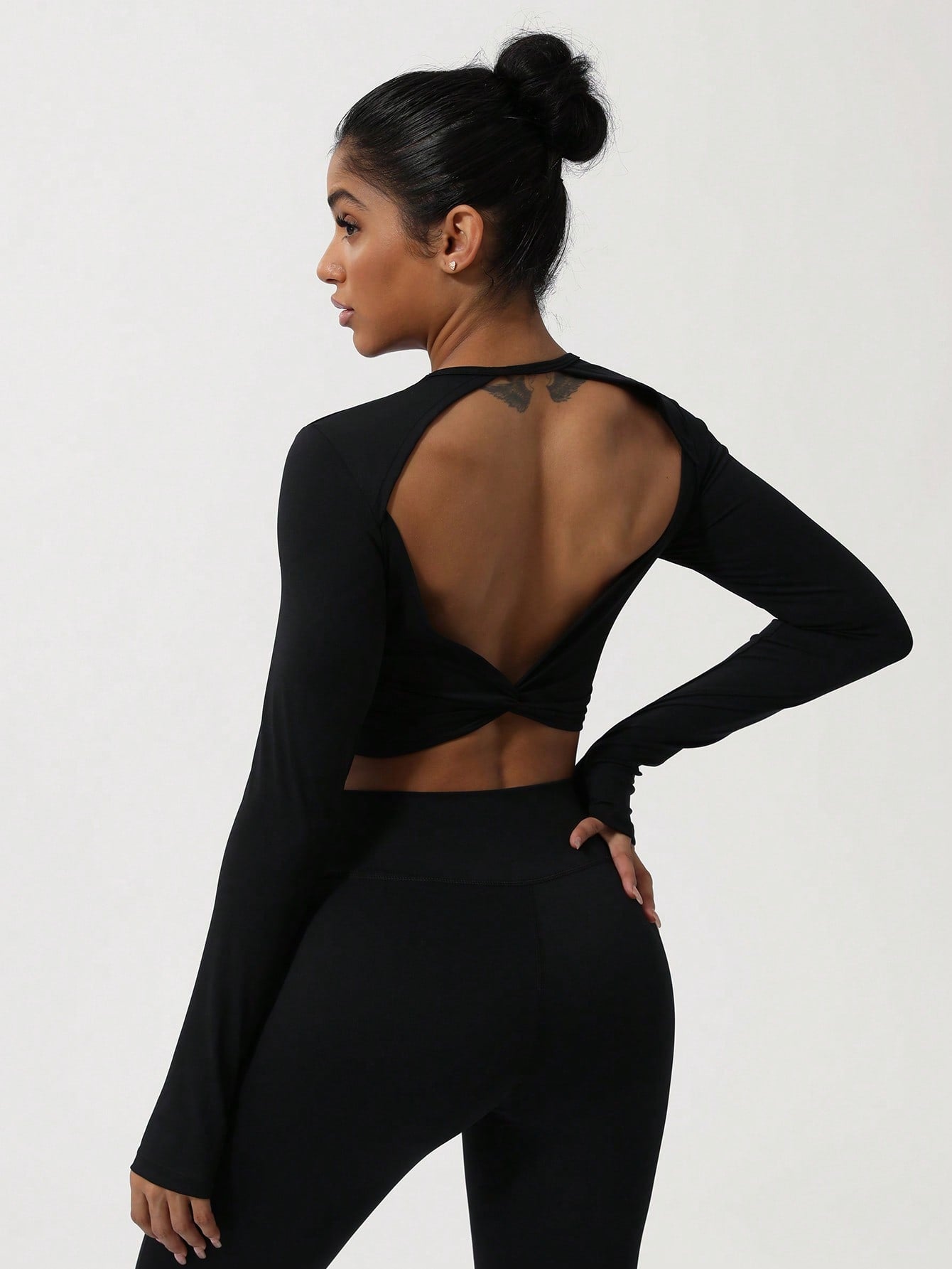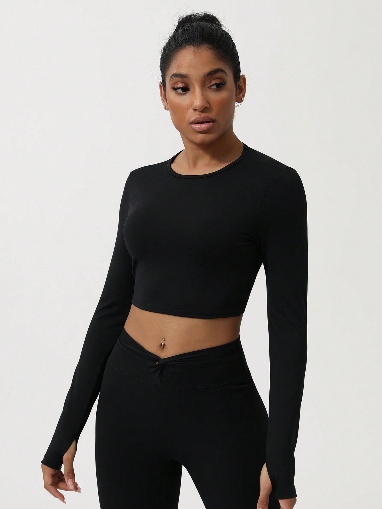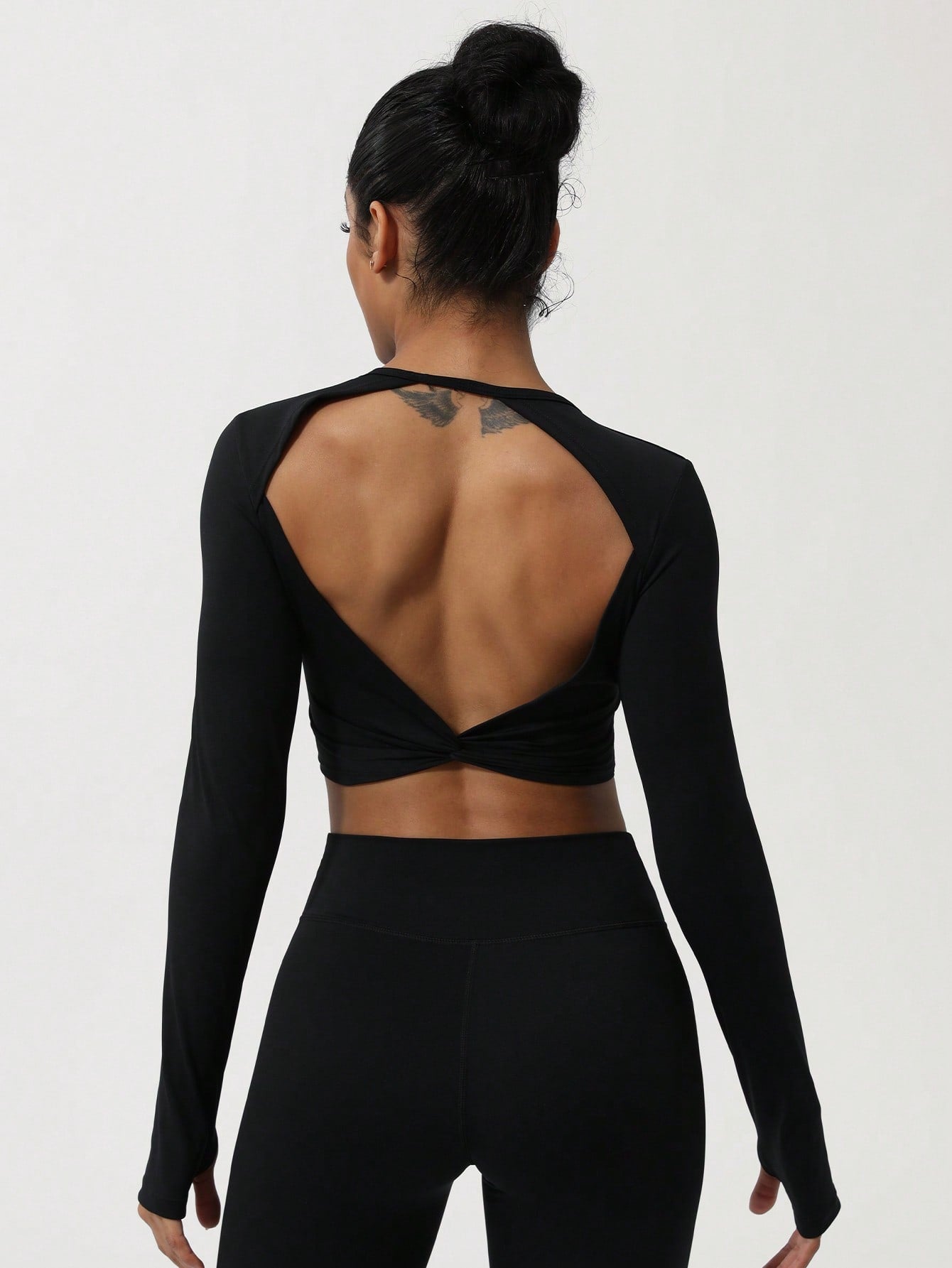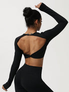 Sodalemon Women Twist Beauty Back Long Sleeve Thumb Hole Crop Sport Shirt