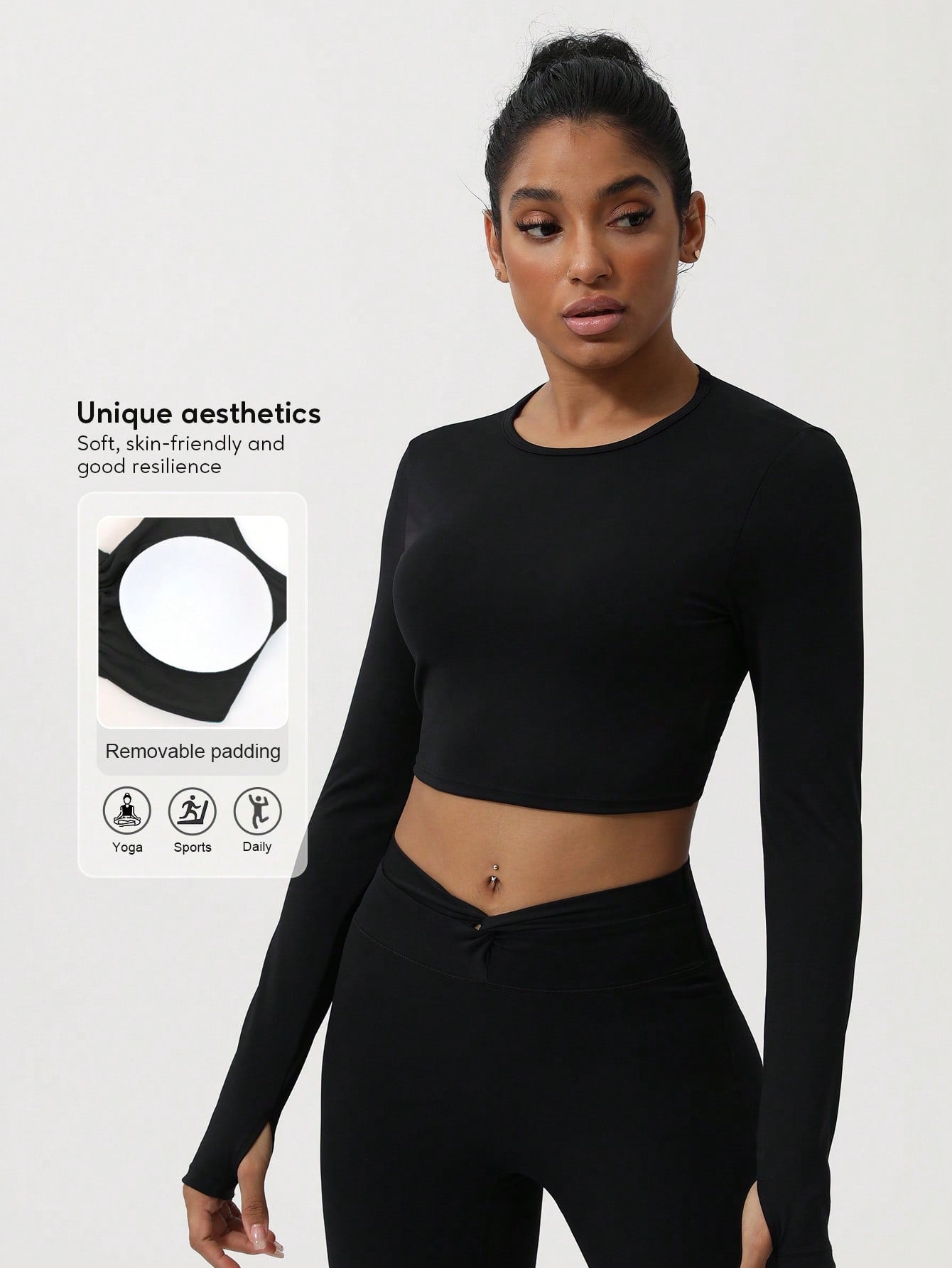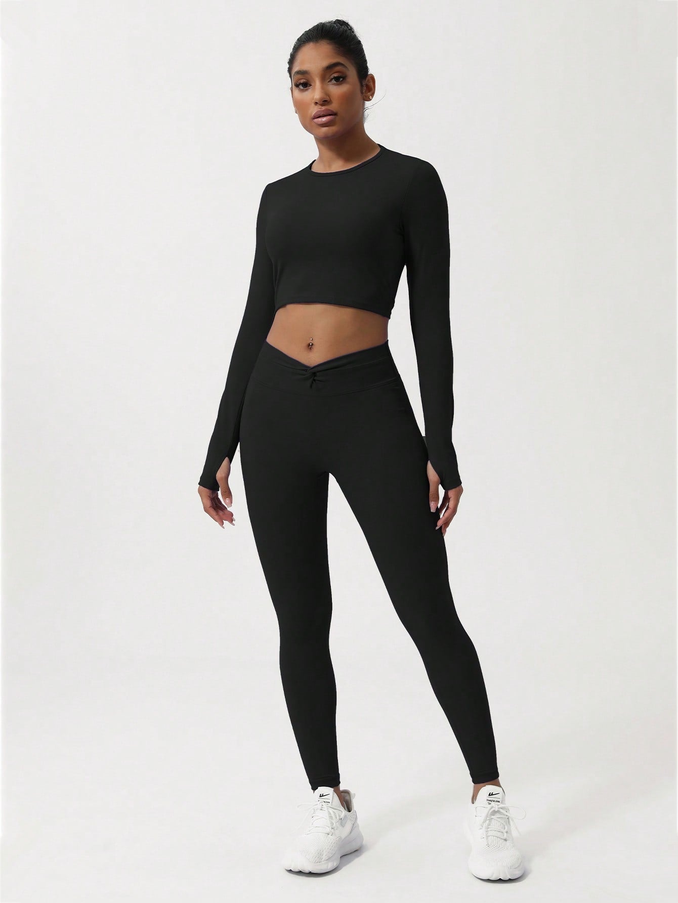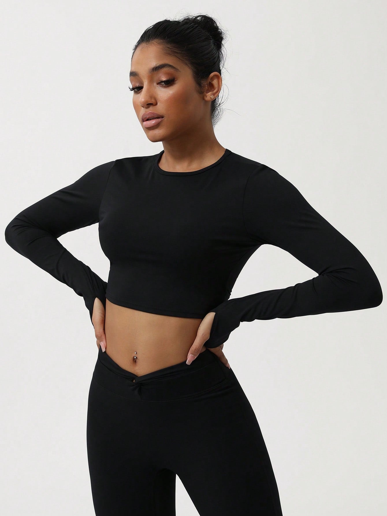 Sodalemon Women Twist Beauty Back Long Sleeve Thumb Hole Crop Sport Shirt