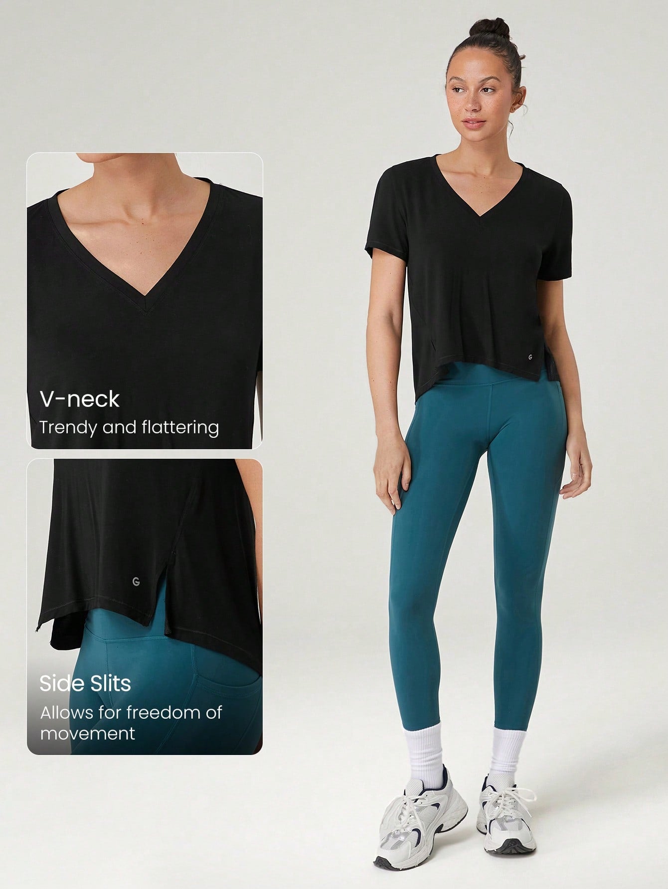 GLOWMODE Modal Silky Smooth Loose Fit Slit Hem V-Neck Tee T-Shirt Daily Casual Wear