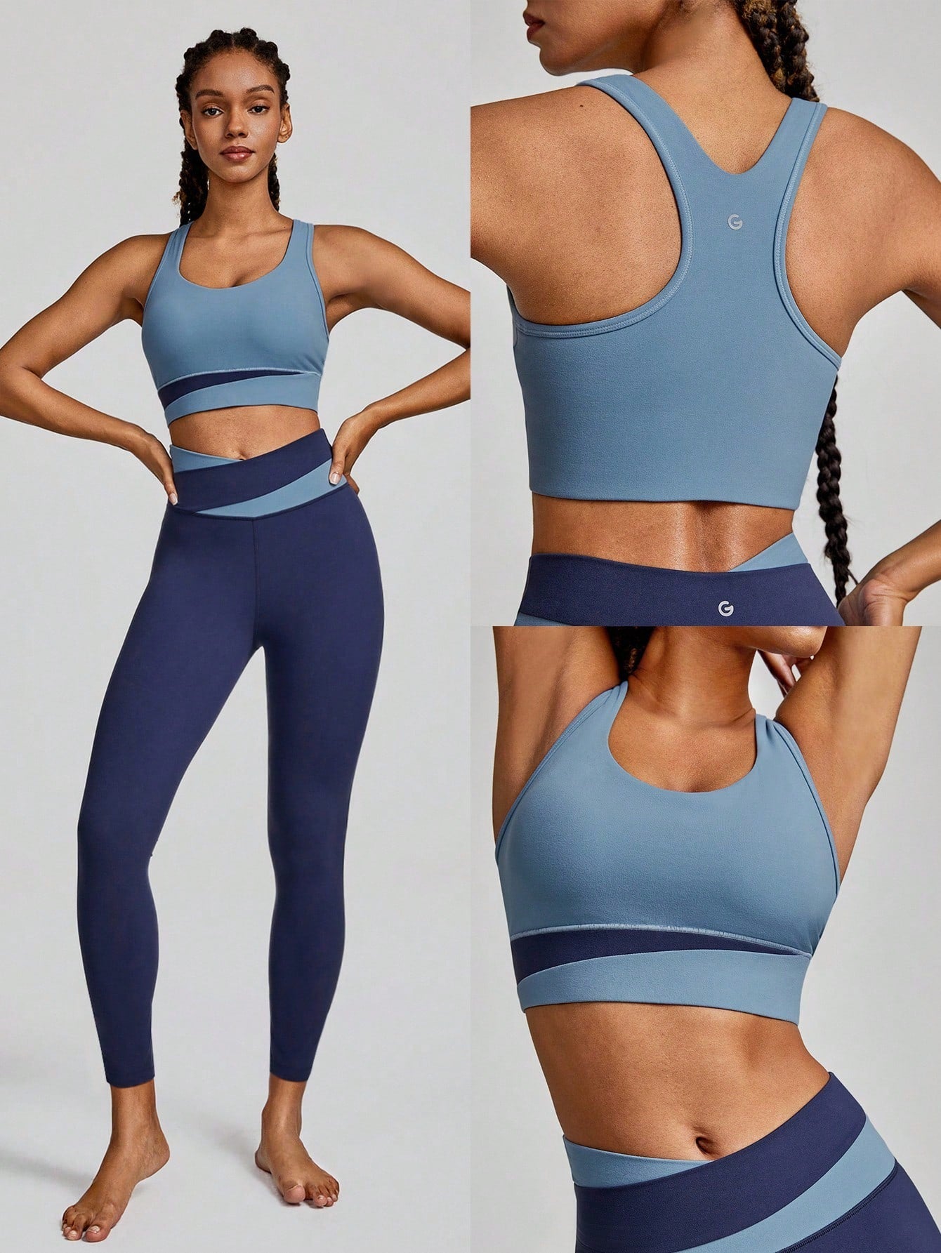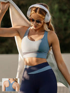 GLOWMODE FeatherFitâ„-Sculpt Two-Tone Sports Bra Medium Impact Workout Daily Gym Fall Winter