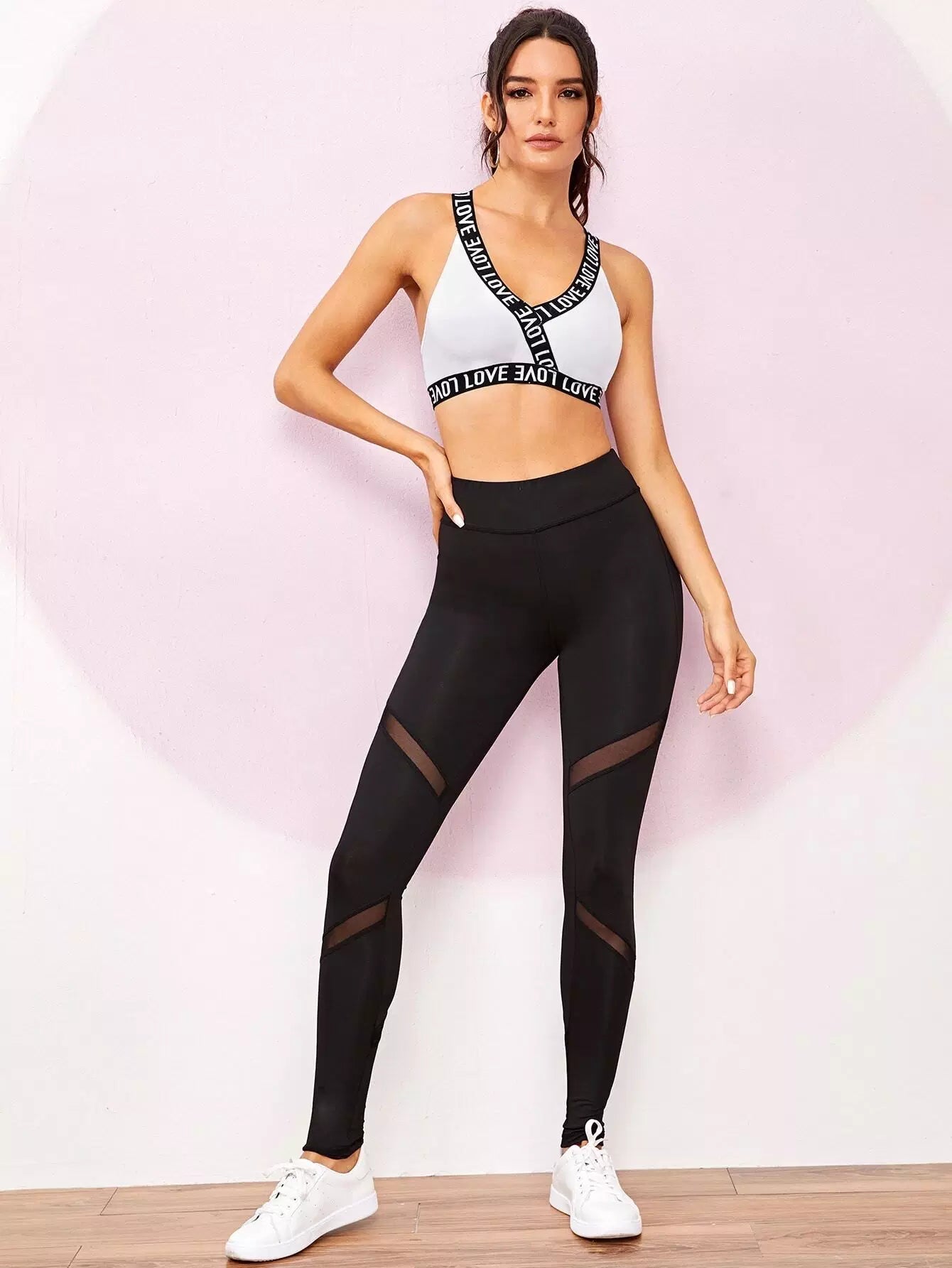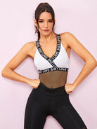 Medium Support Letter Graphic Criss Cross Back Sports Bra
