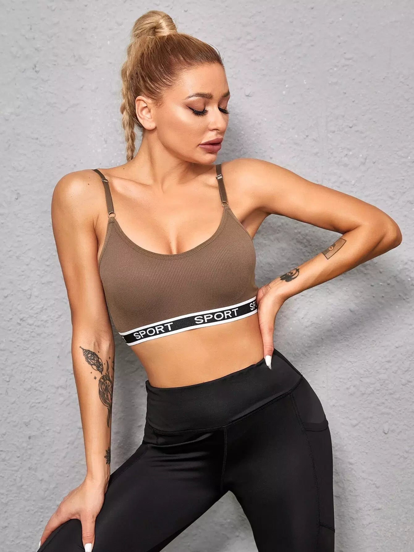 Medium Support Letter Tape Sports Bra