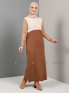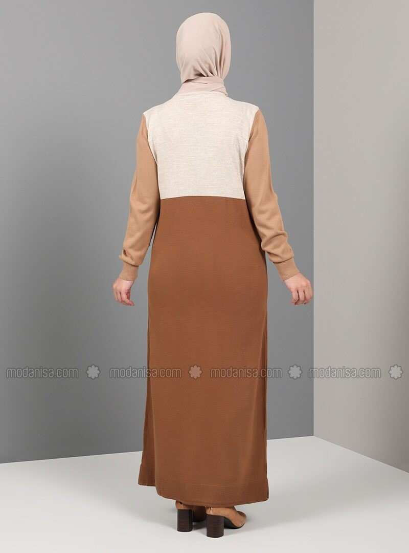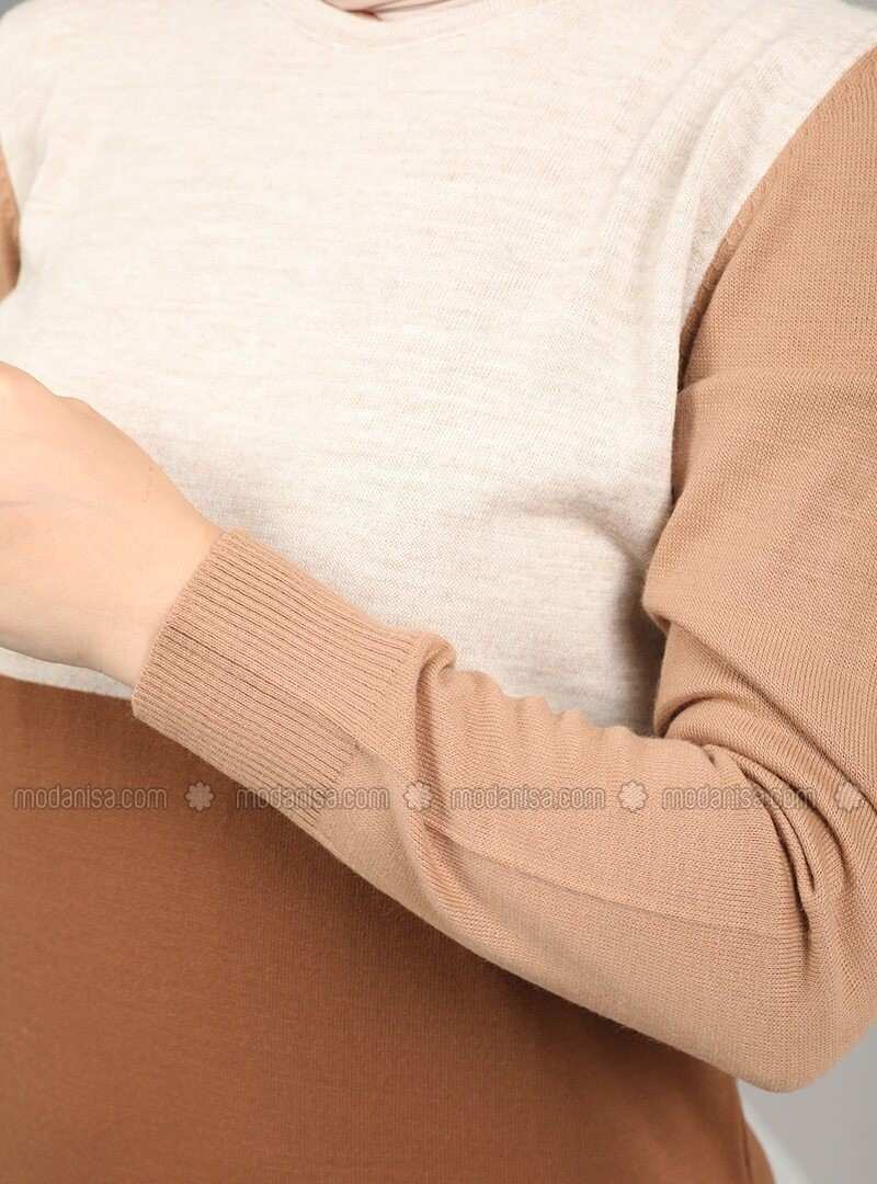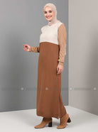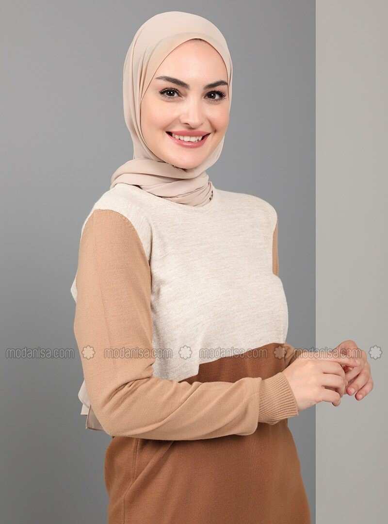 Tavin Beige Unlined Crew neck Knit Dresses