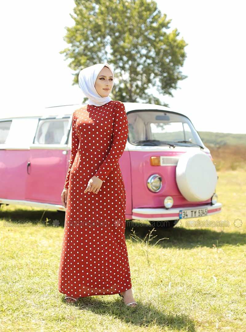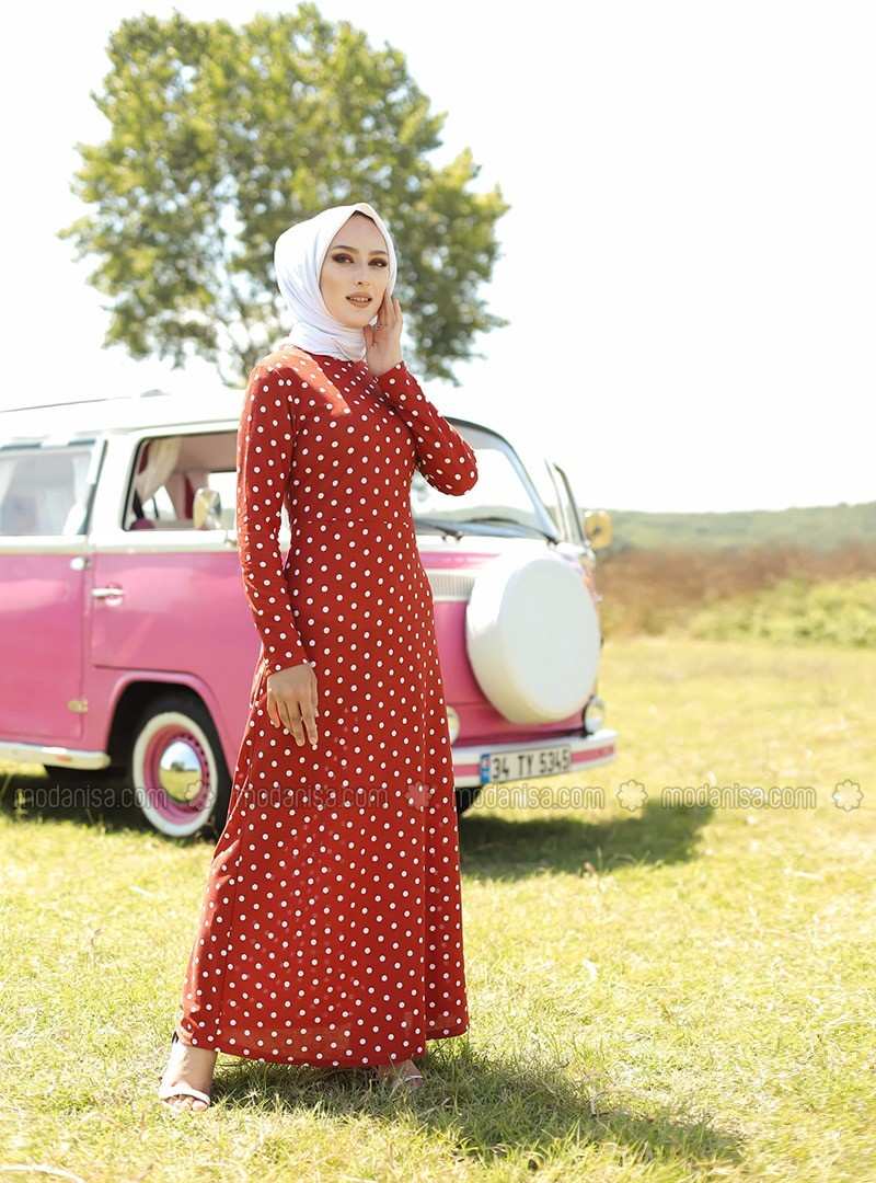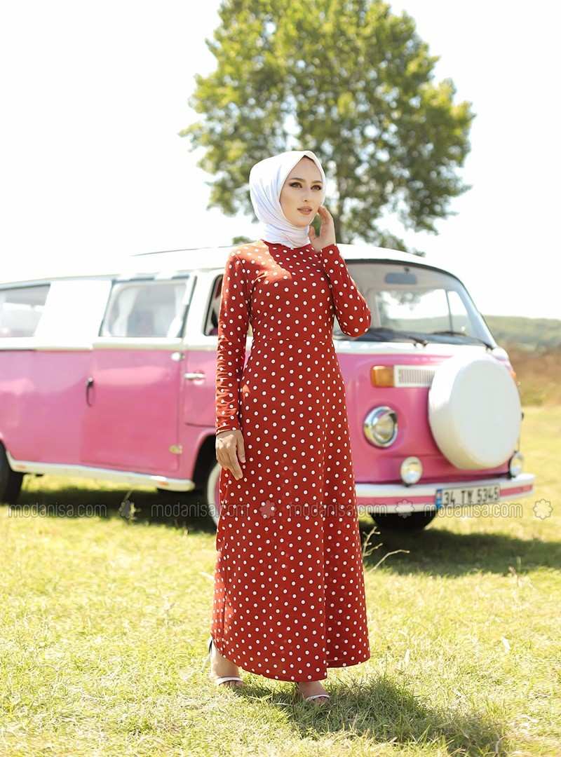 Terra Cotta Polka Dot Crew neck Unlined Dress