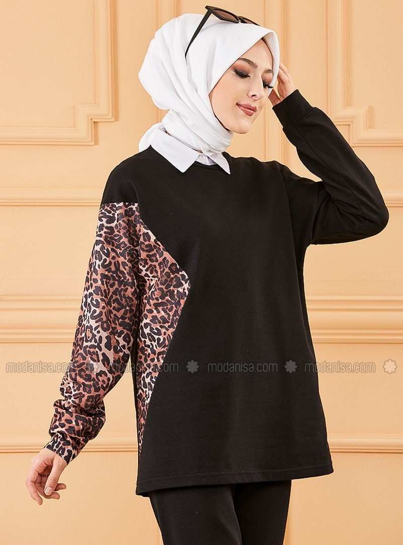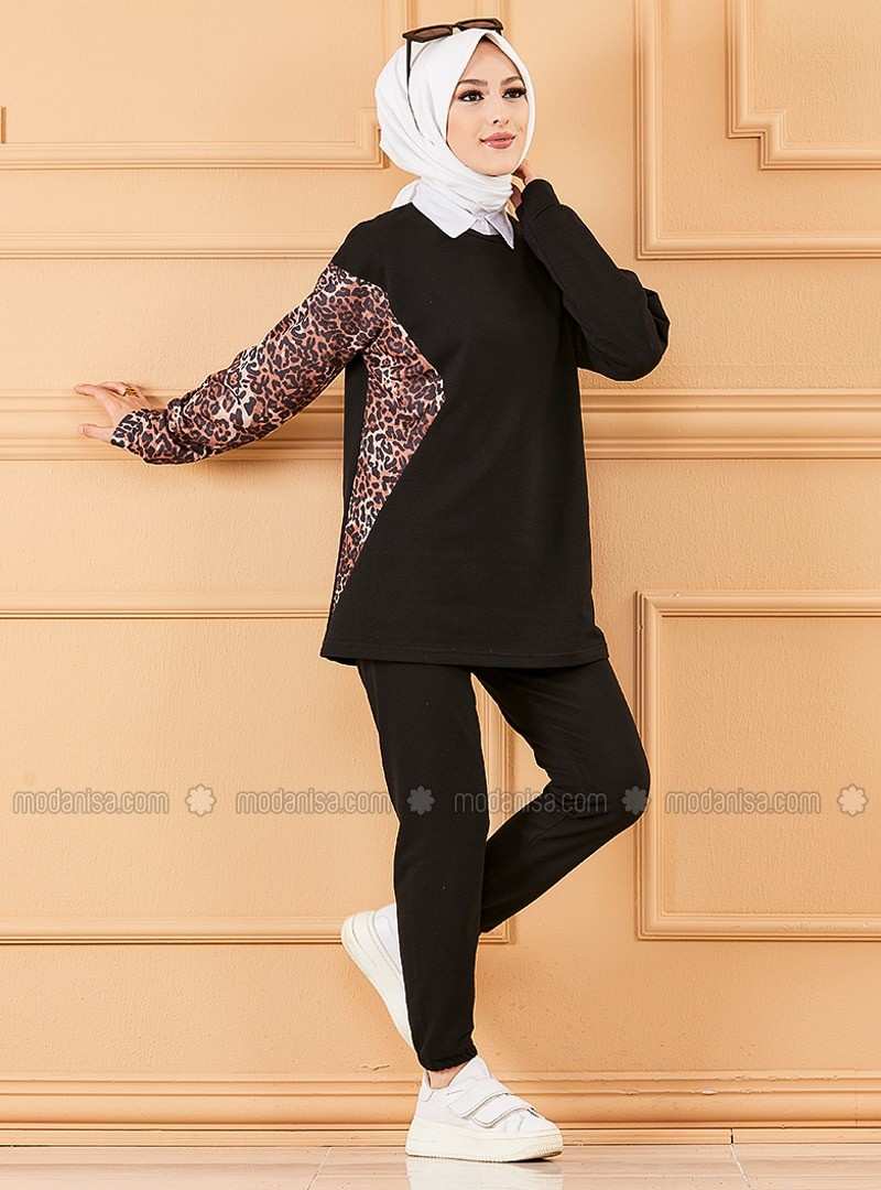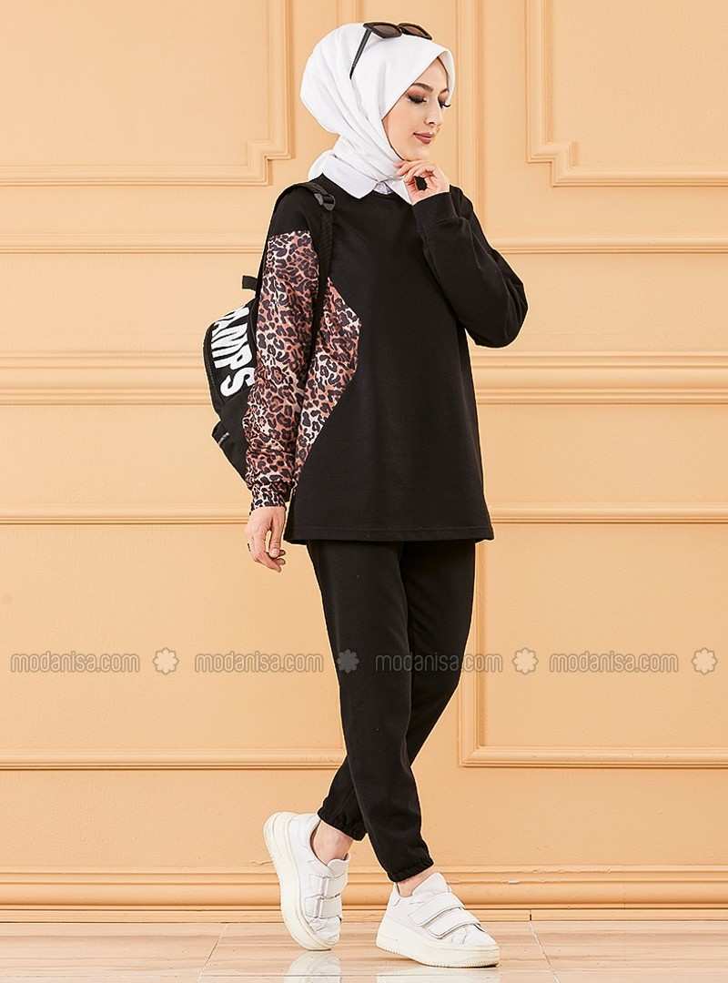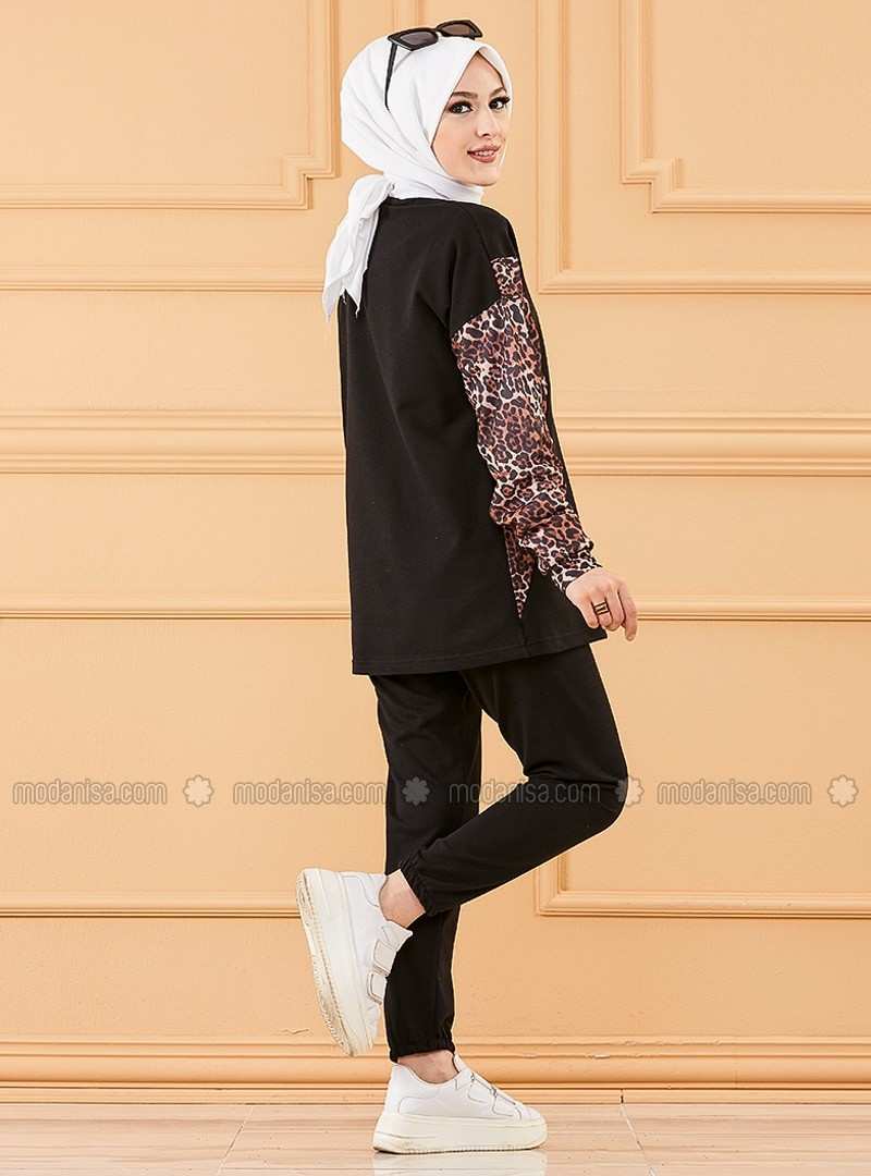 Black Crew neck Tracksuit Set
