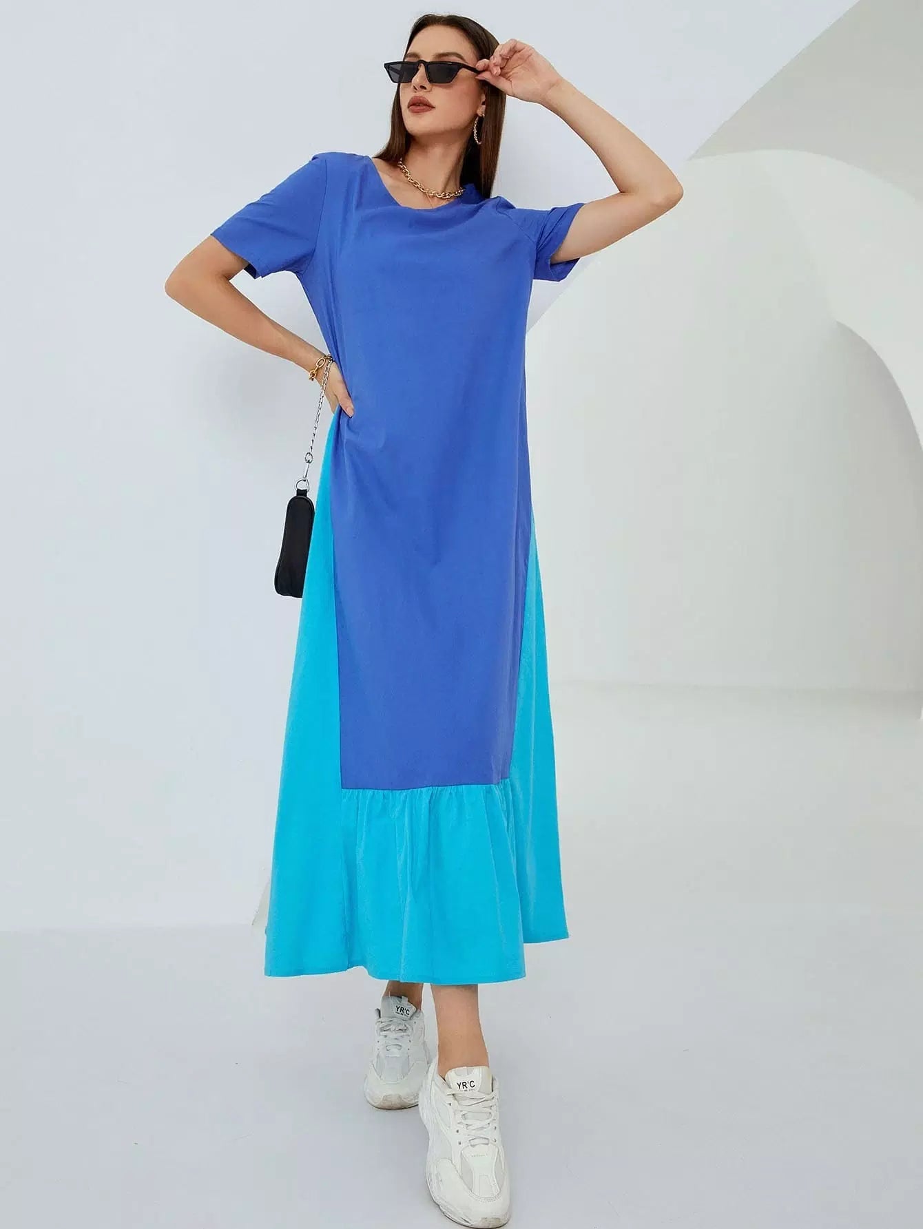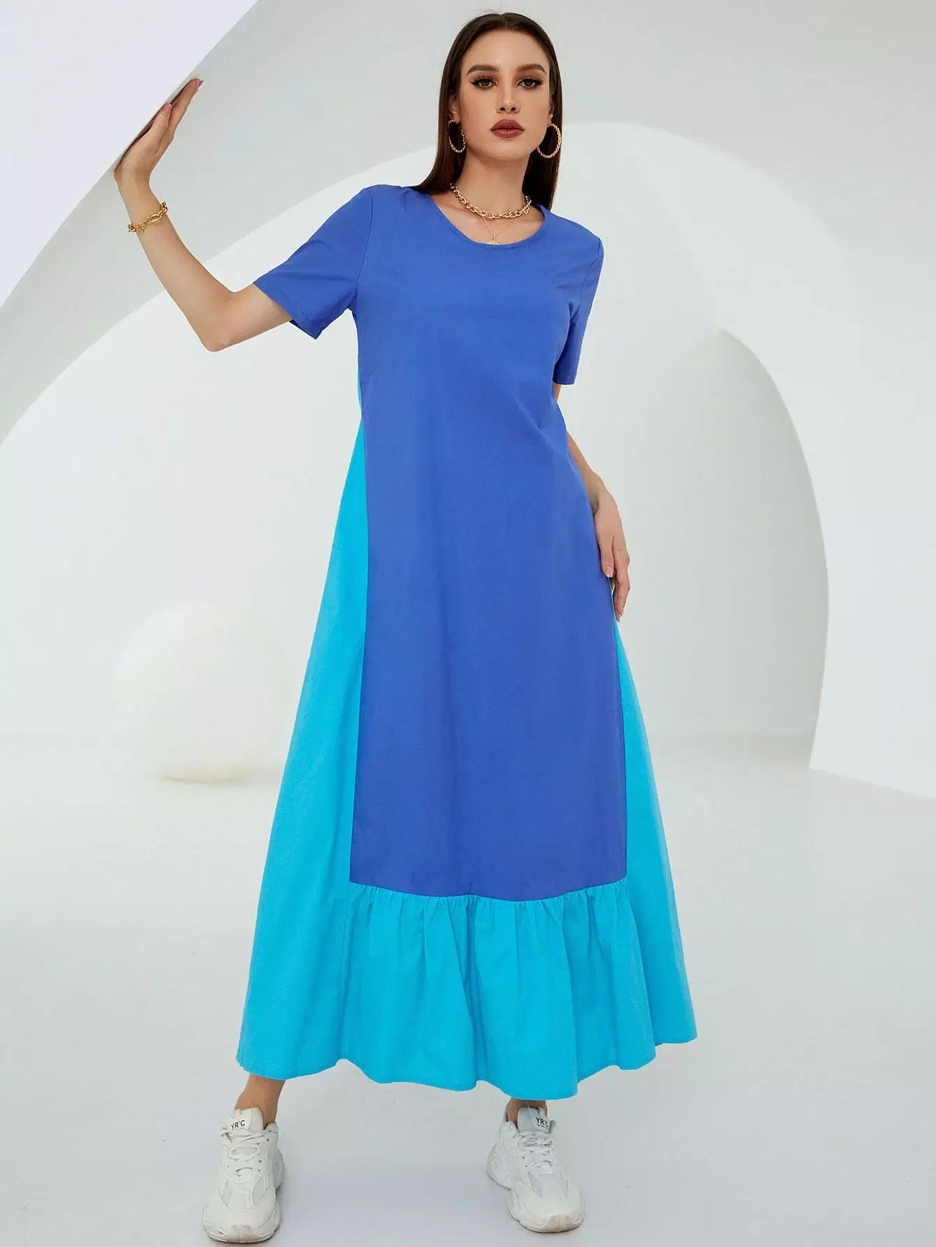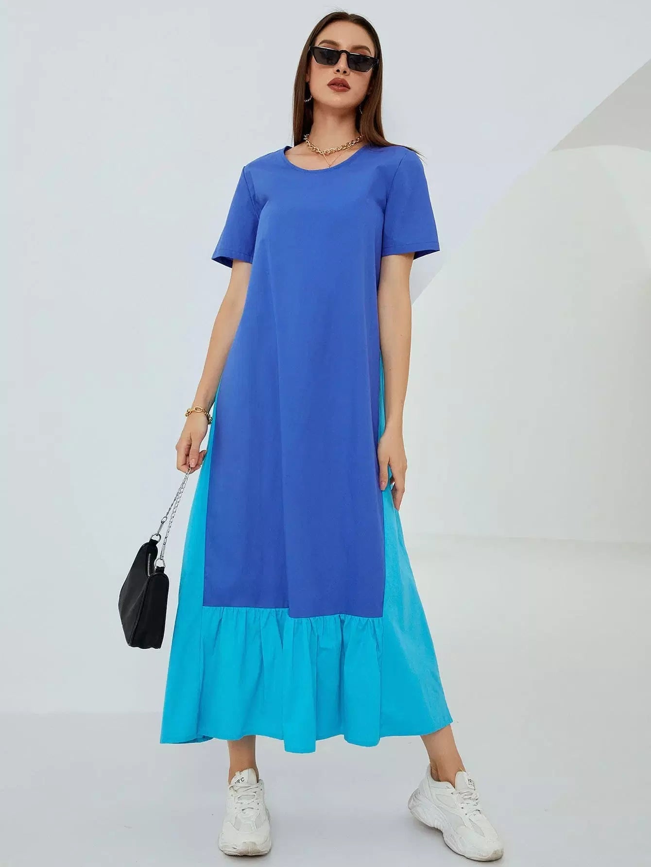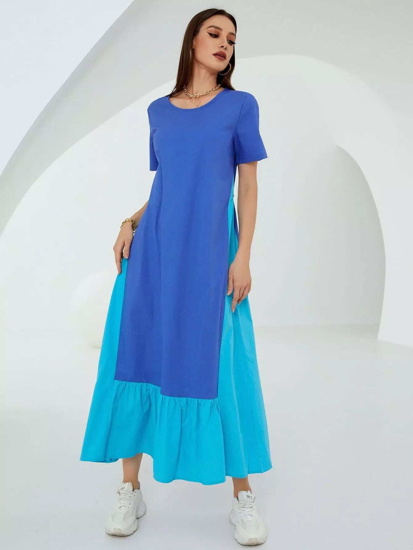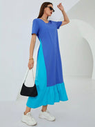 Contrast Panel Ruffle Hem Dress