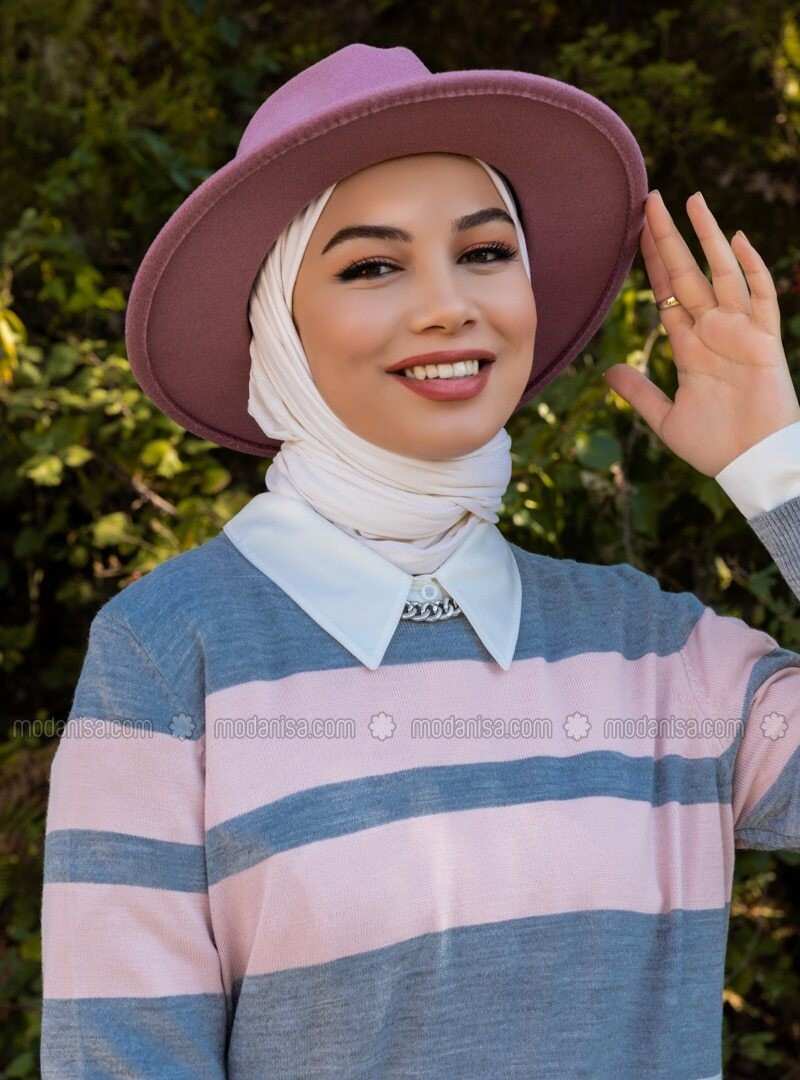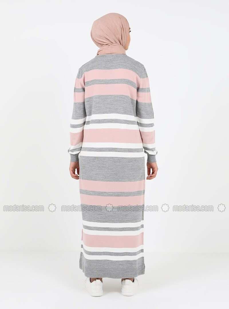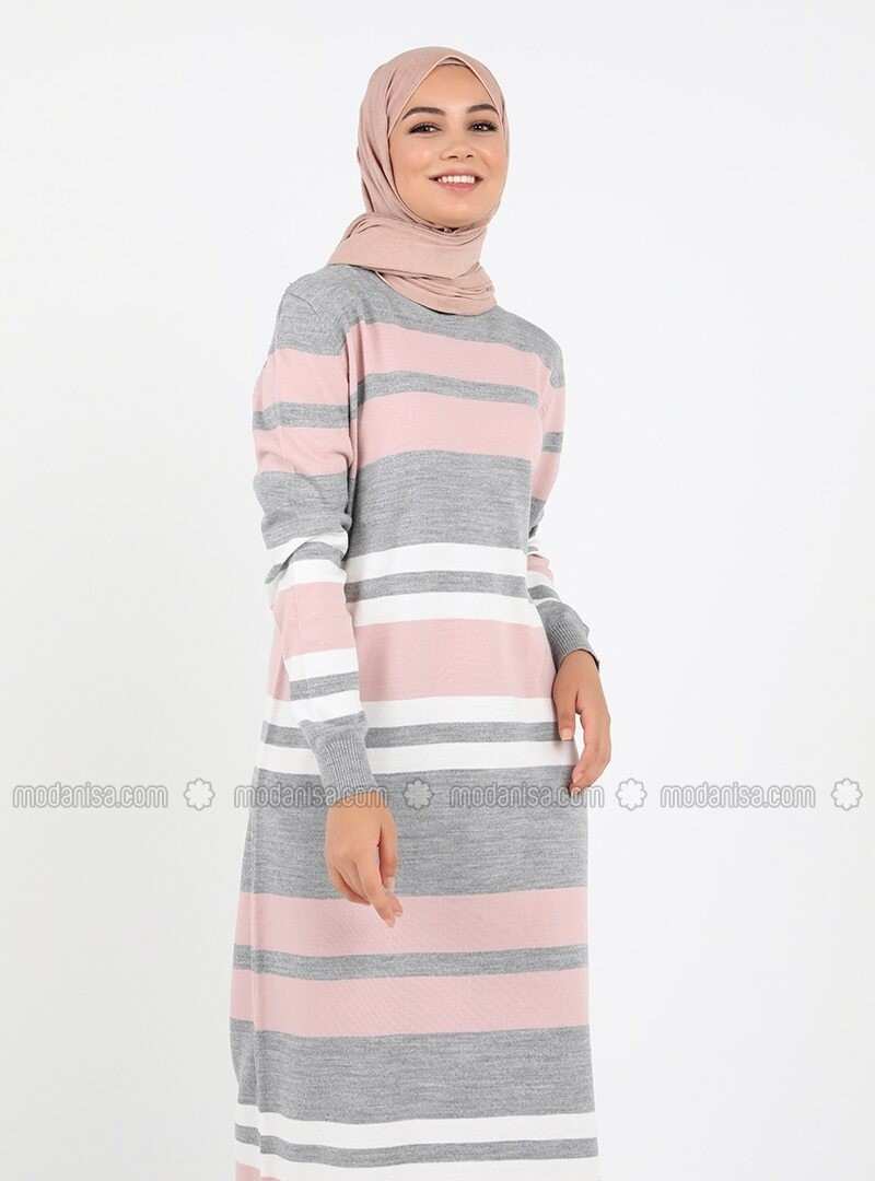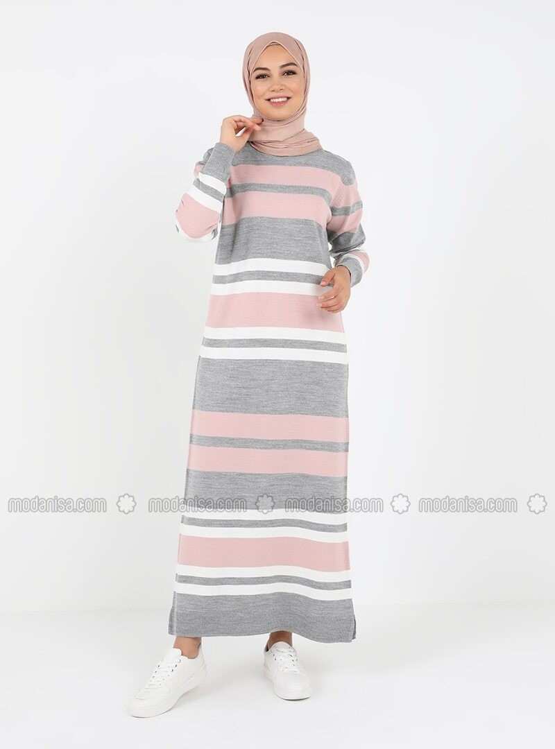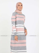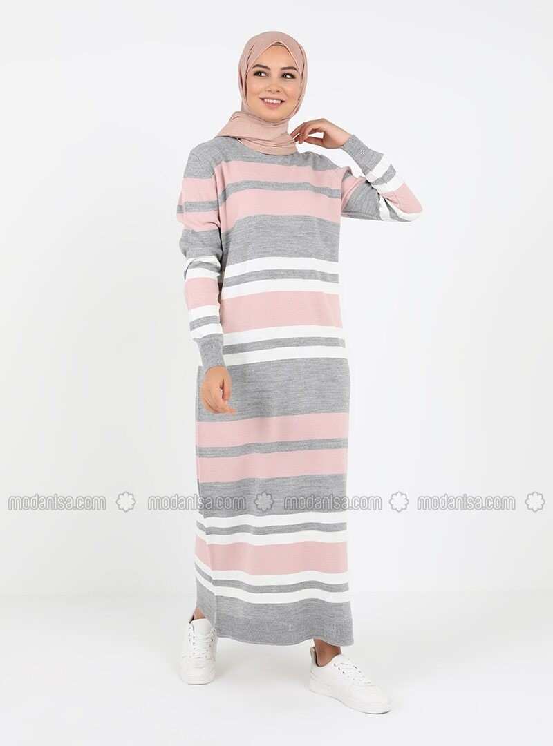 Crew Neck Striped Knitwear Dress Powder Tavin