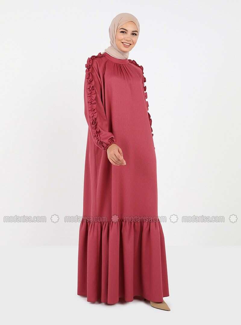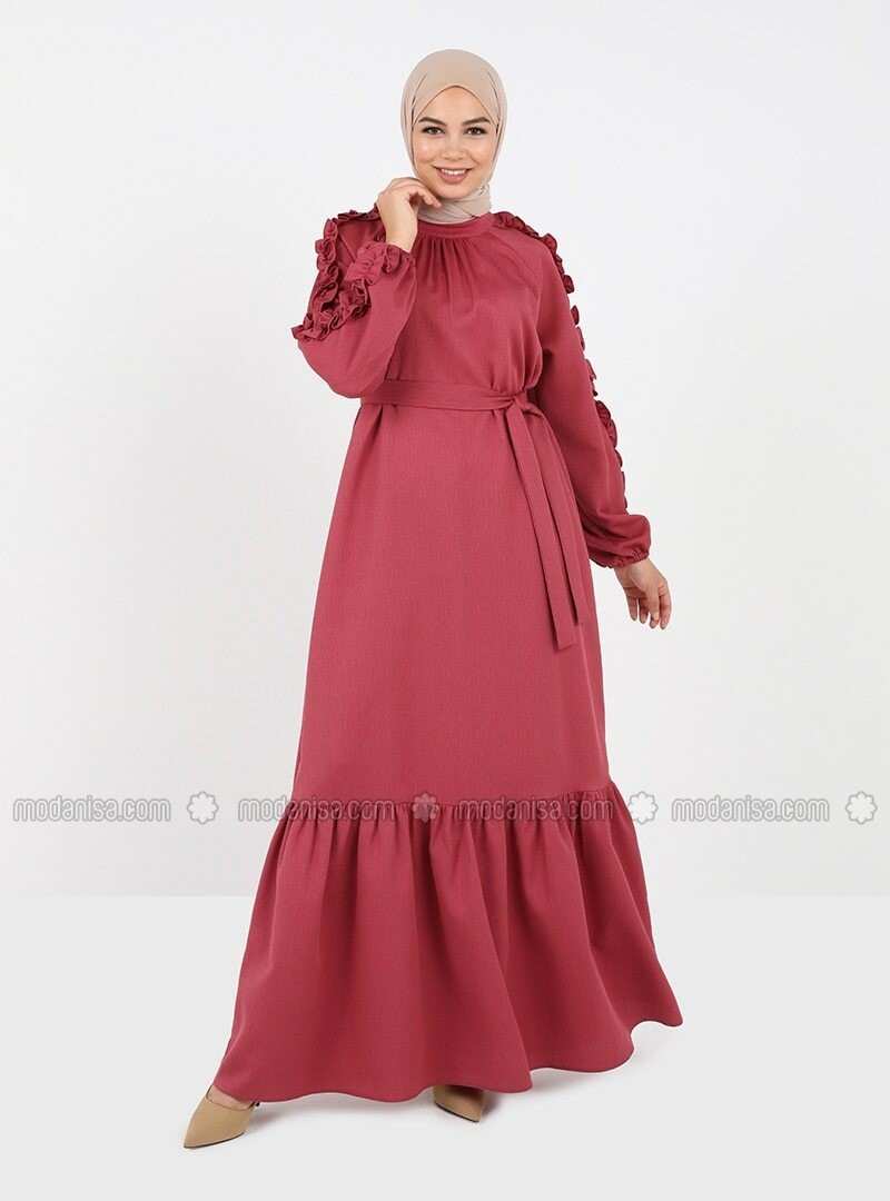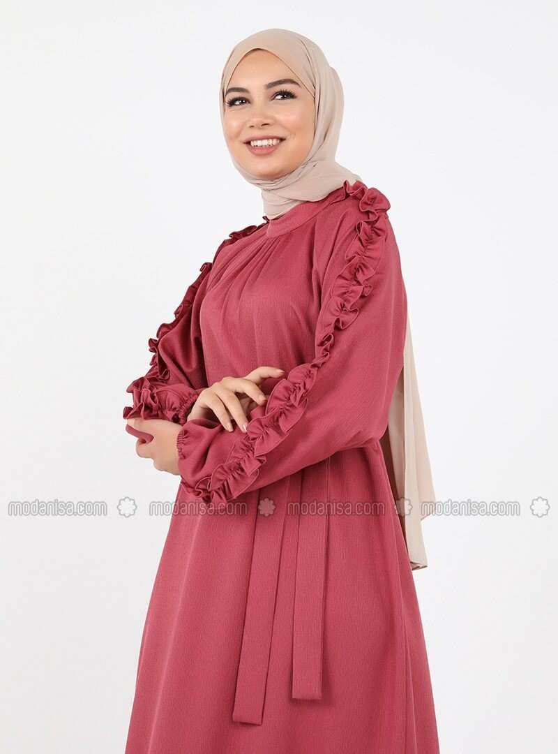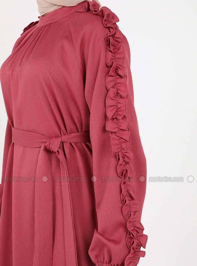 Frill Detailed Sleeves Dress Dry Rose Tavin Without Belt