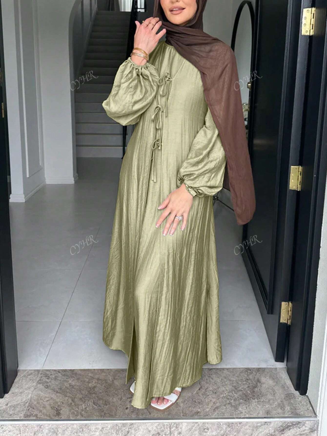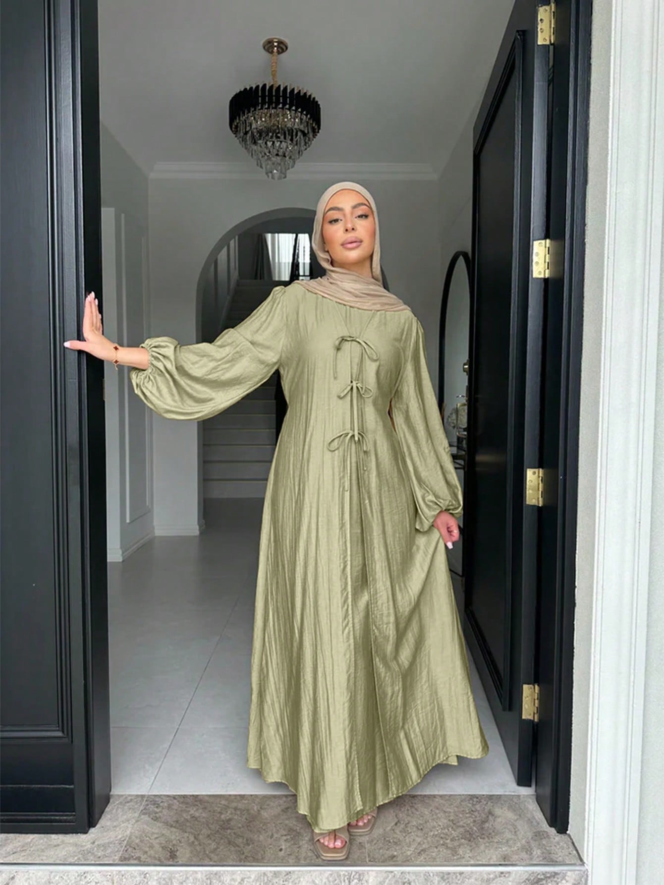Women's Front Bowknot Arabic Style Dress Modest
