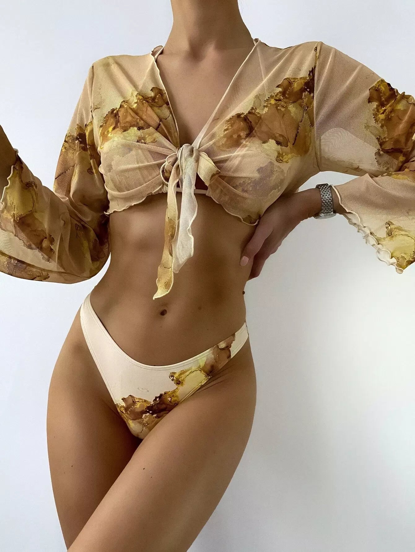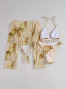 Women - 3pack Abstract Fluid Pattern Halter Bikini Swimsuit & Cover Up