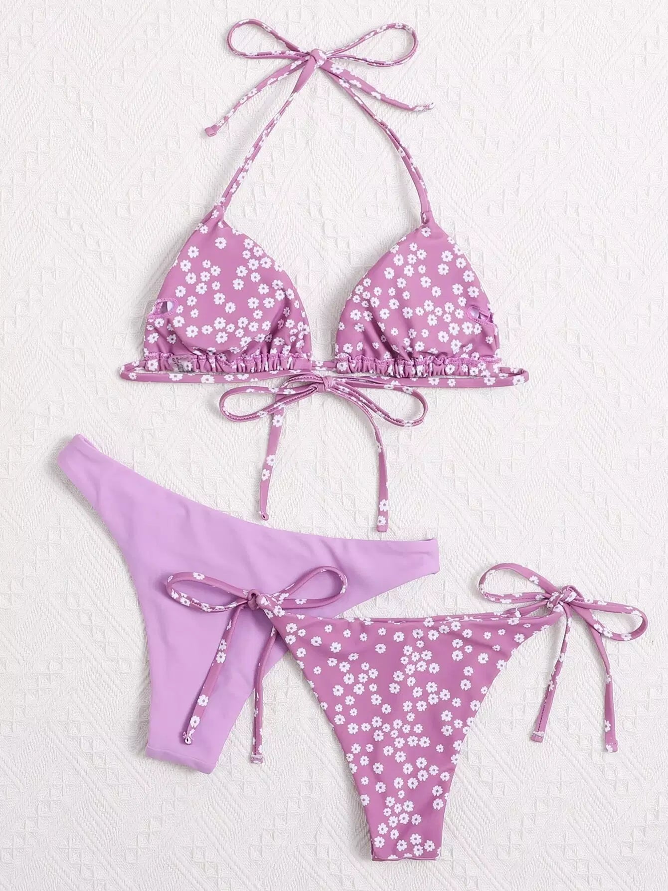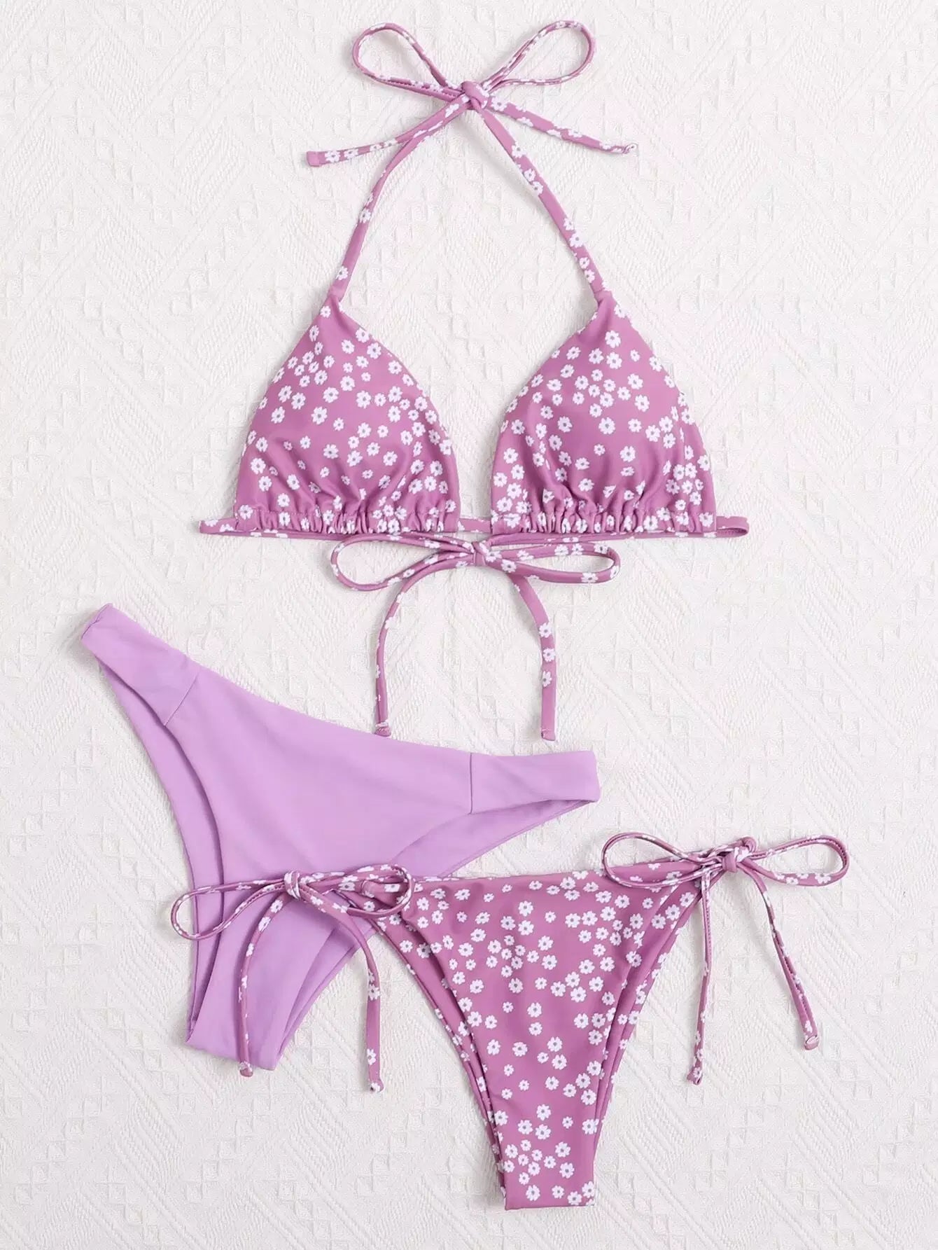 3pack Ditsy Floral Triangle Tie Side Bikini Swimsuit