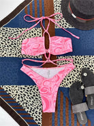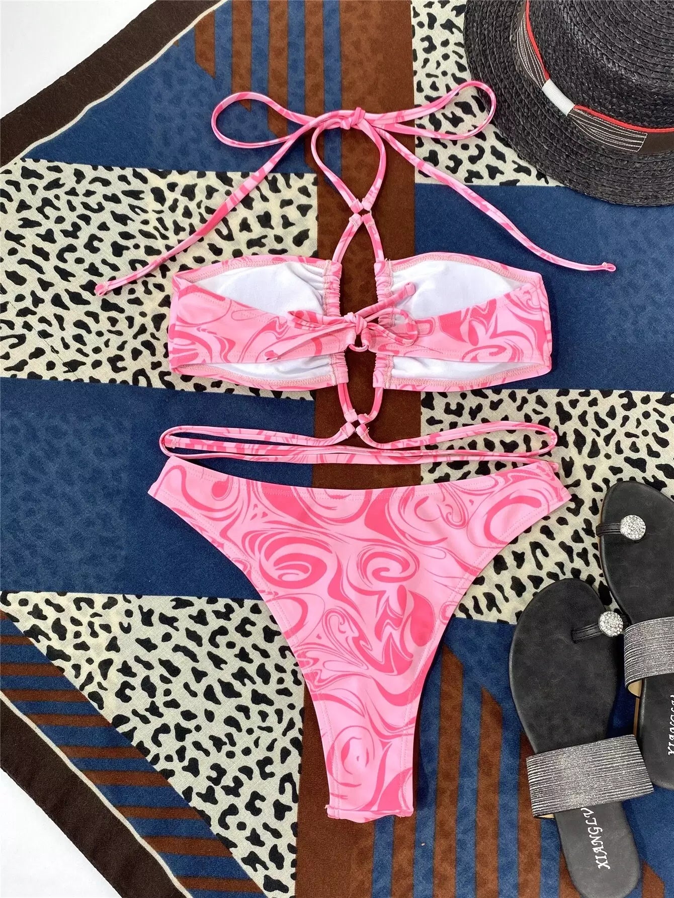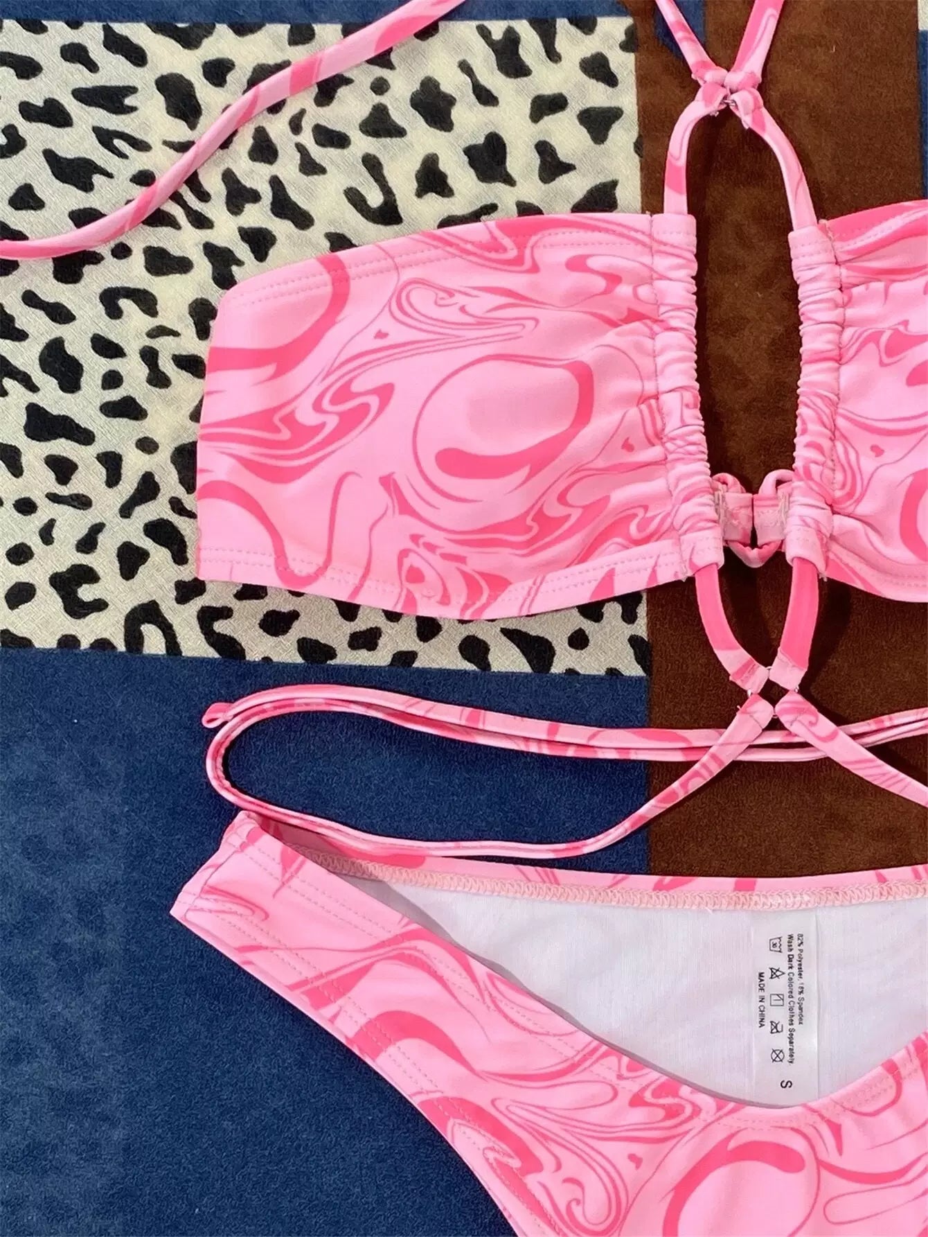 Abstract Fluid Pattern Halter Bikini Swimsuit