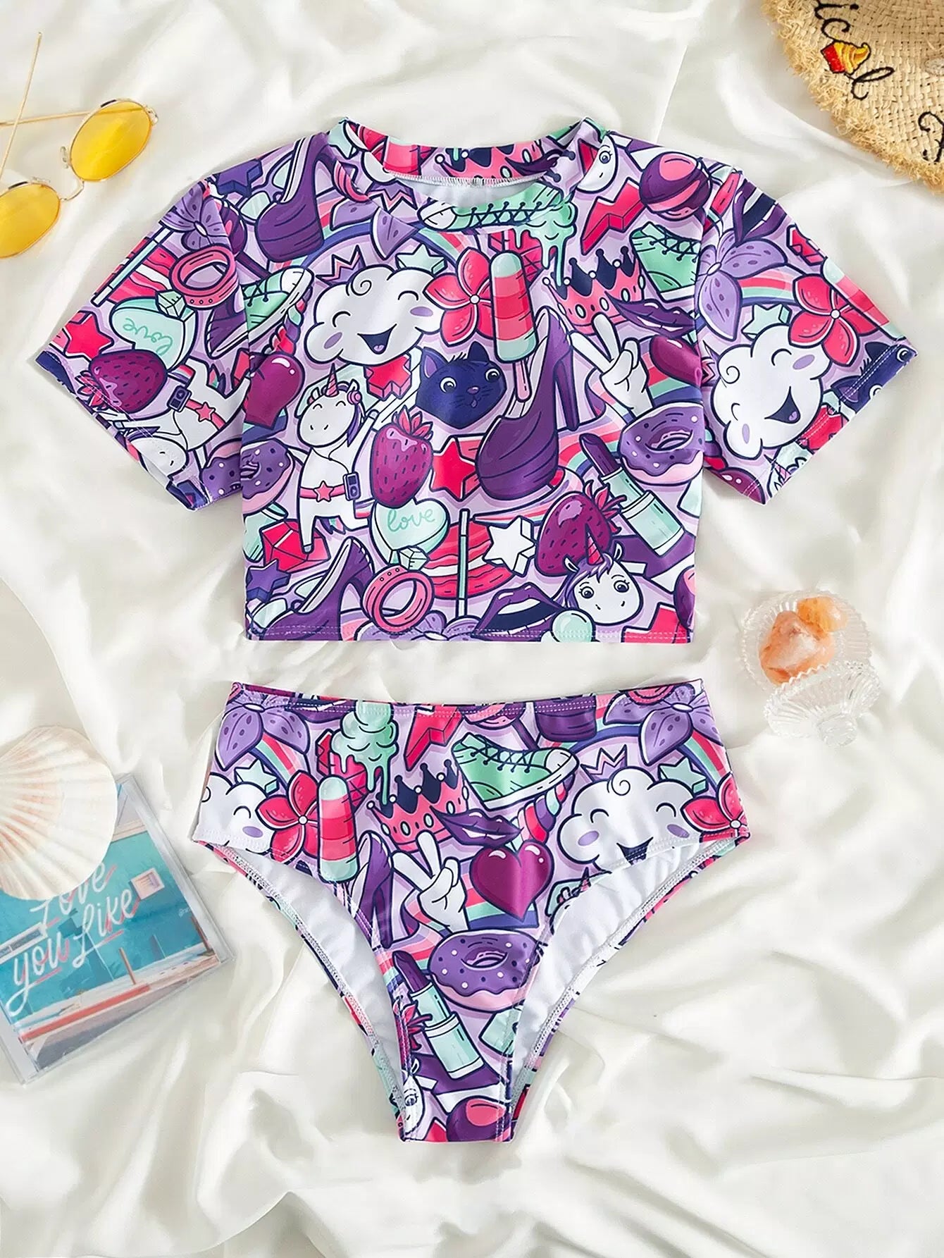 Cartoon Graphic High Waisted Bikini Swimsuit