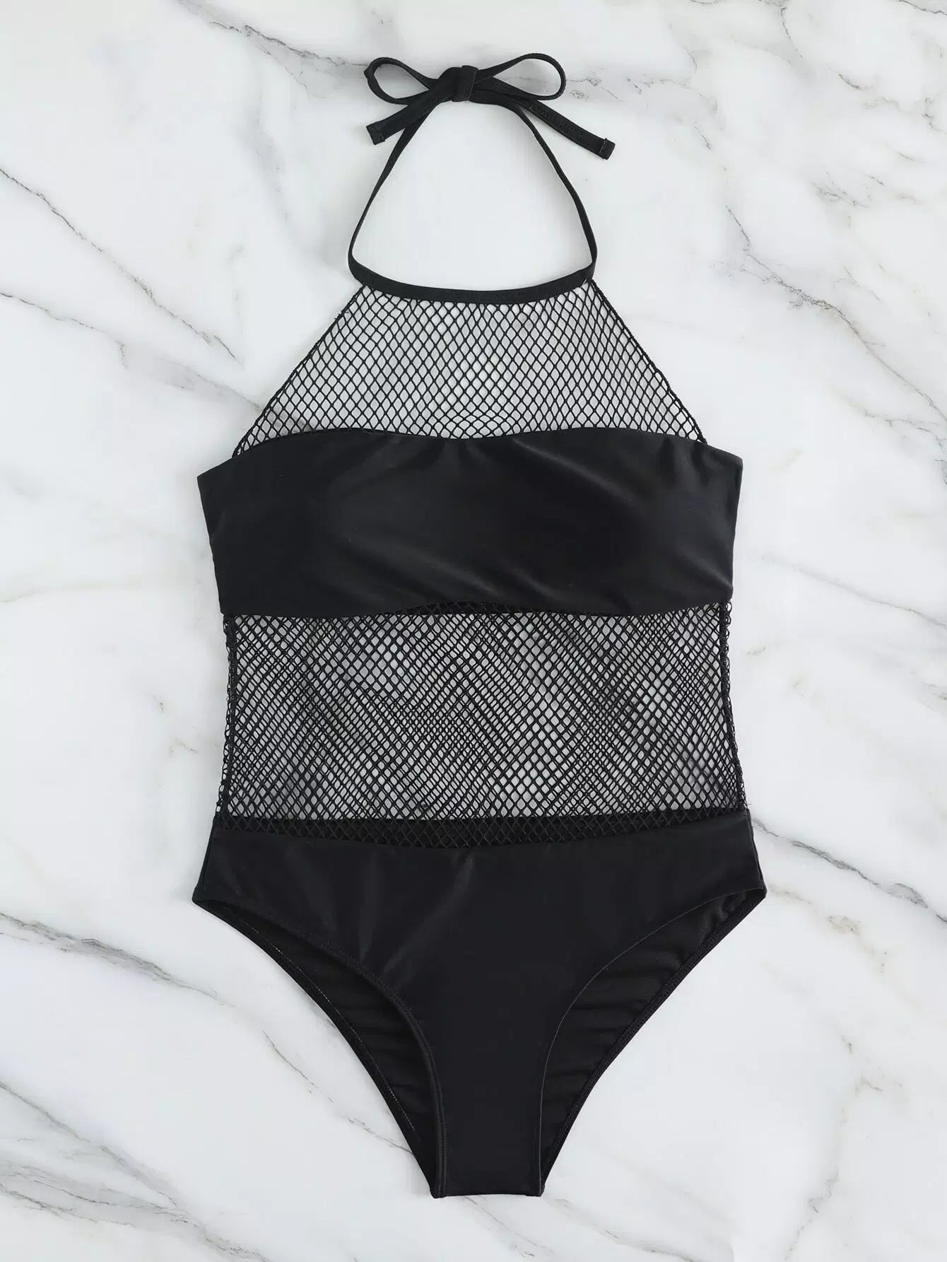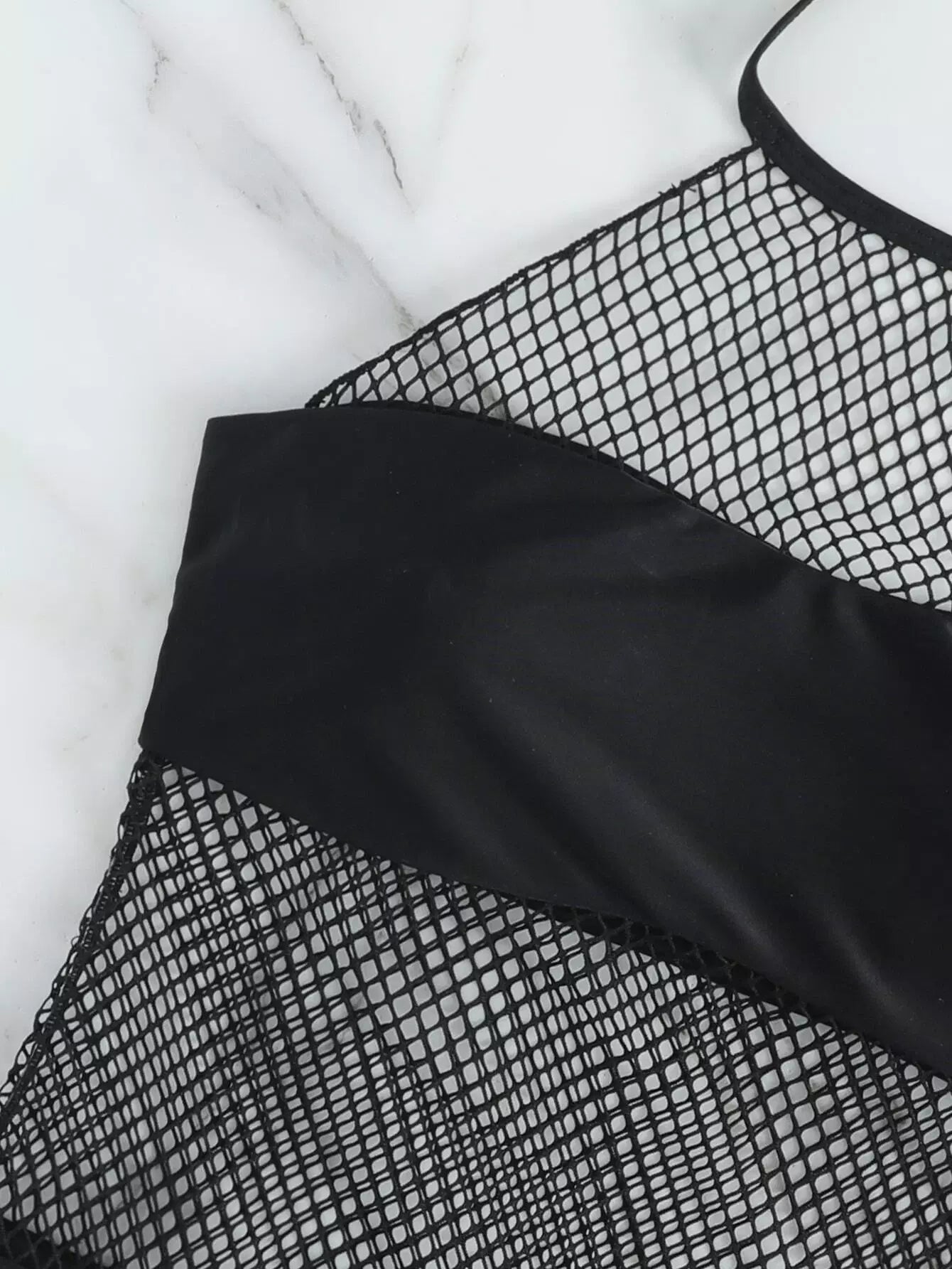 Contrast Fishnet One Piece Swimsuit