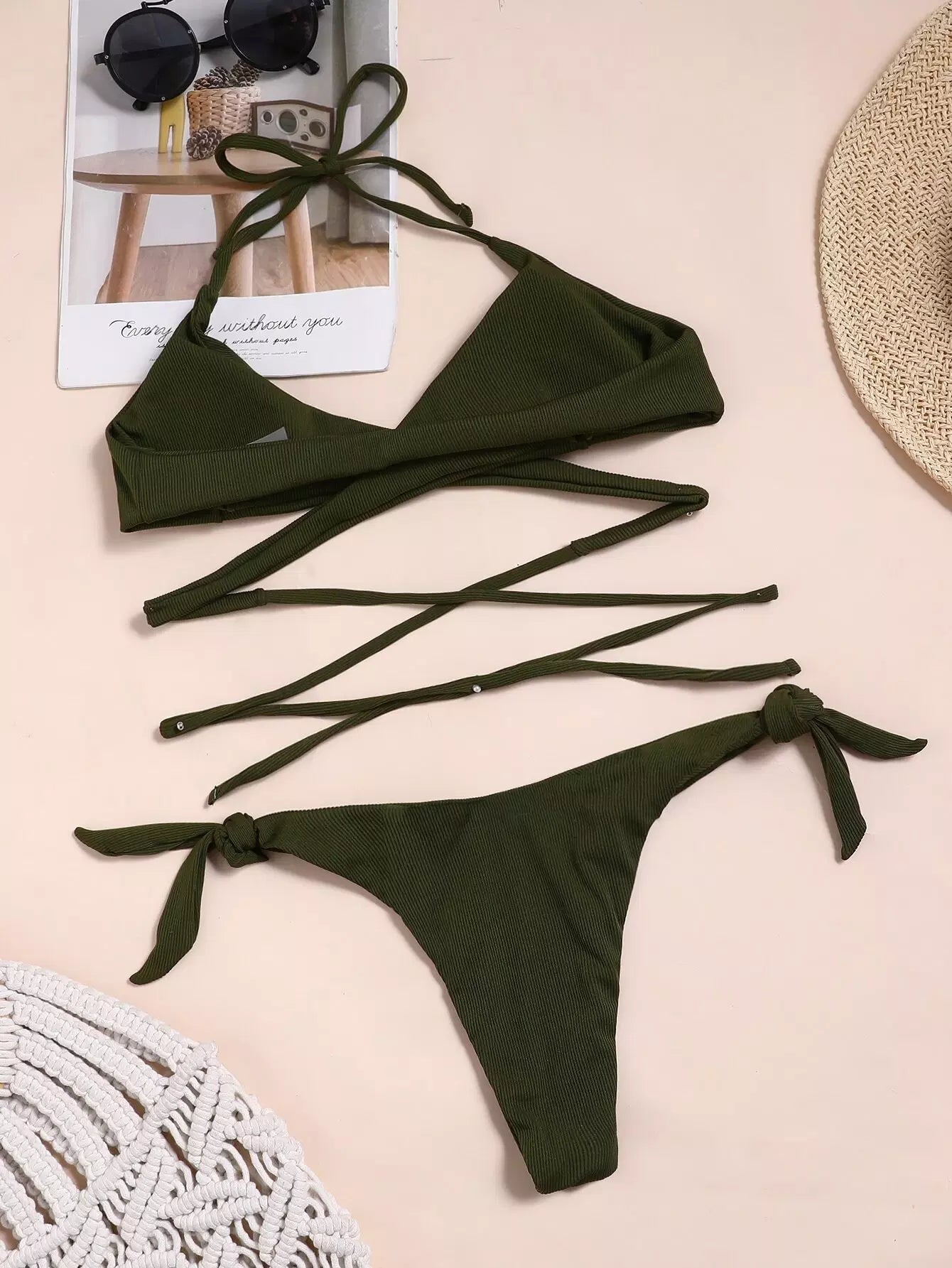 Cross Wrap Tie Side Bikini Swimsuit