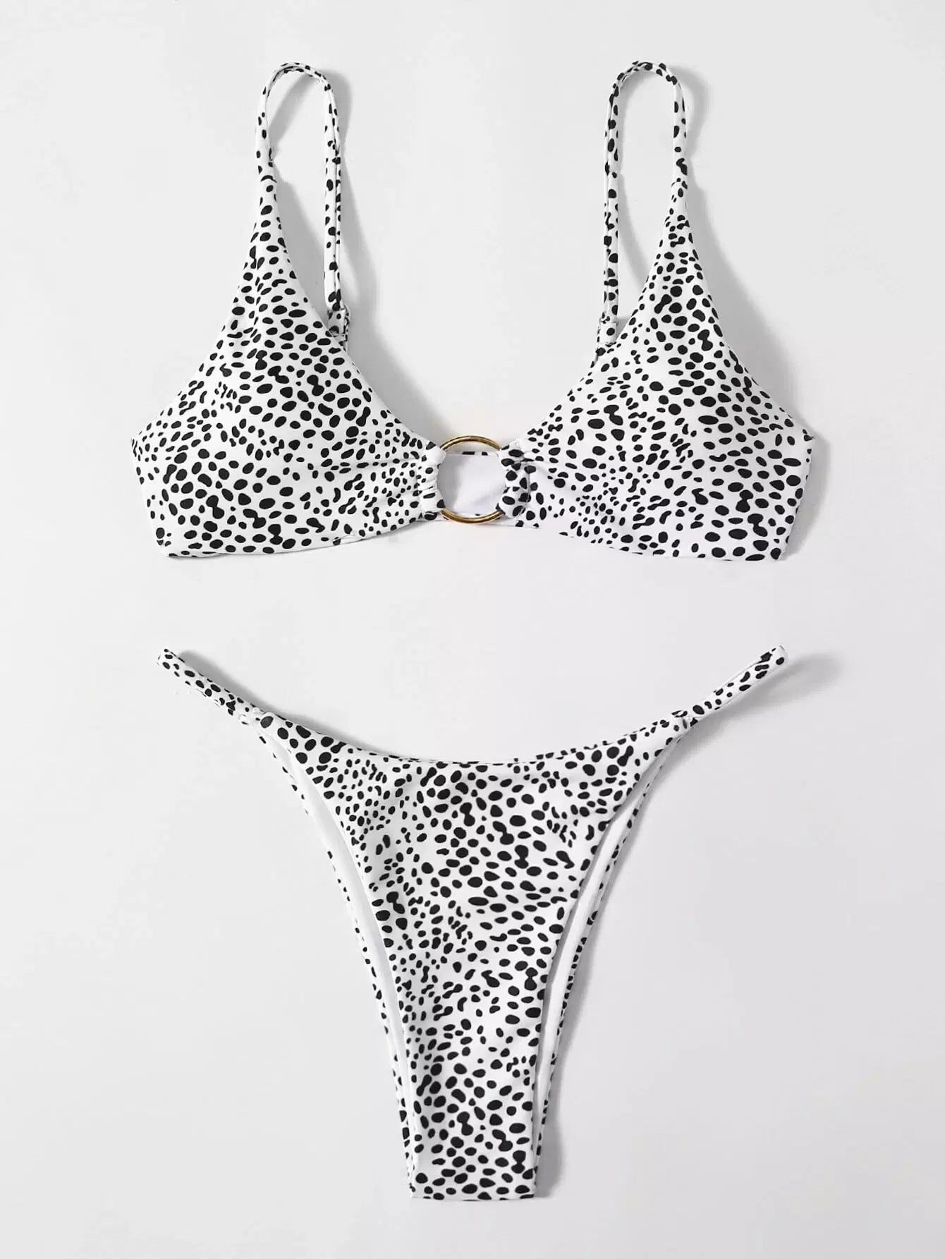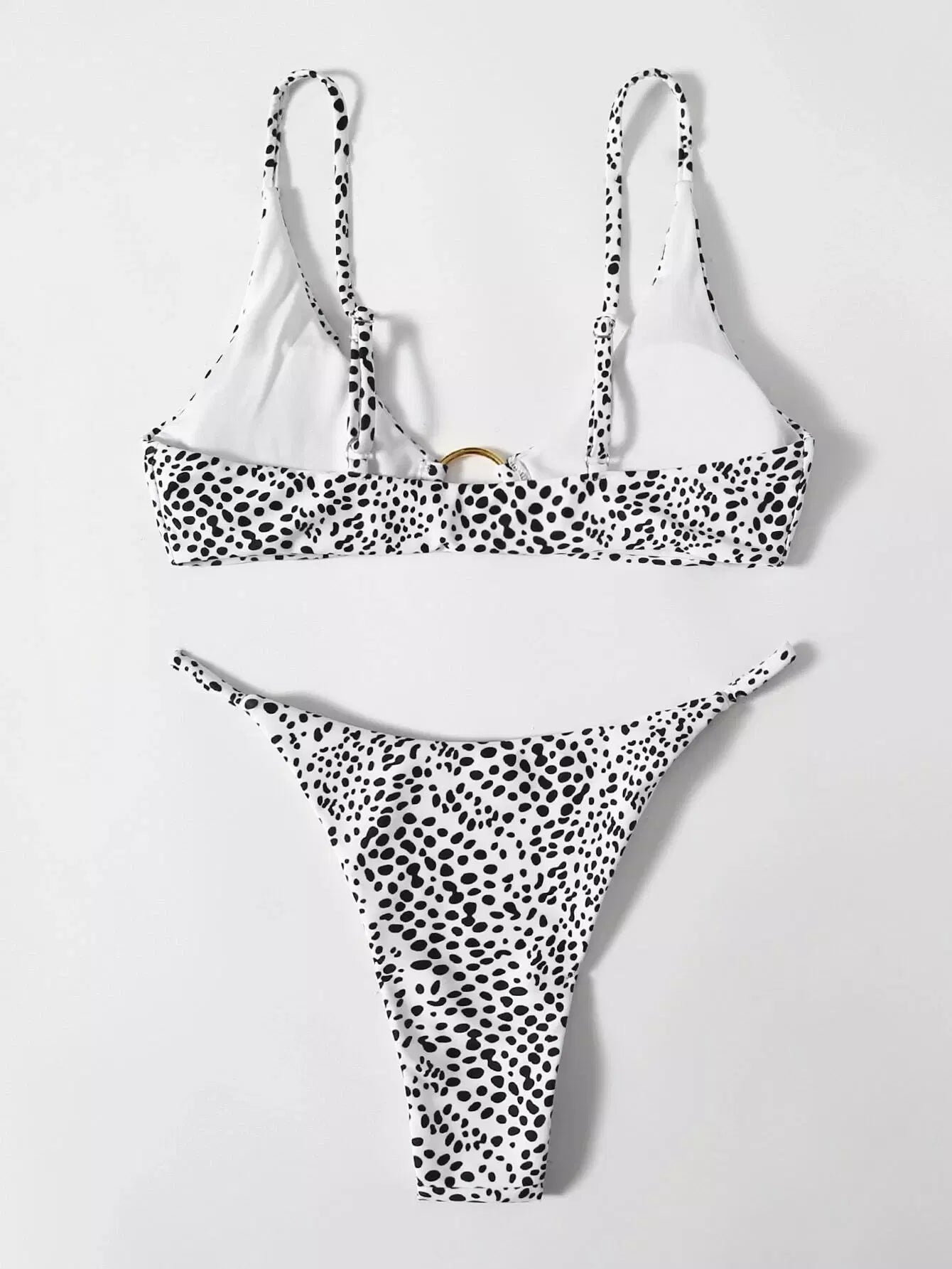 Dalmatian Ring Decor Thong Bikini Swimsuit
