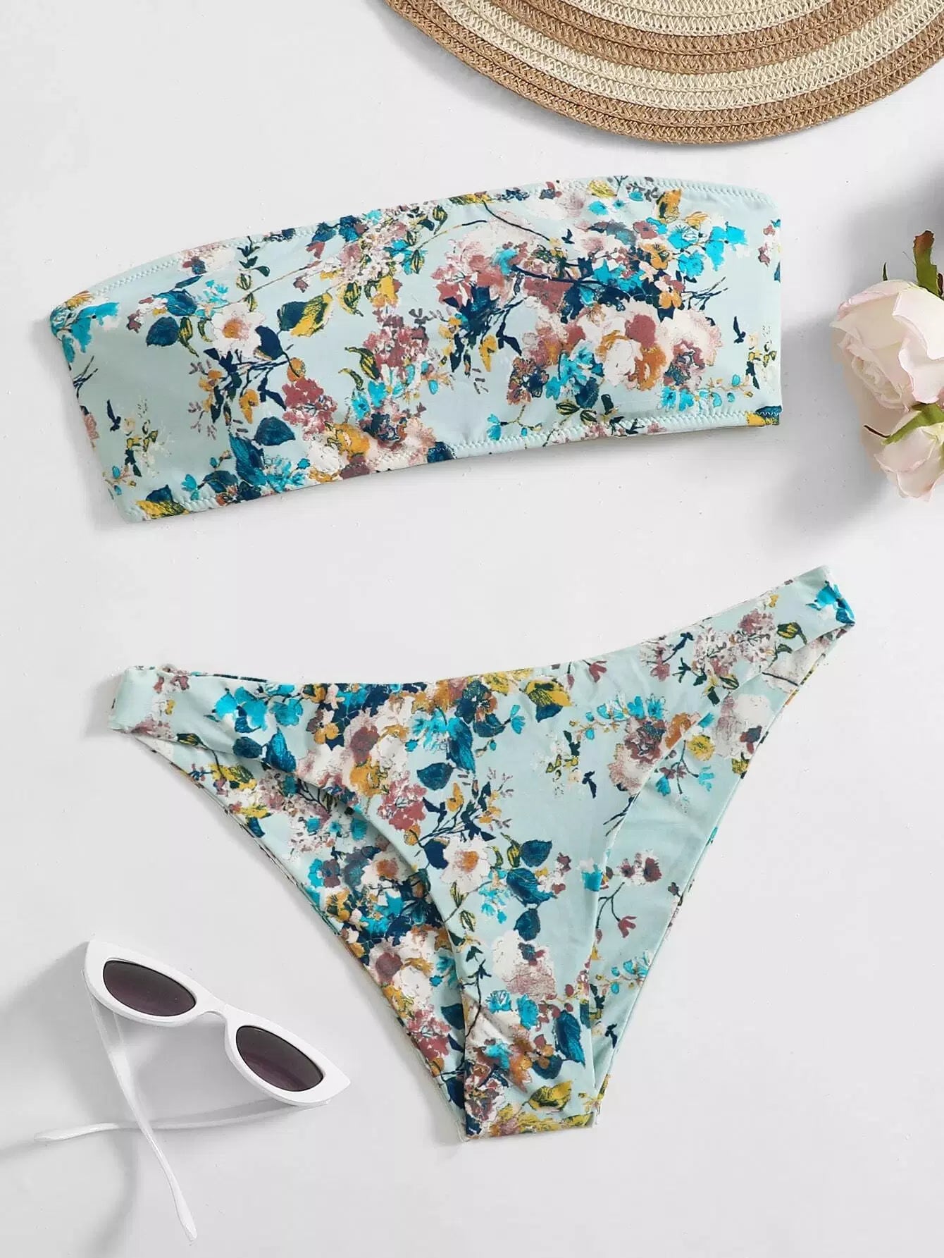Floral Bandeau Bikini Swimsuit