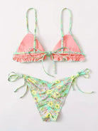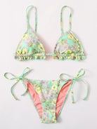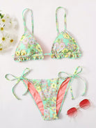 Women - Floral Frill Triangle Tie Side Bikini Swimsuit