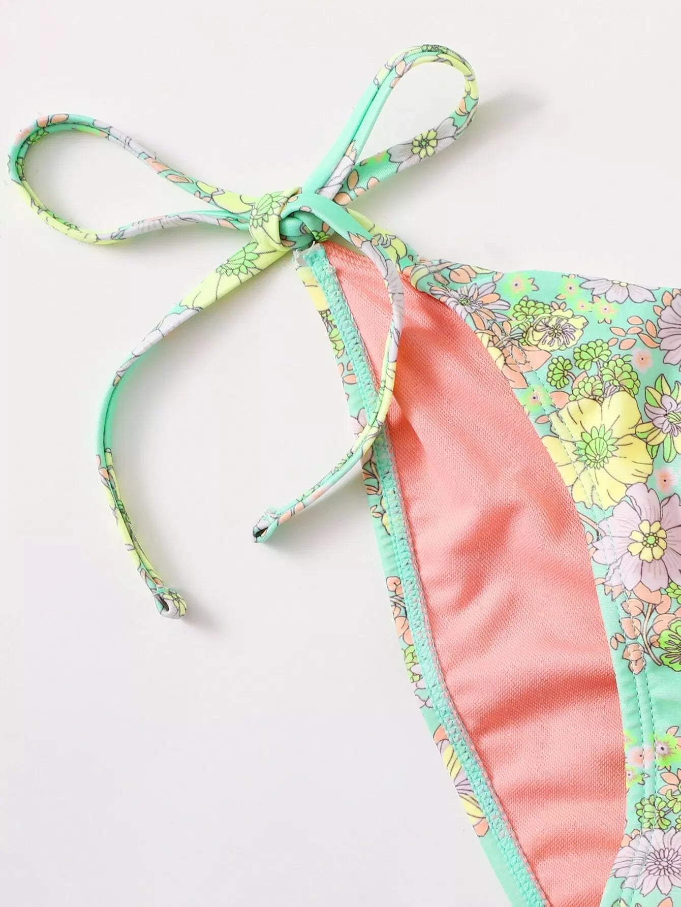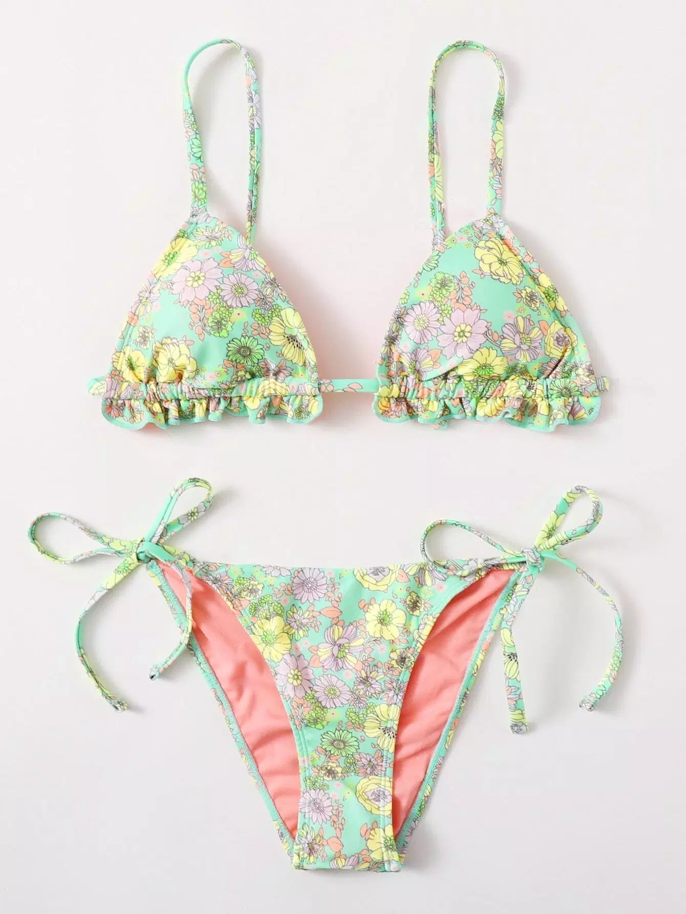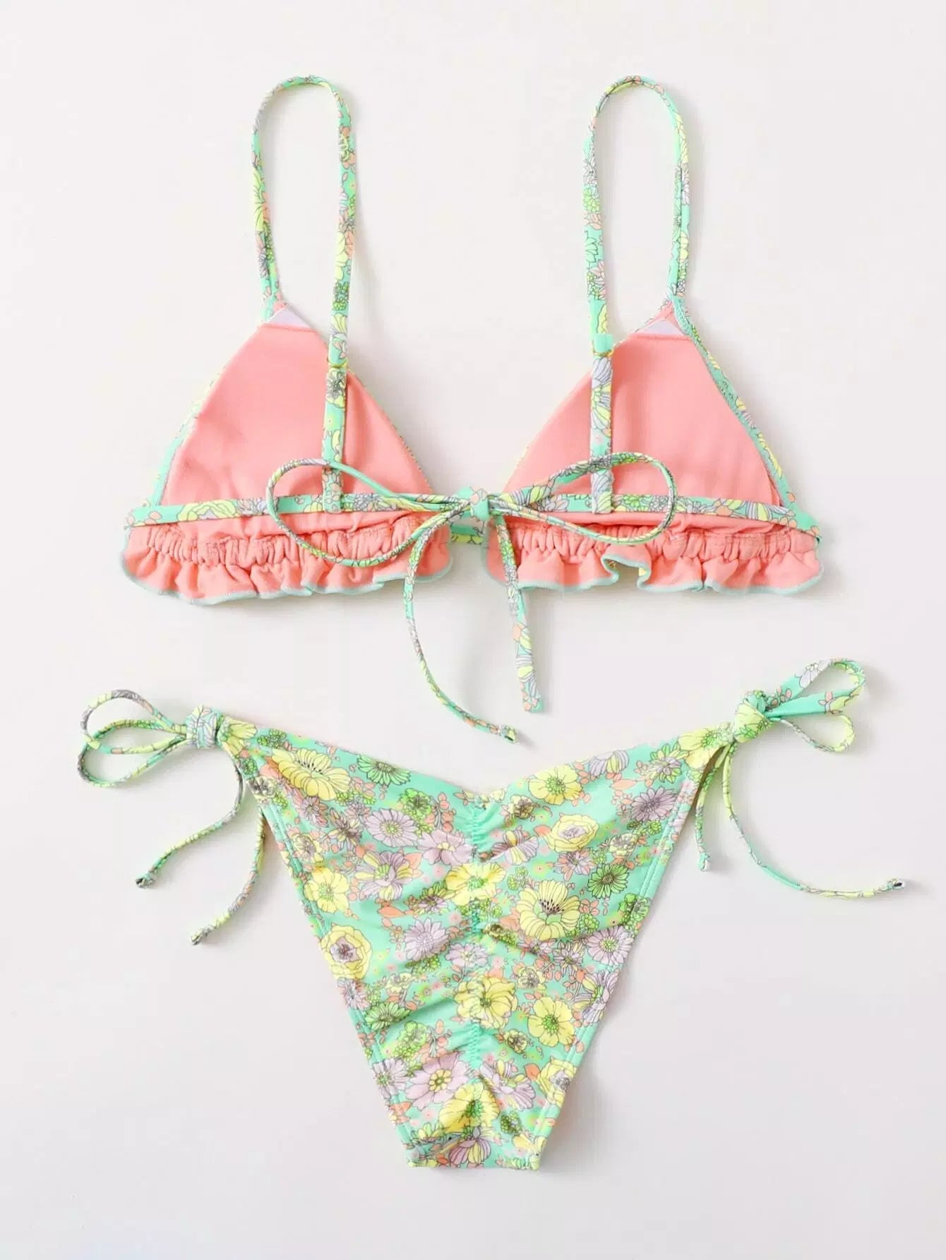 Floral Frill Triangle Tie Side Bikini Swimsuit