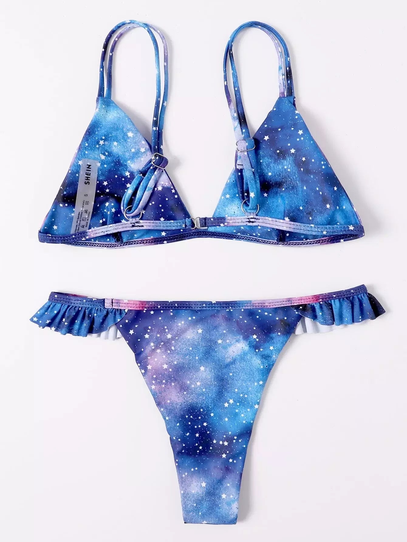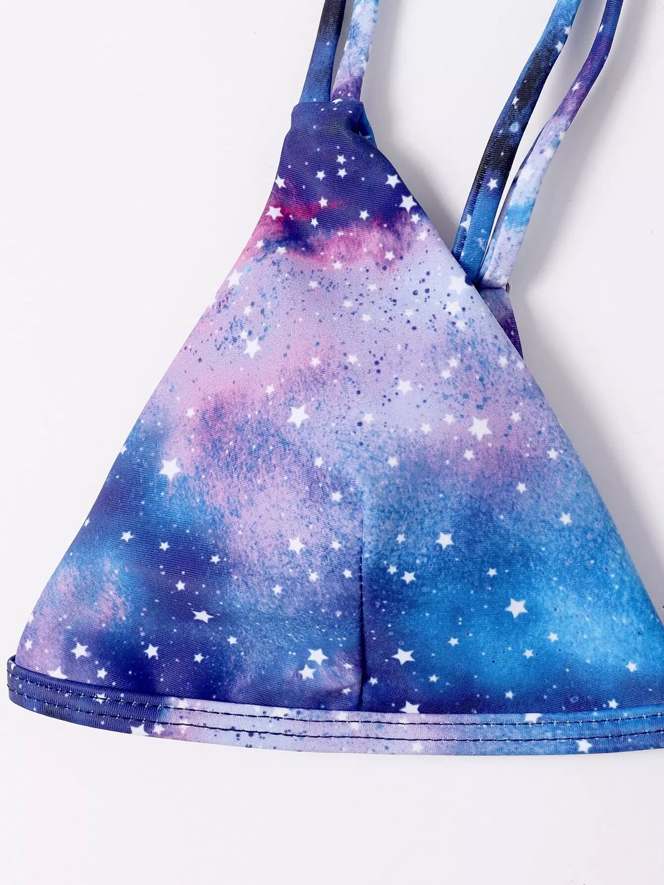 Galaxy Print Triangle Thong Bikini Swimsuit