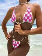 Gingham Pattern Triangle Thong Bikini Swimsuit