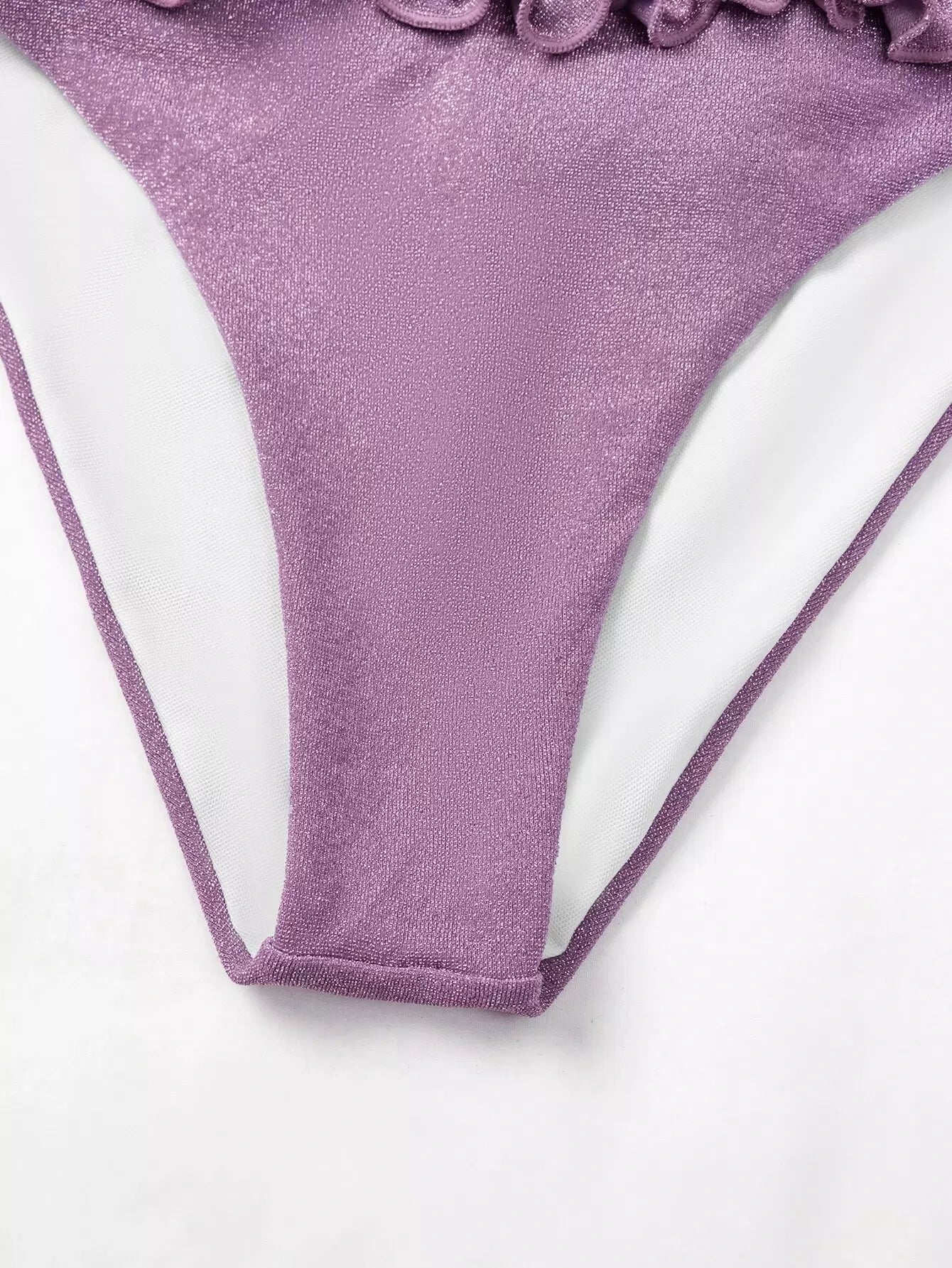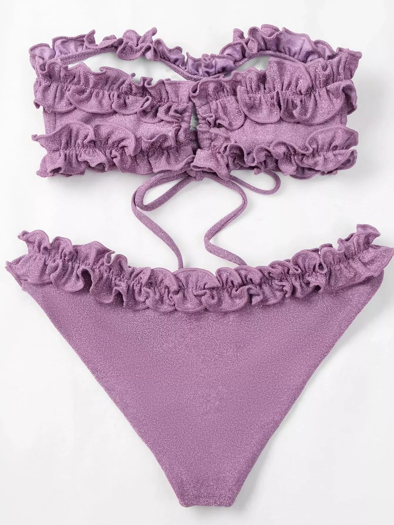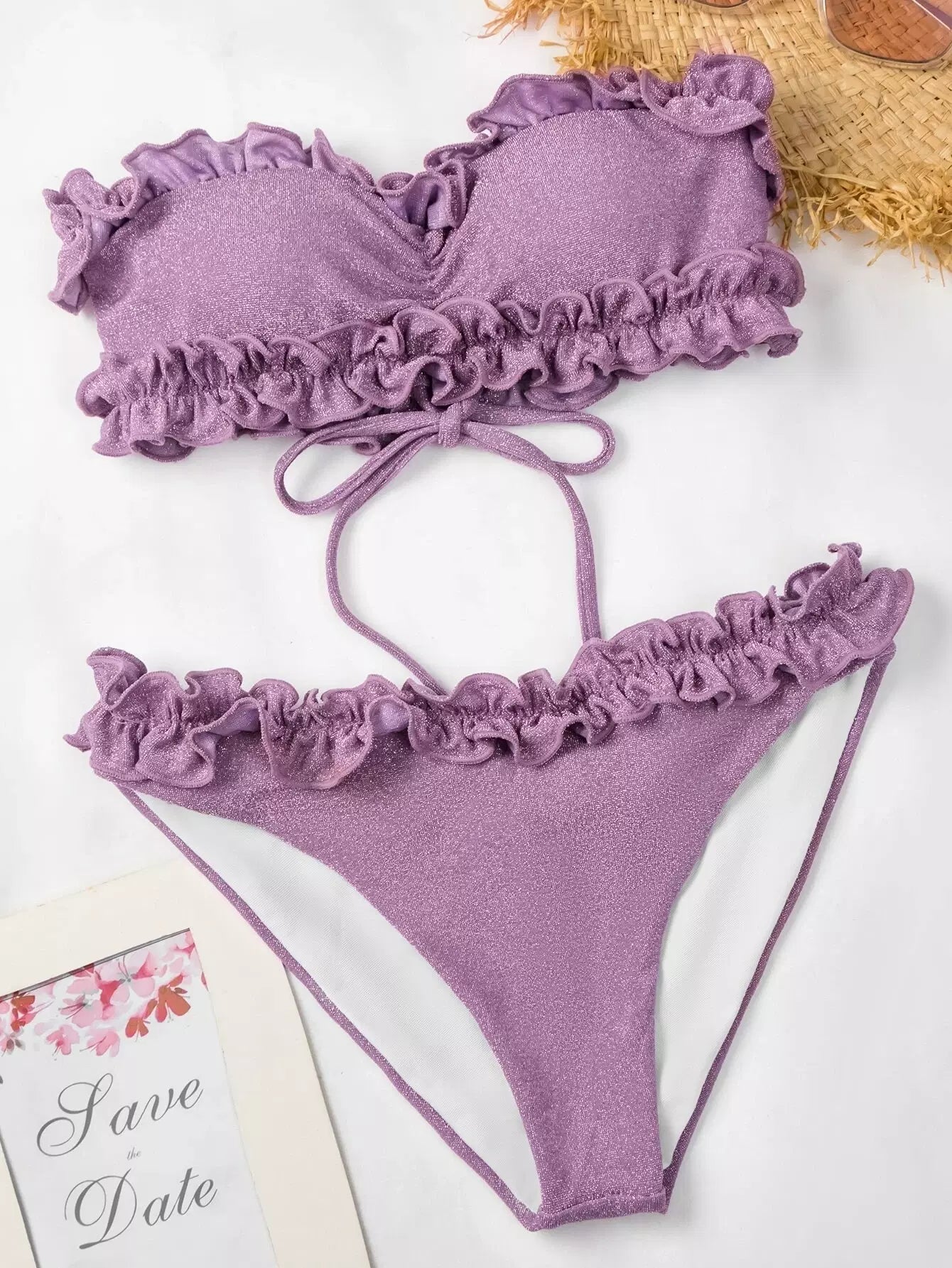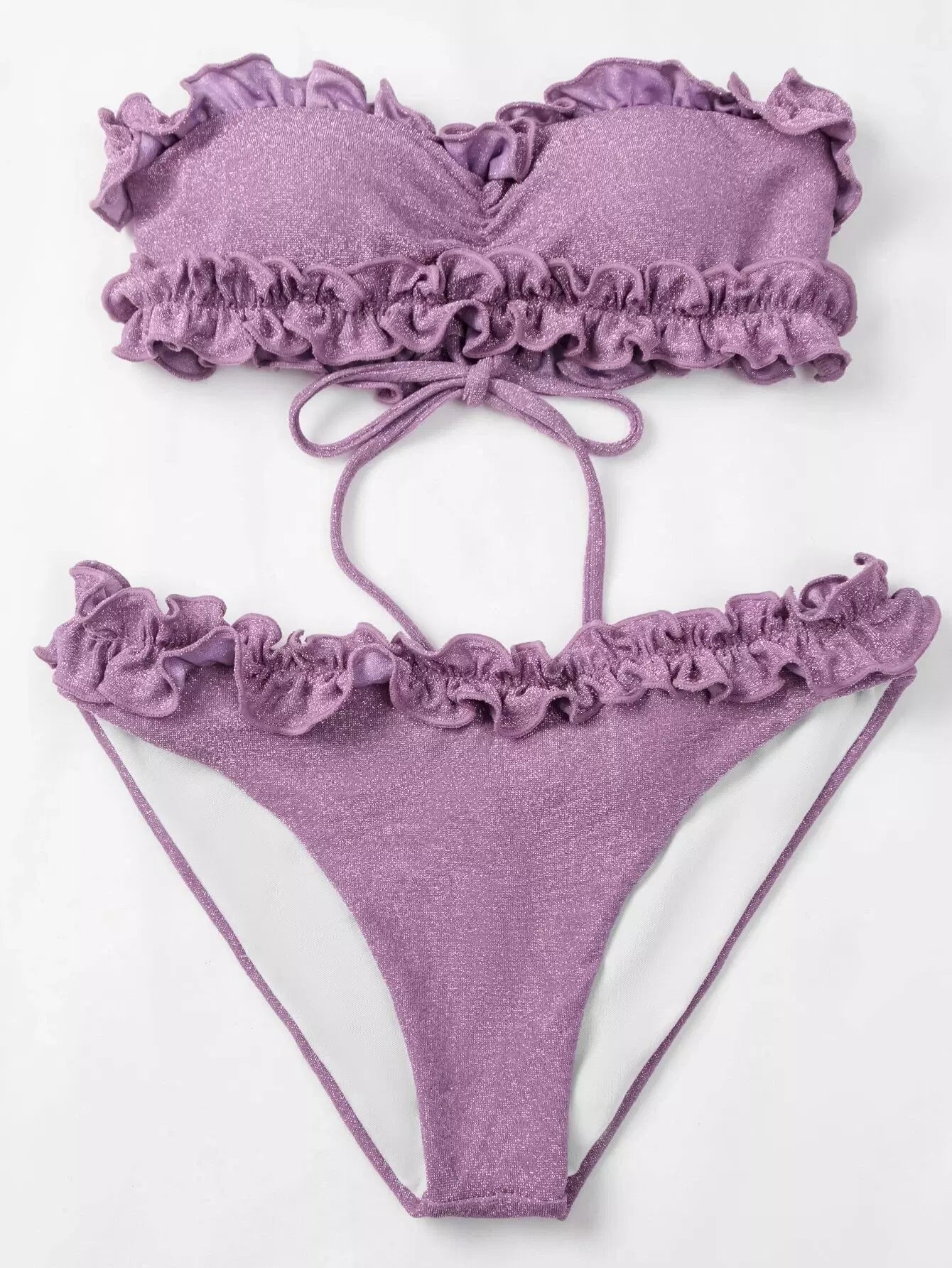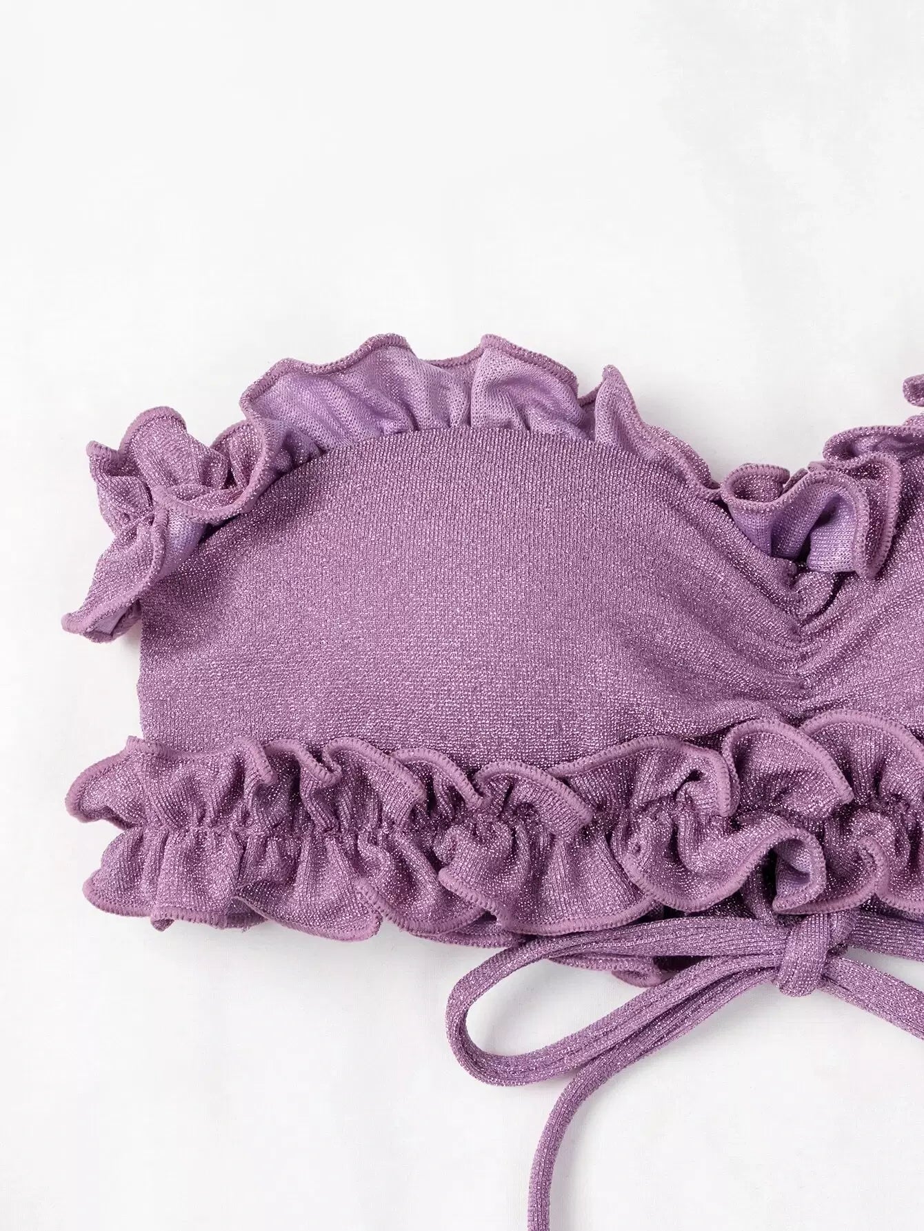 Glitter Frill Trim Bandeau Bikini Swimsuit