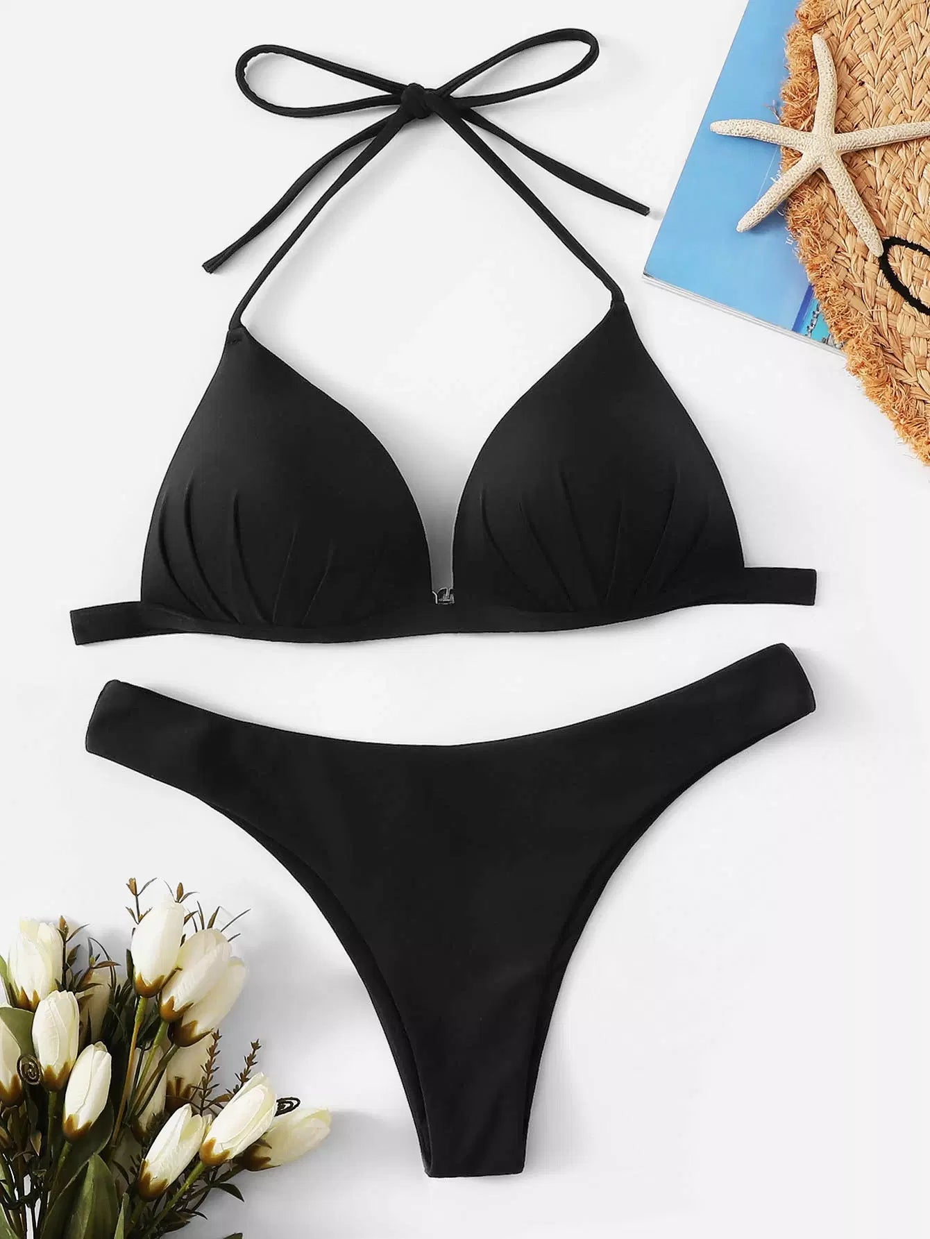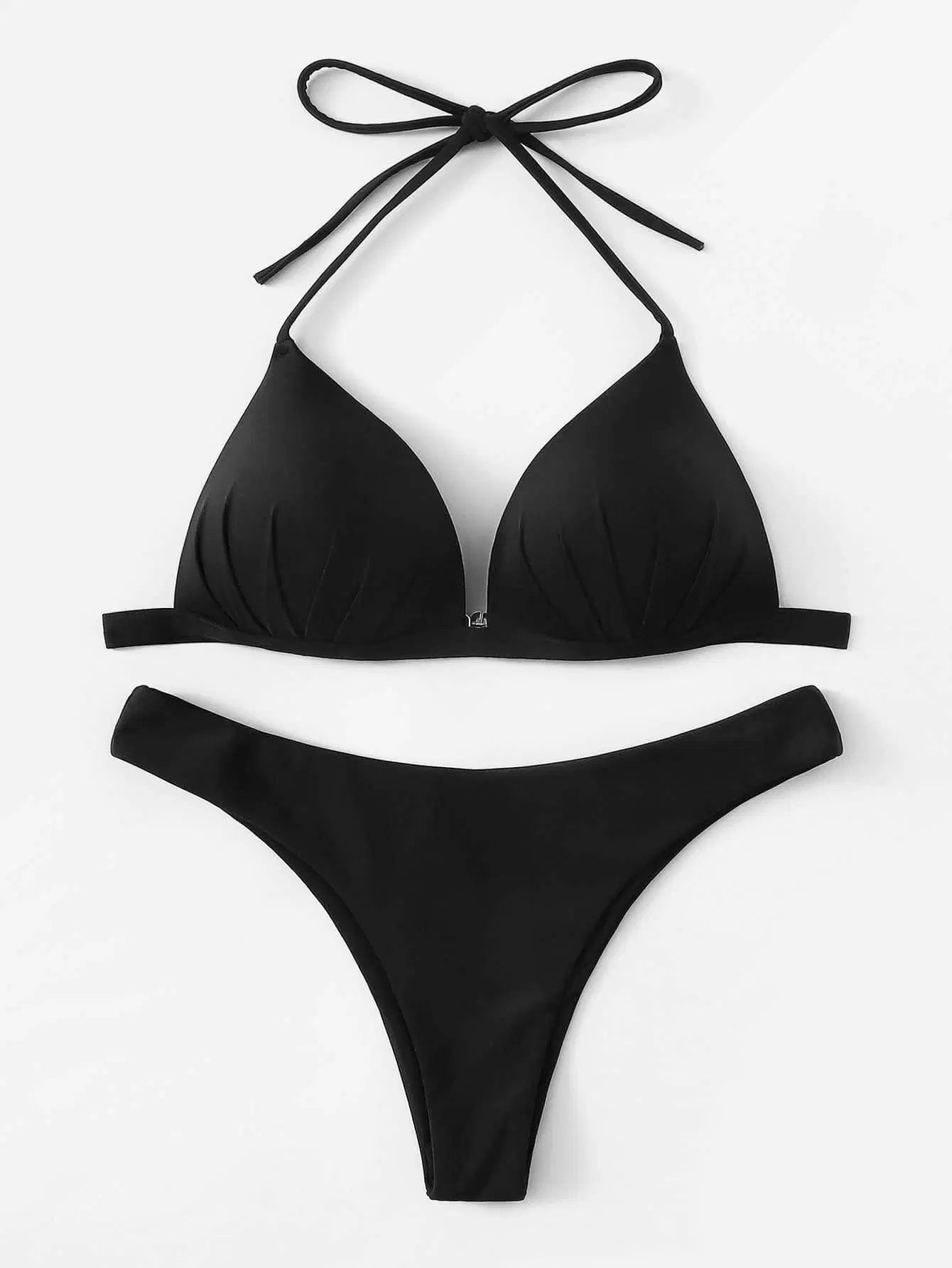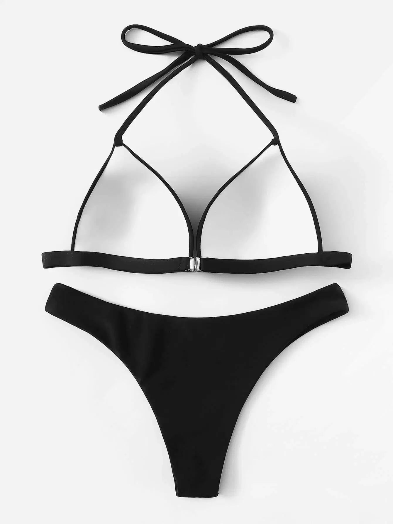 Women - Halter Triangle High Leg Bikini Swimsuit