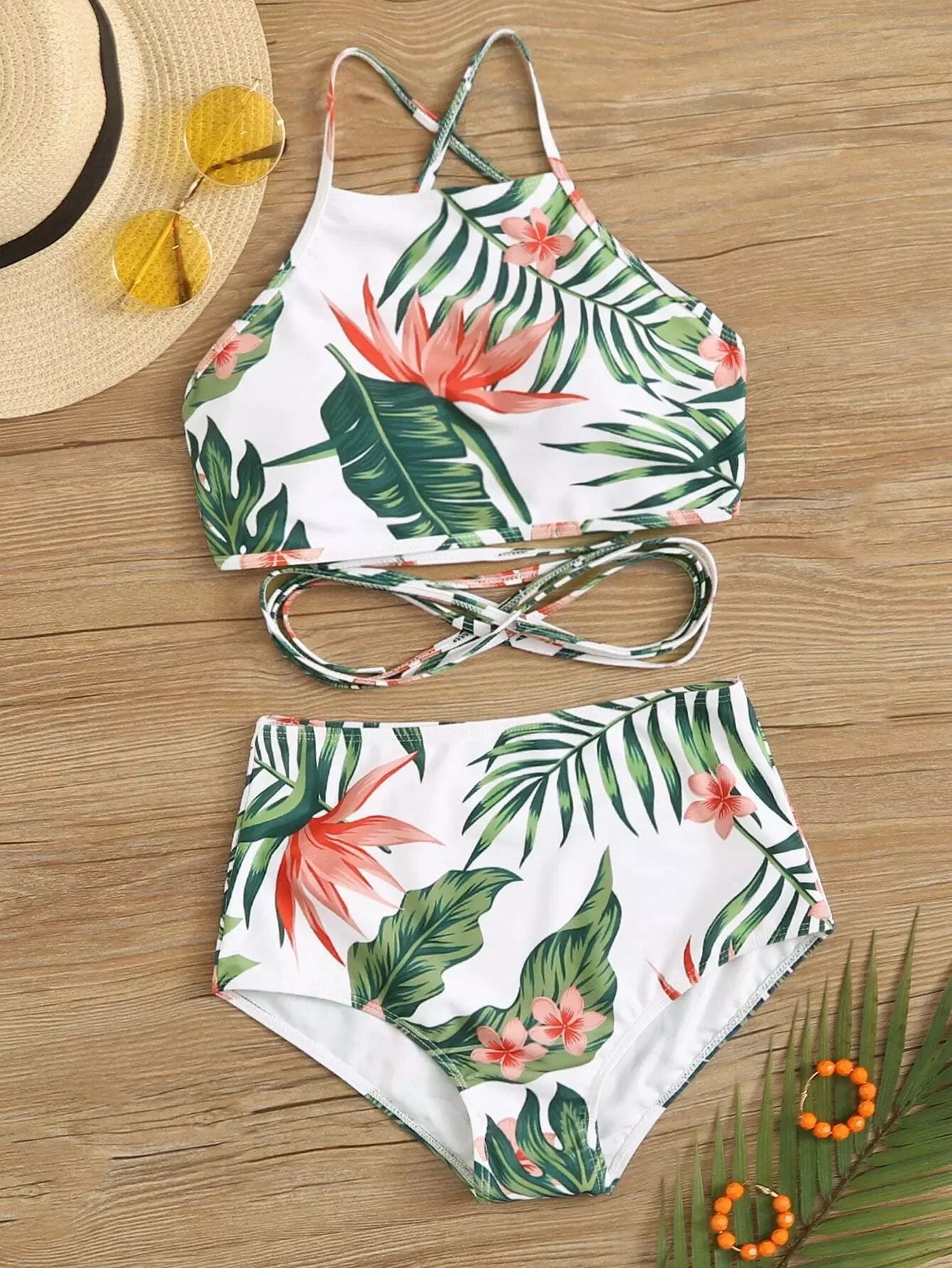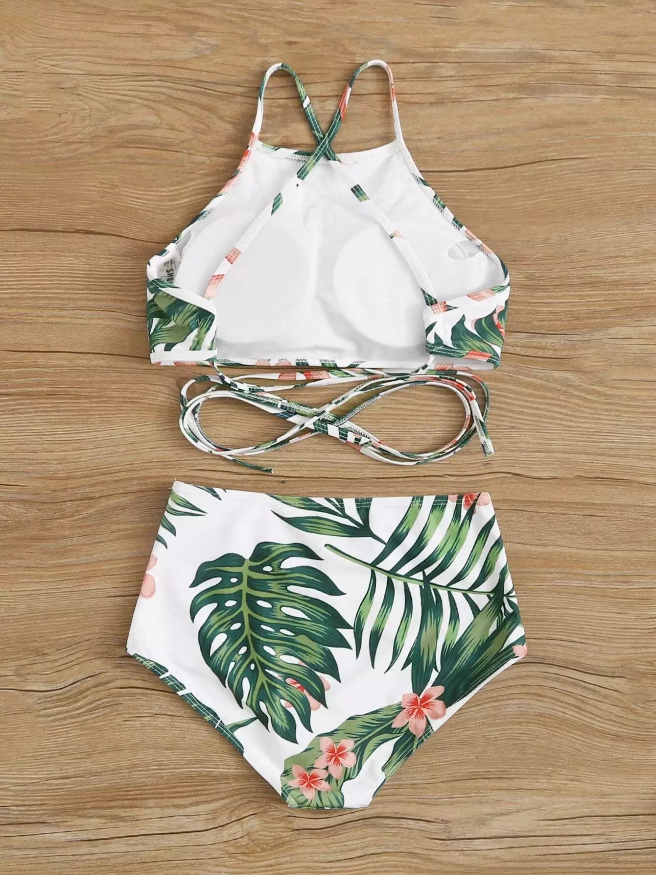 Random Tropical Crisscross High Waisted Bikini Swimsuit