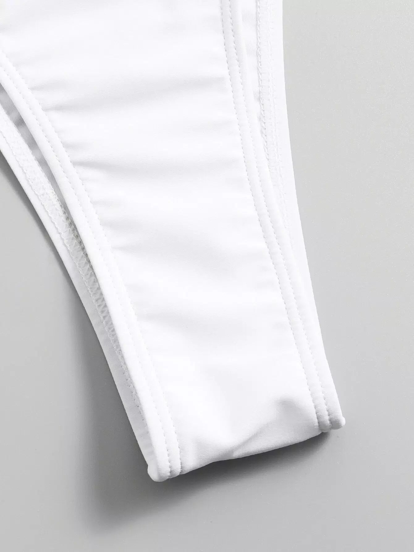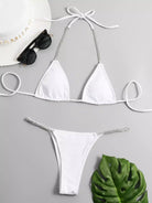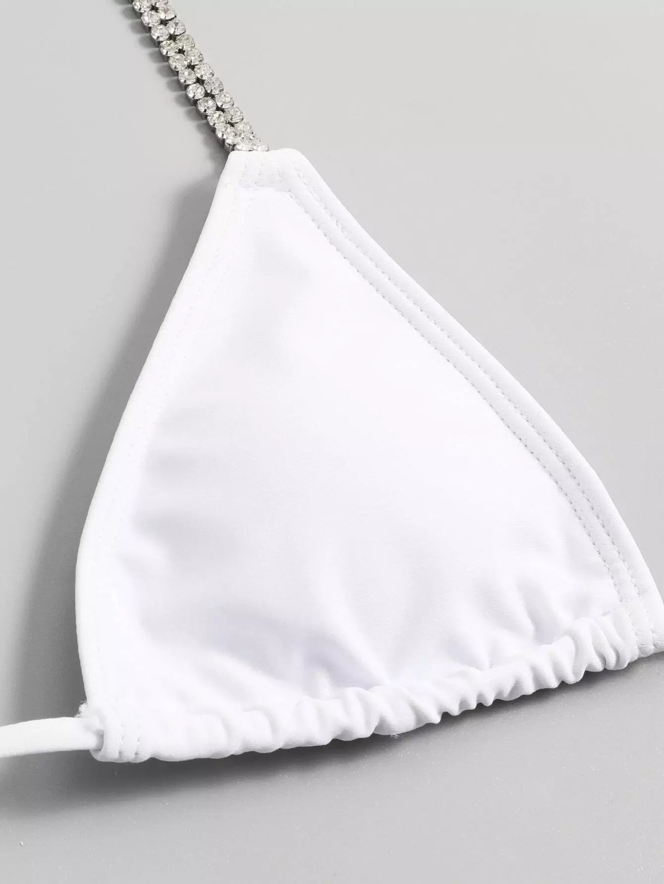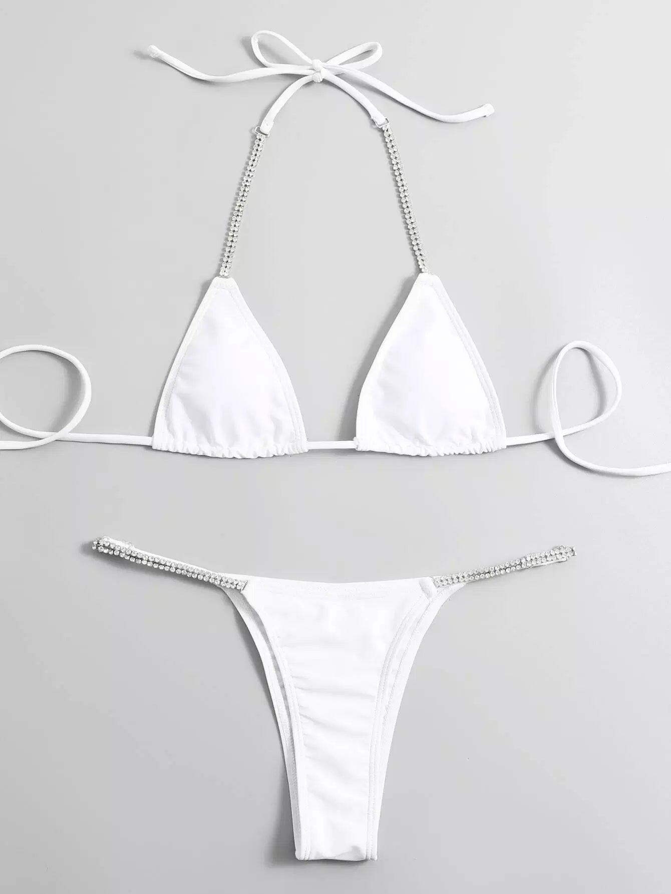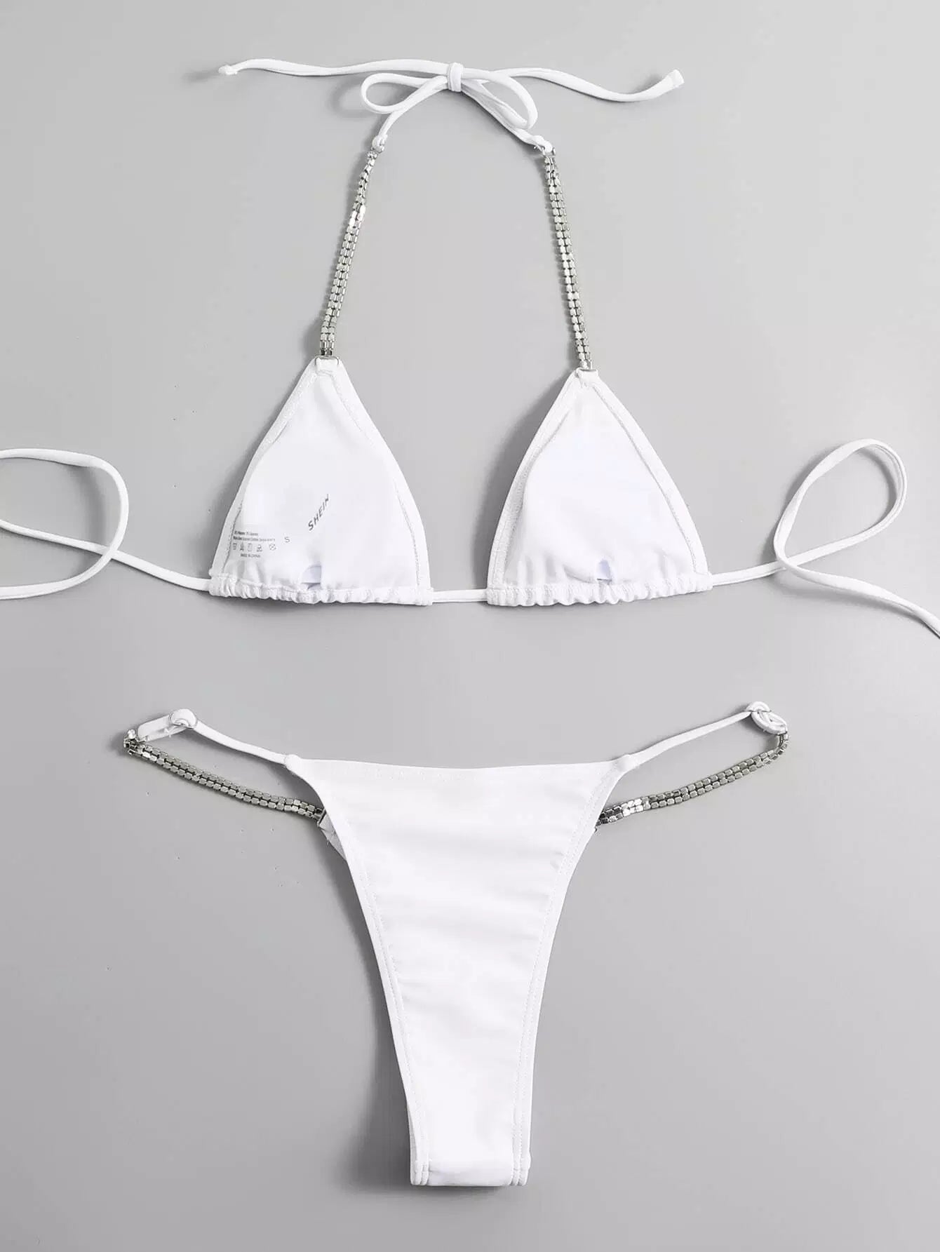 Rhinestone Decor Triangle Thong Bikini Swimsuit