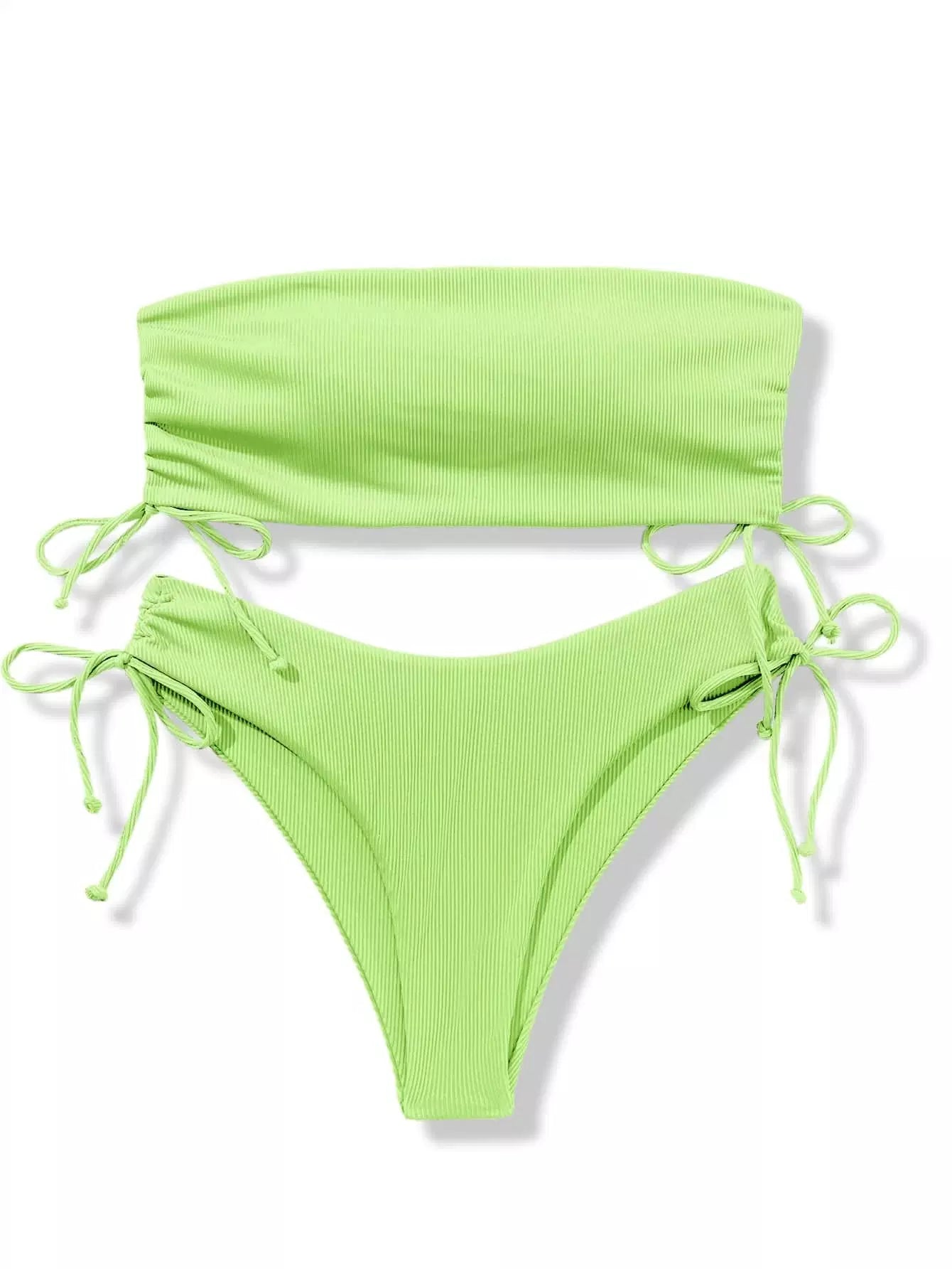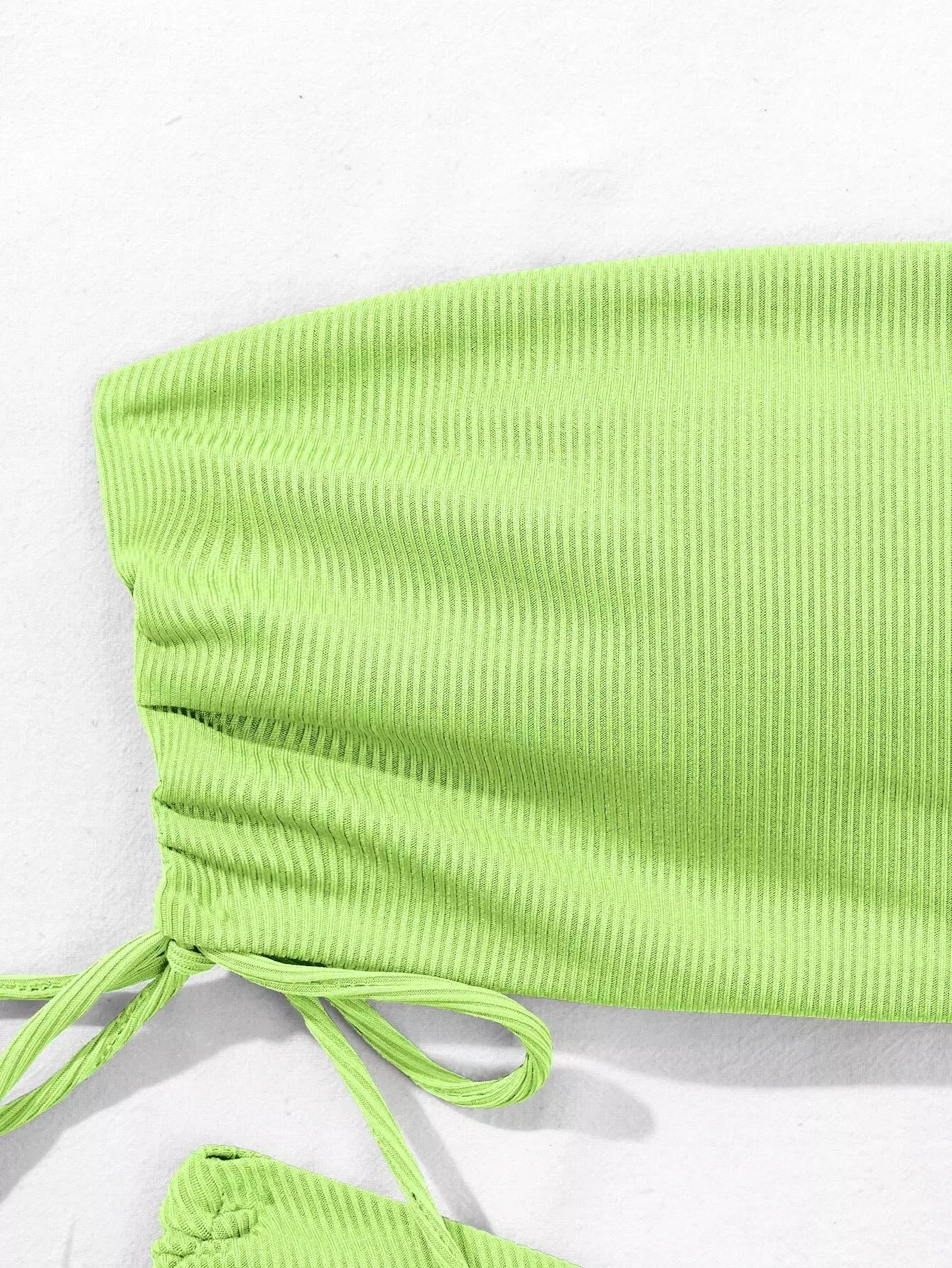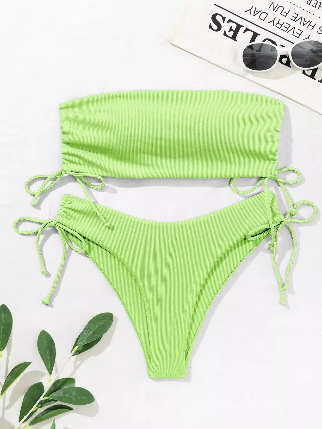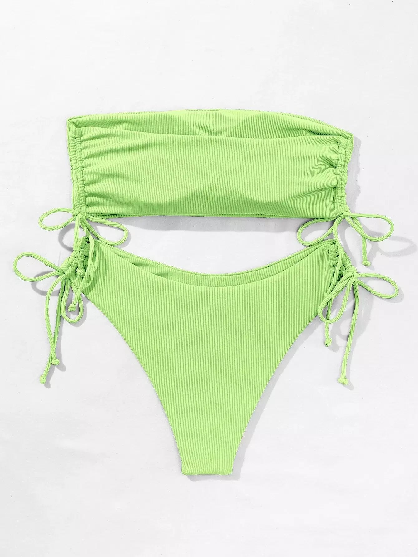Rib Drawstring Side Bandeau Bikini Swimsuit