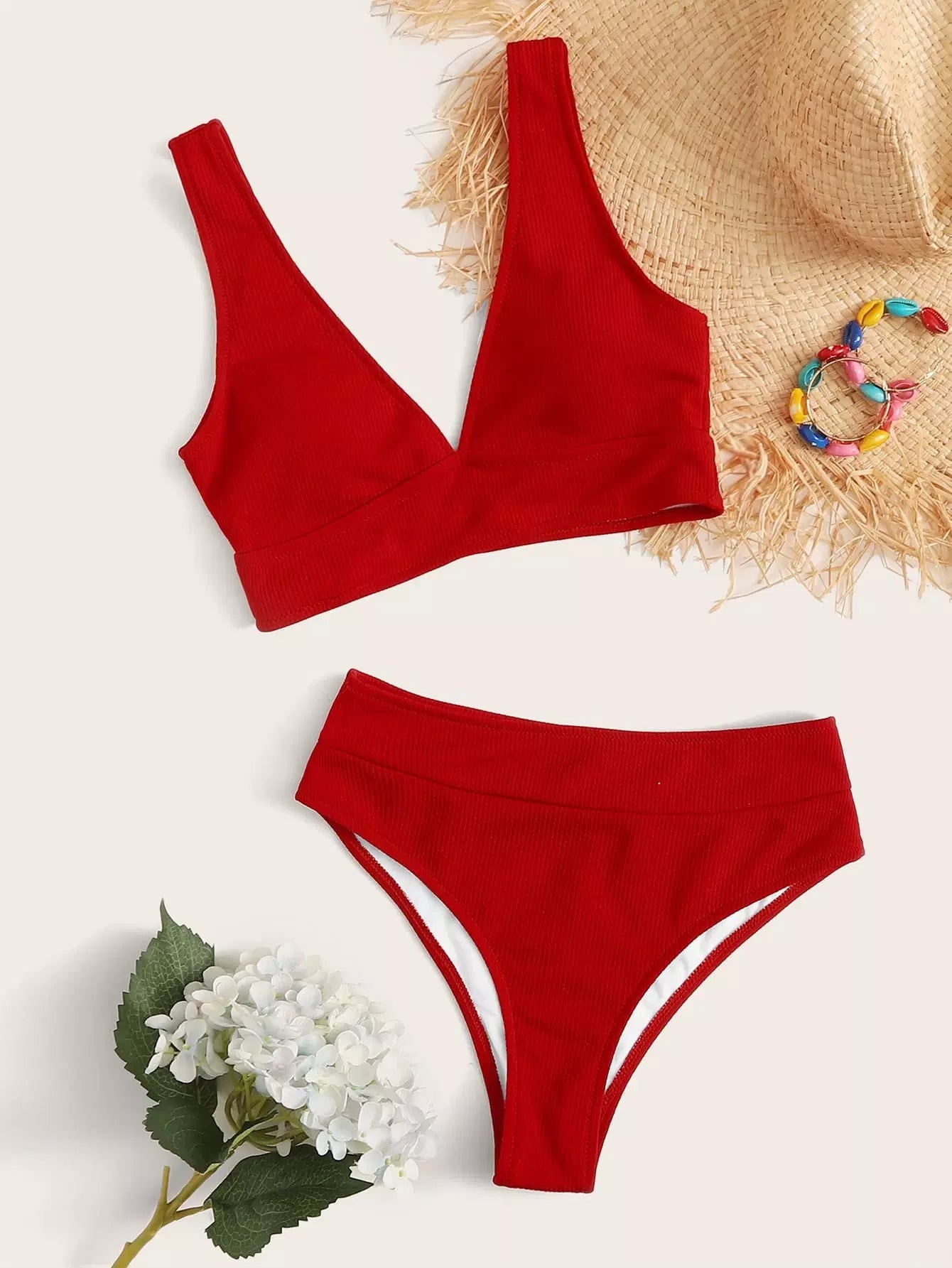 Rib High Waisted Bikini Swimsuit