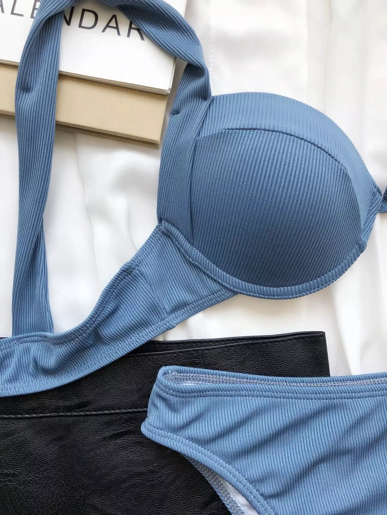 Rib Underwire High Waisted Bikini Swimsuit
