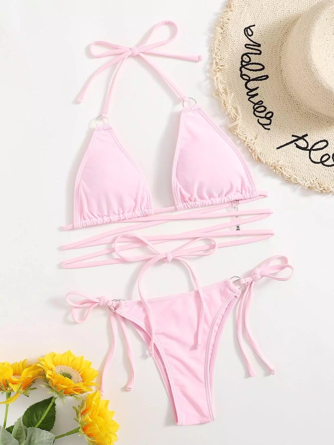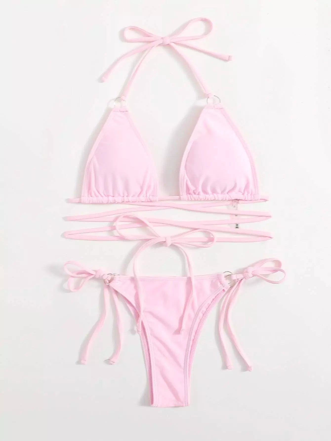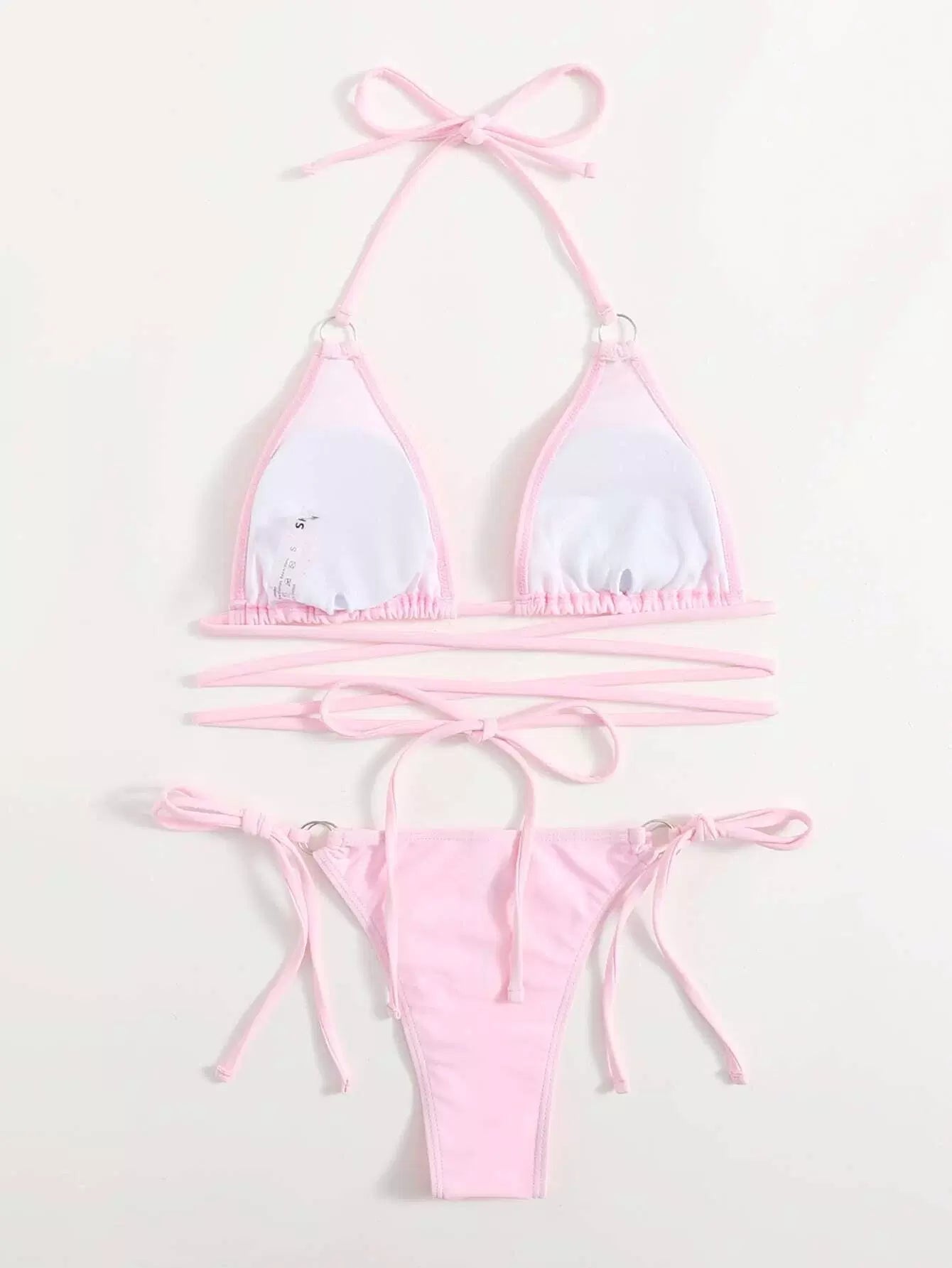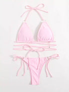 Ring Linked Triangle Tie Side Bikini Swimsuit