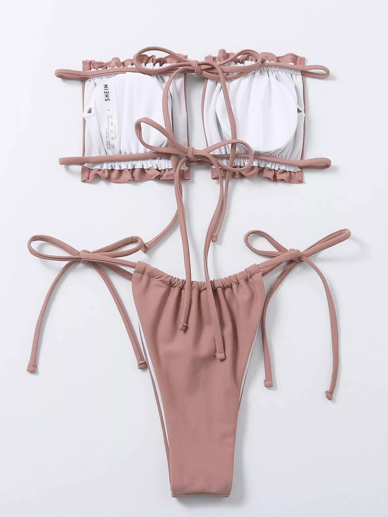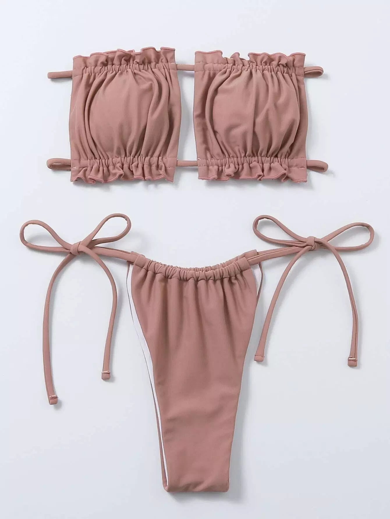Ruched Frill Bandeau Tie Side Bikini Swimsuit