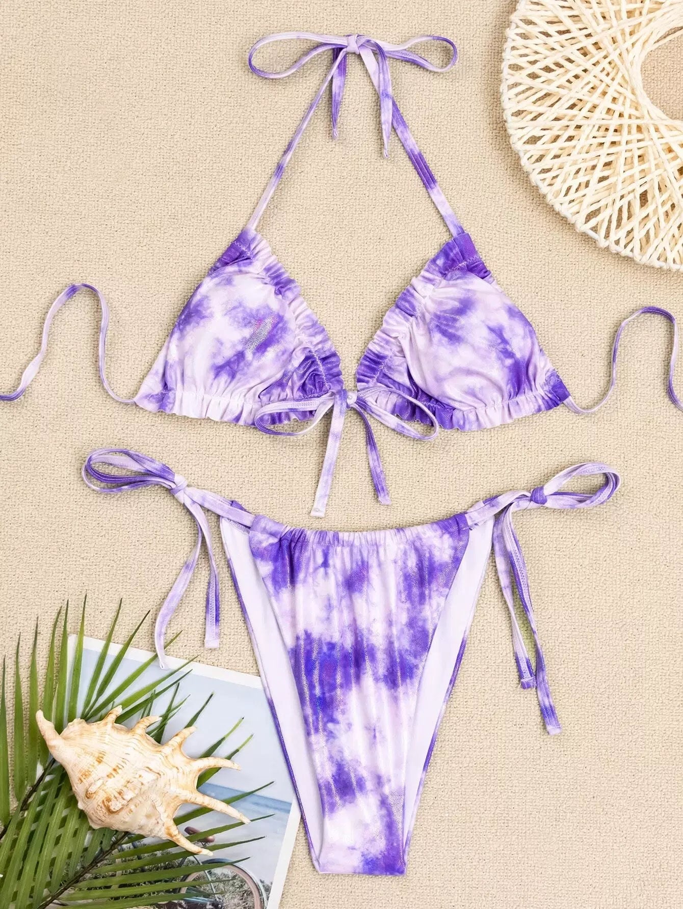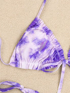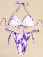 Tie Dye Frill Trim Thong Bikini Swimsuit