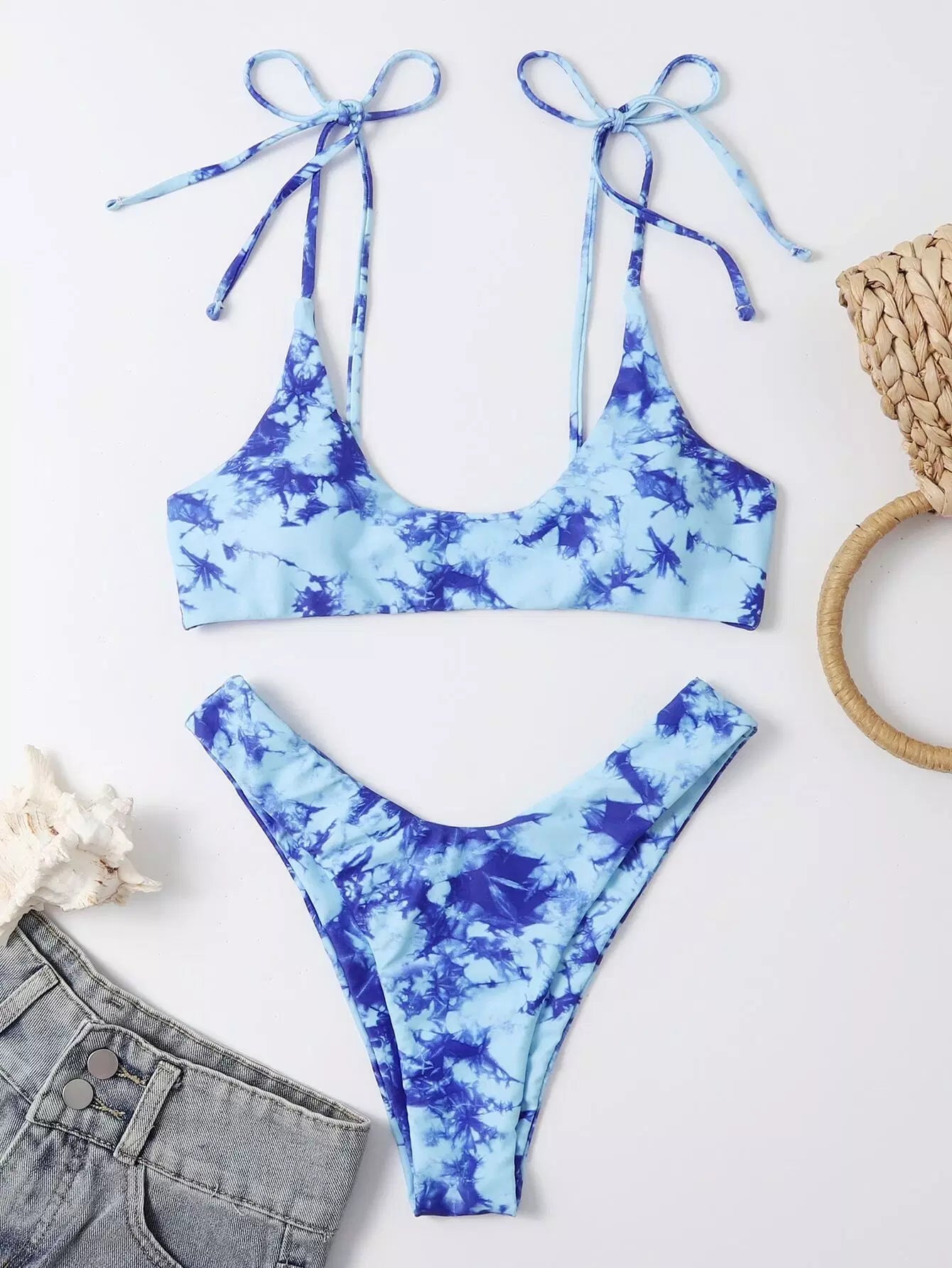 Tie Dye Tie Shoulder Bikini Swimsuit