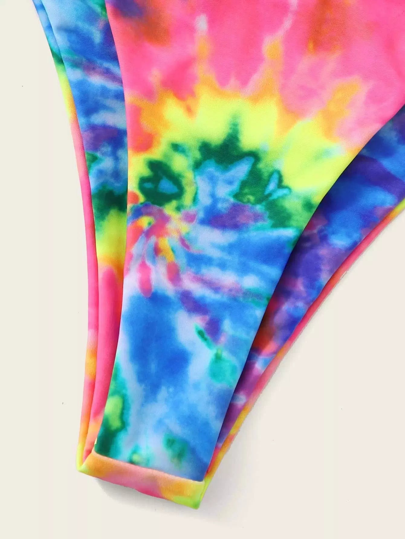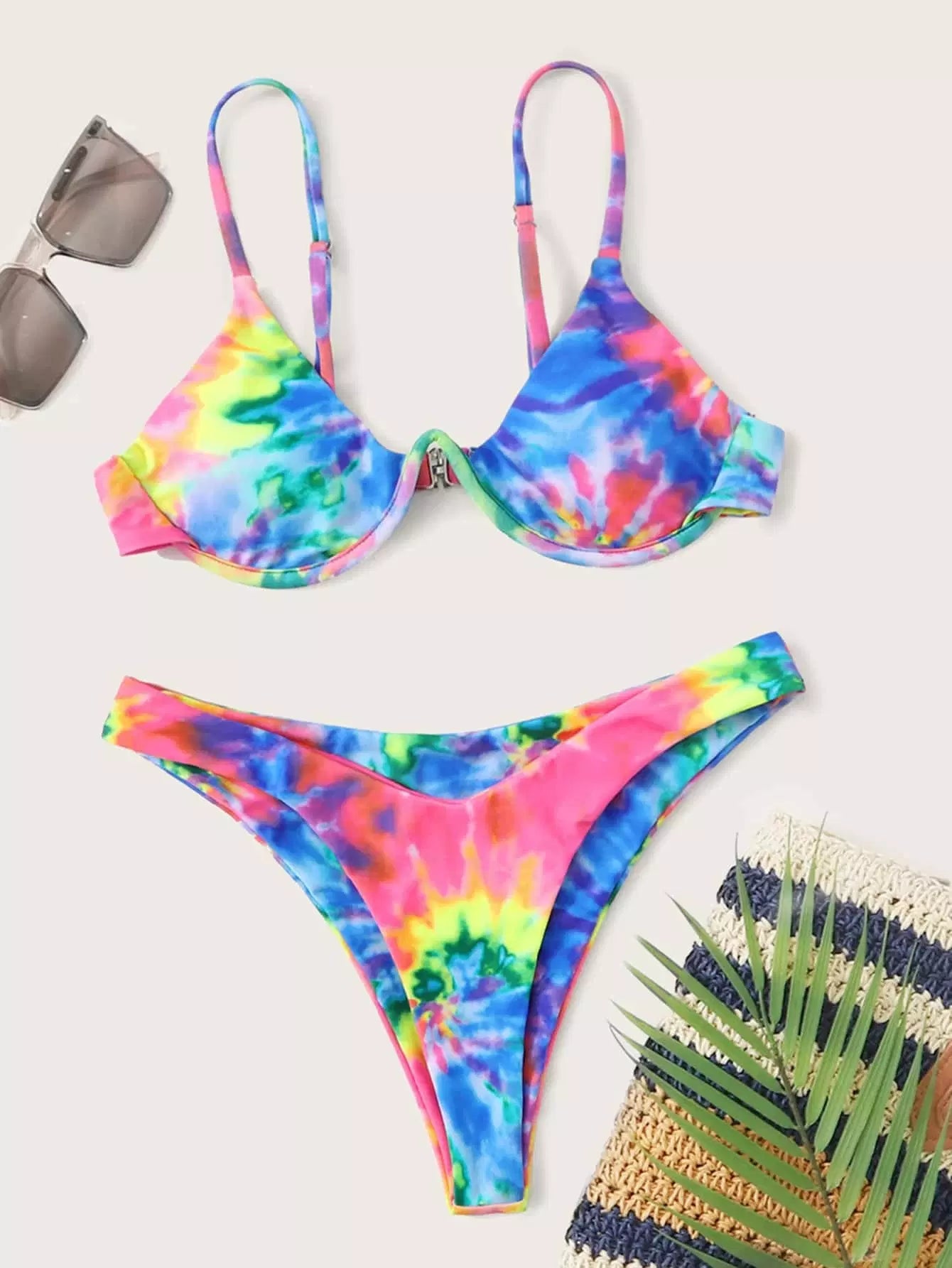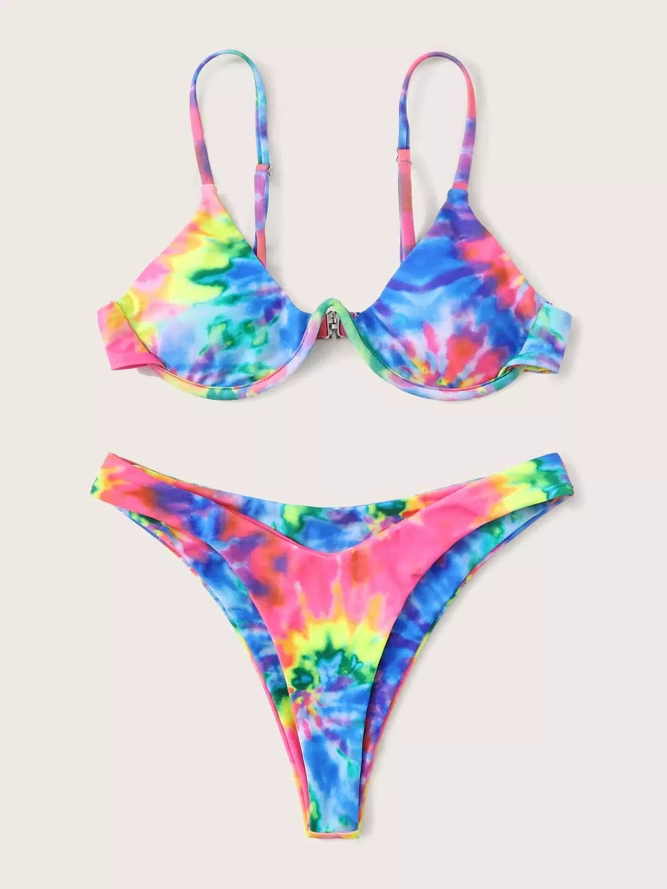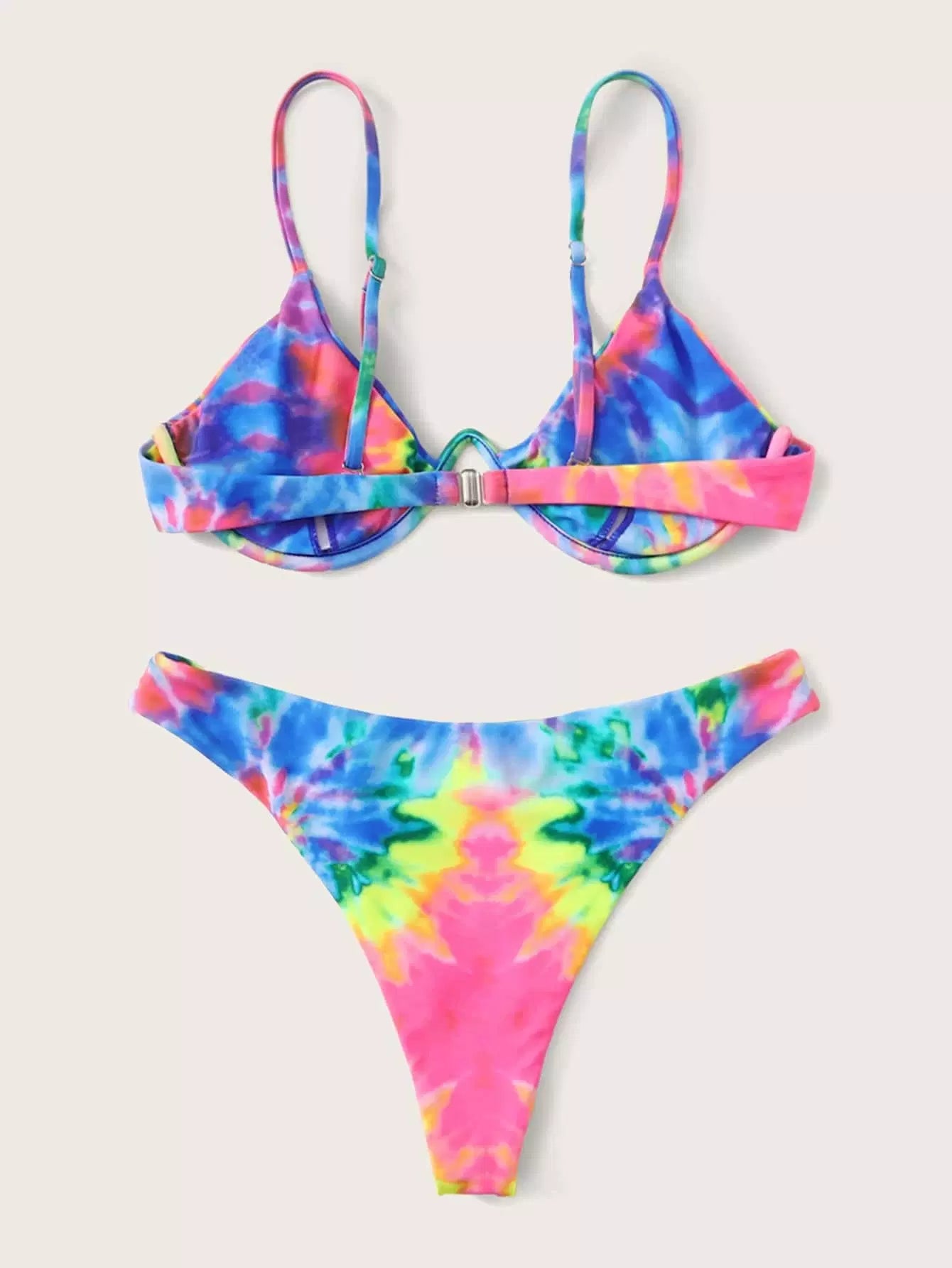 Tie Dye Underwire High Leg Bikini Swimsuit