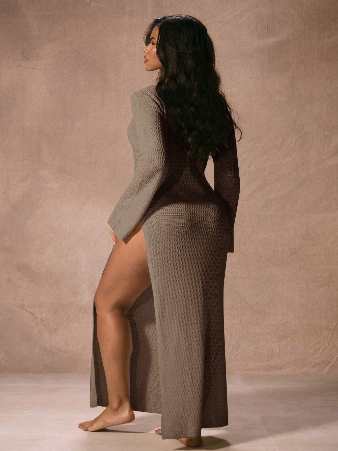 Musera Resort Crochet Knit Plunge Neckline Shell Detail Long Sleeve Maxi Dress Beach Swim Cover Up Vacation