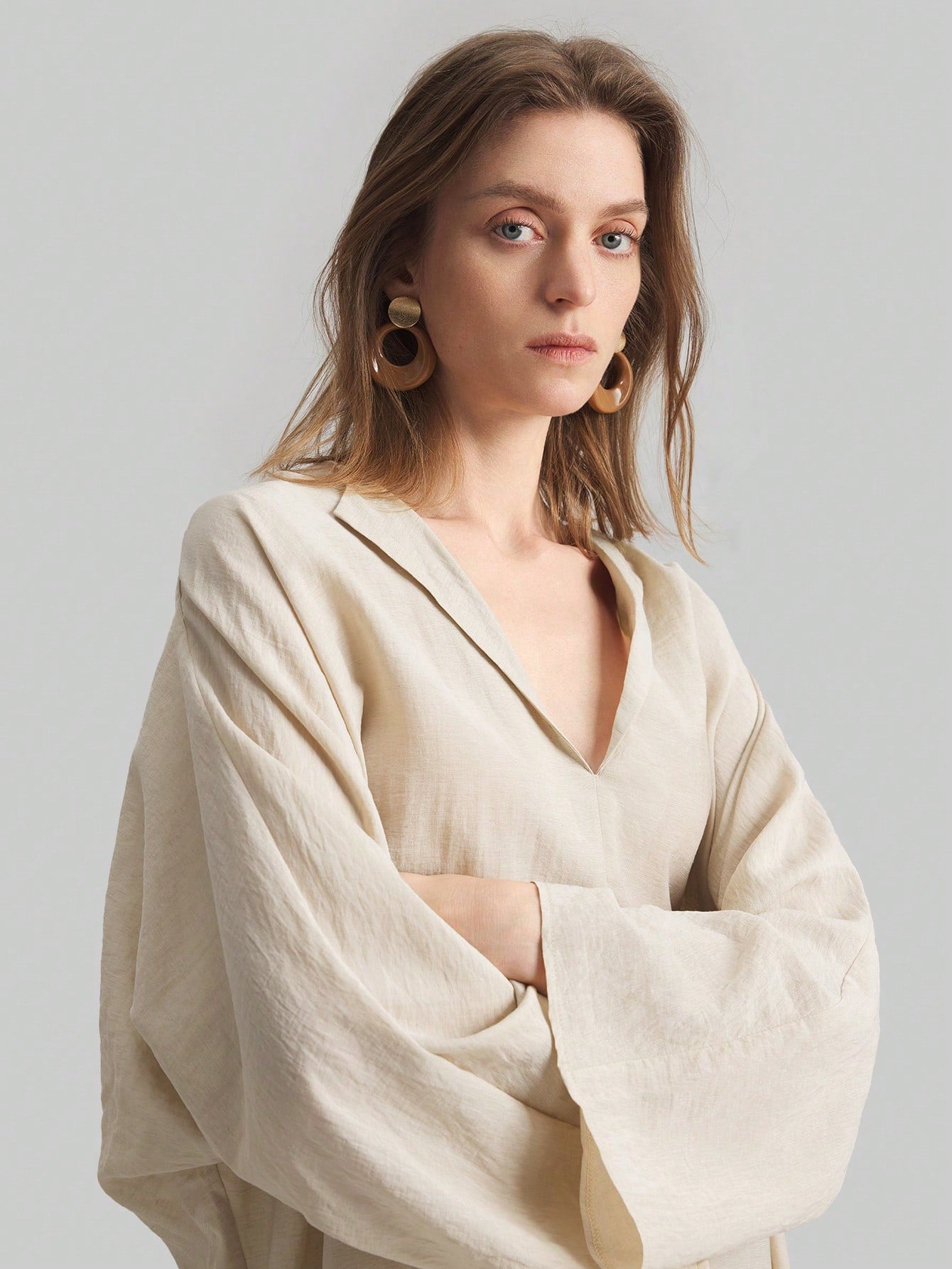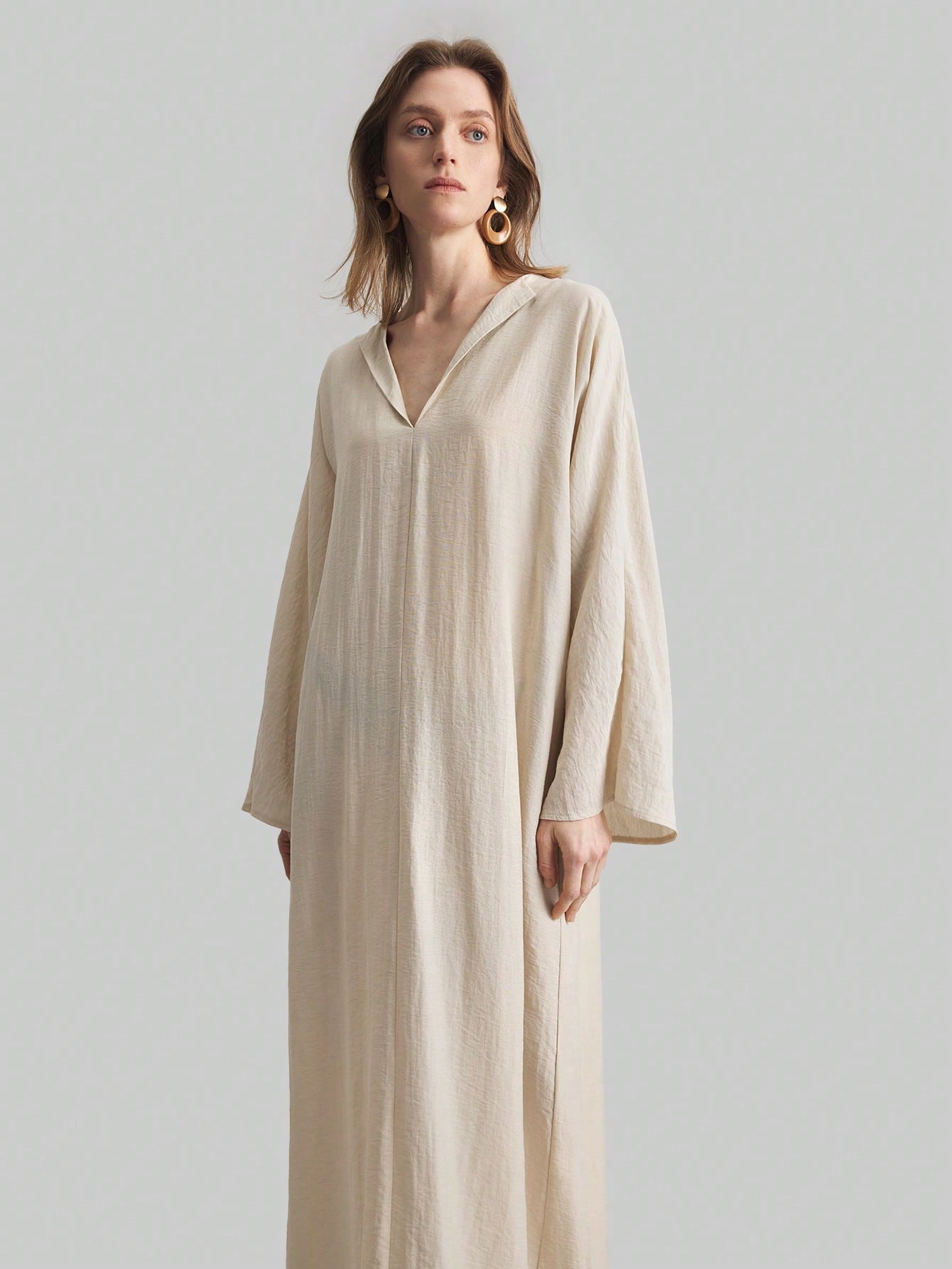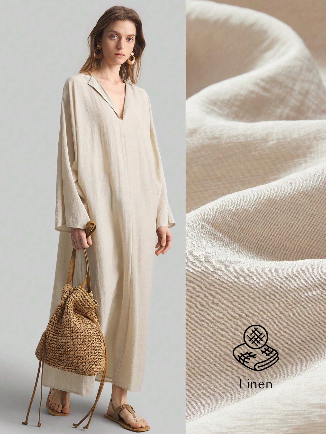 Ontre Women's Light Gray Four-Season Bohemian Resort Dress, Dropped Shoulder Long Sleeve Loose Straight