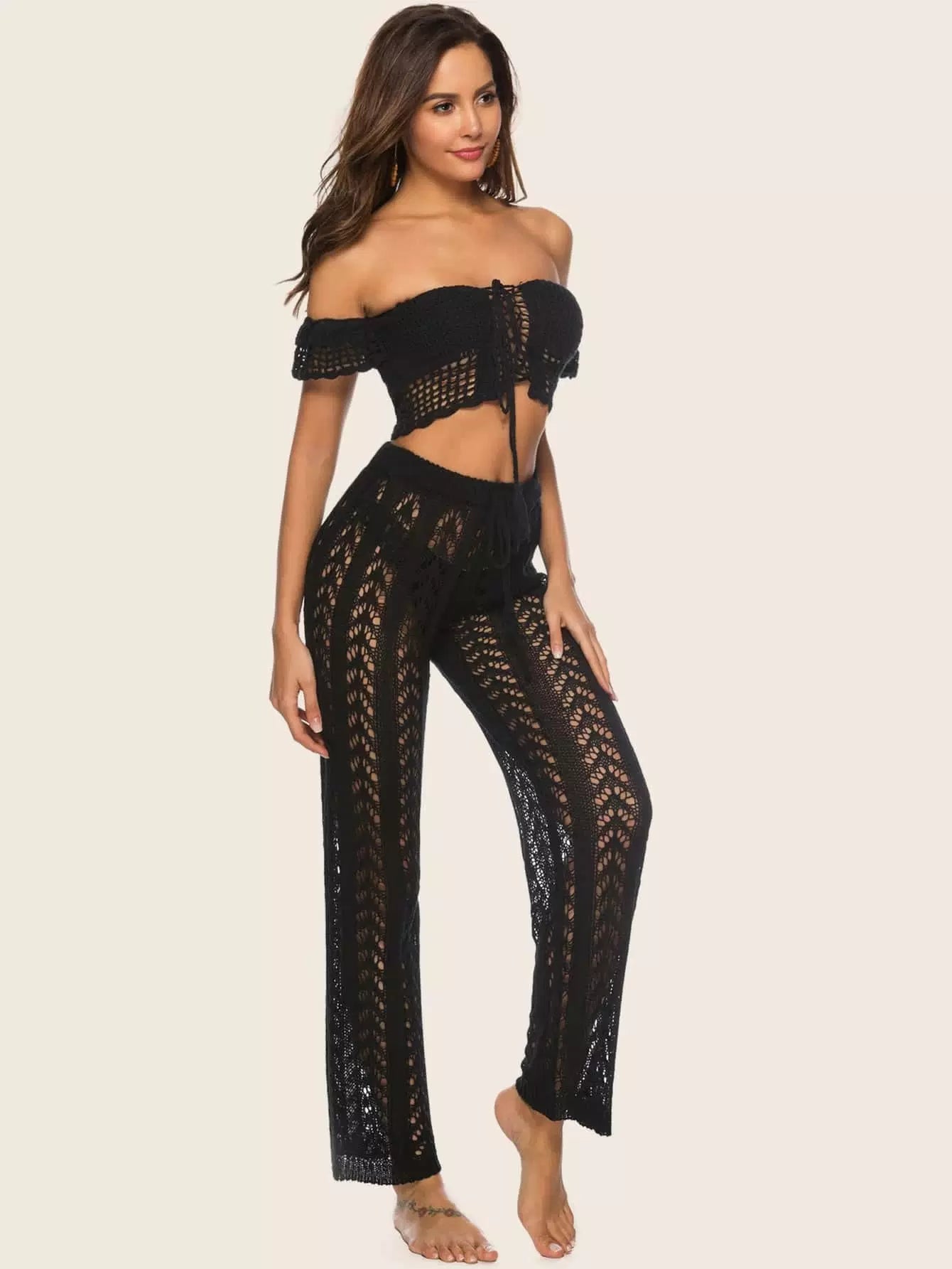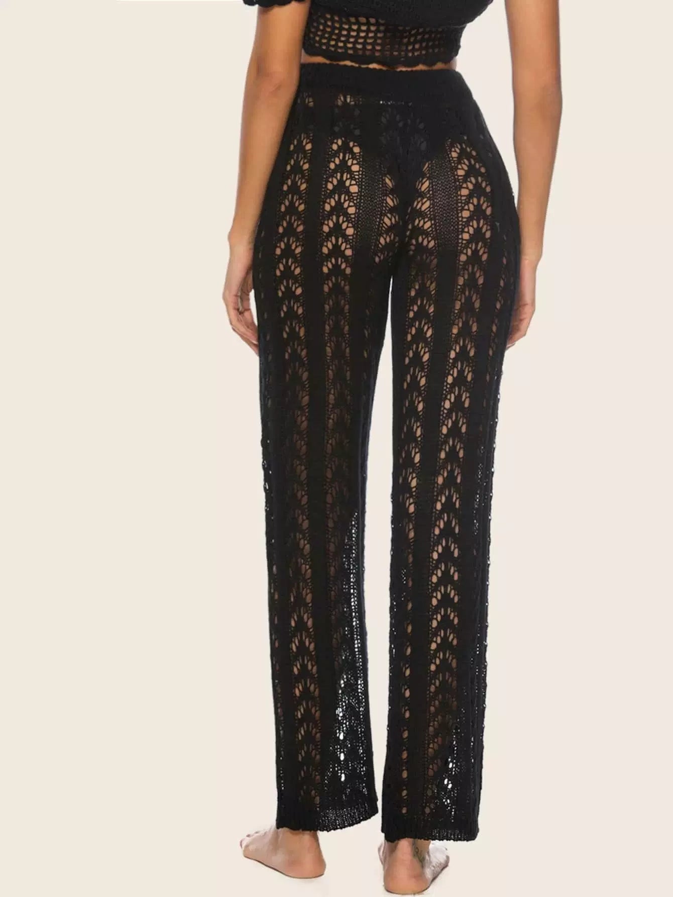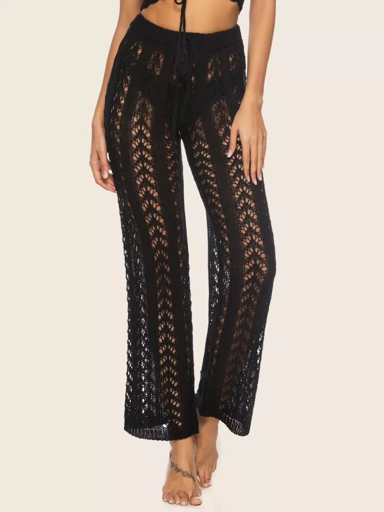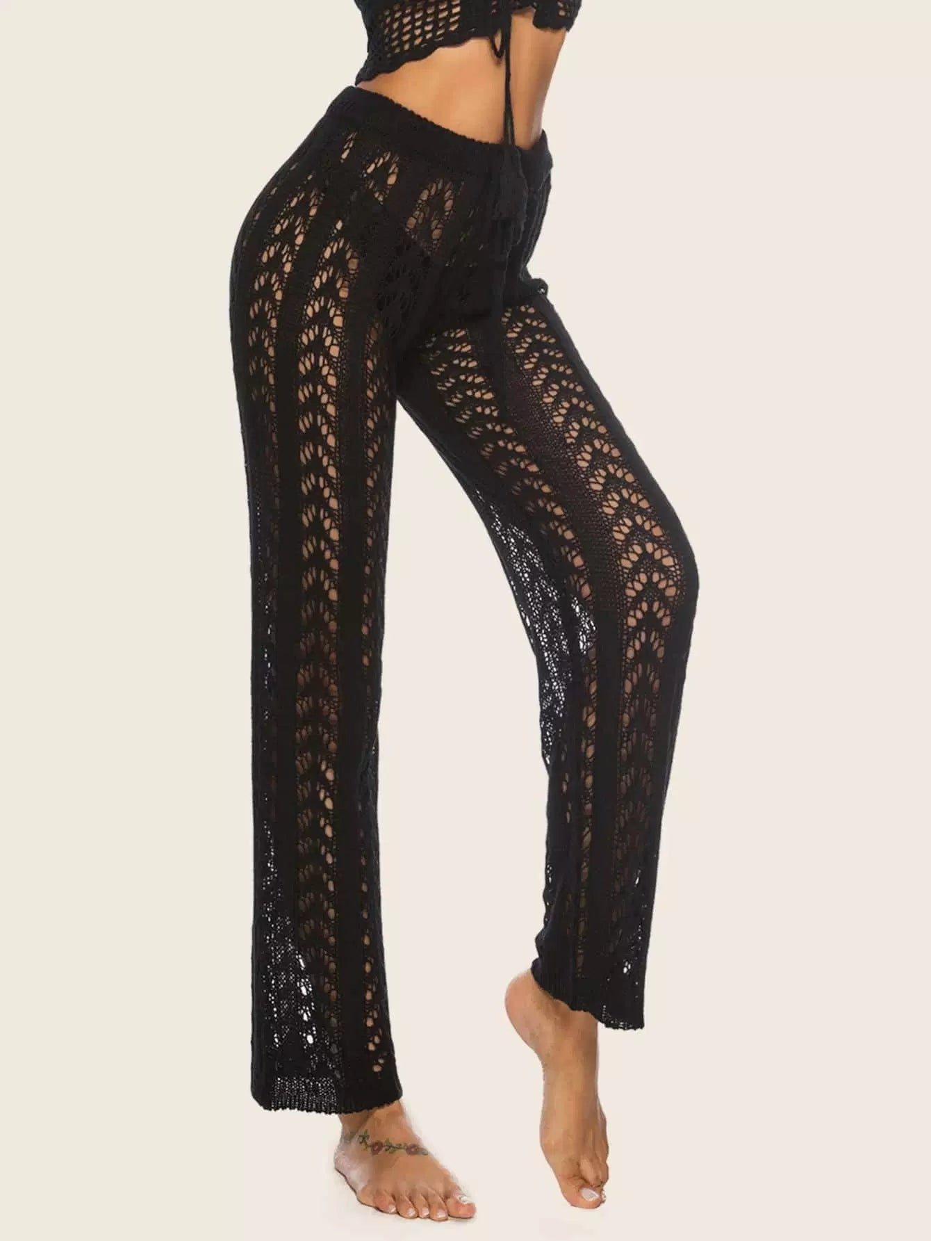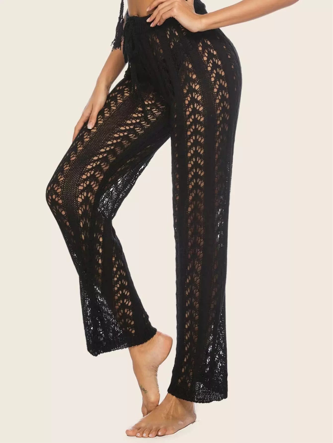 Women - Drawstring Waist Hollow Out Cover Up Pants