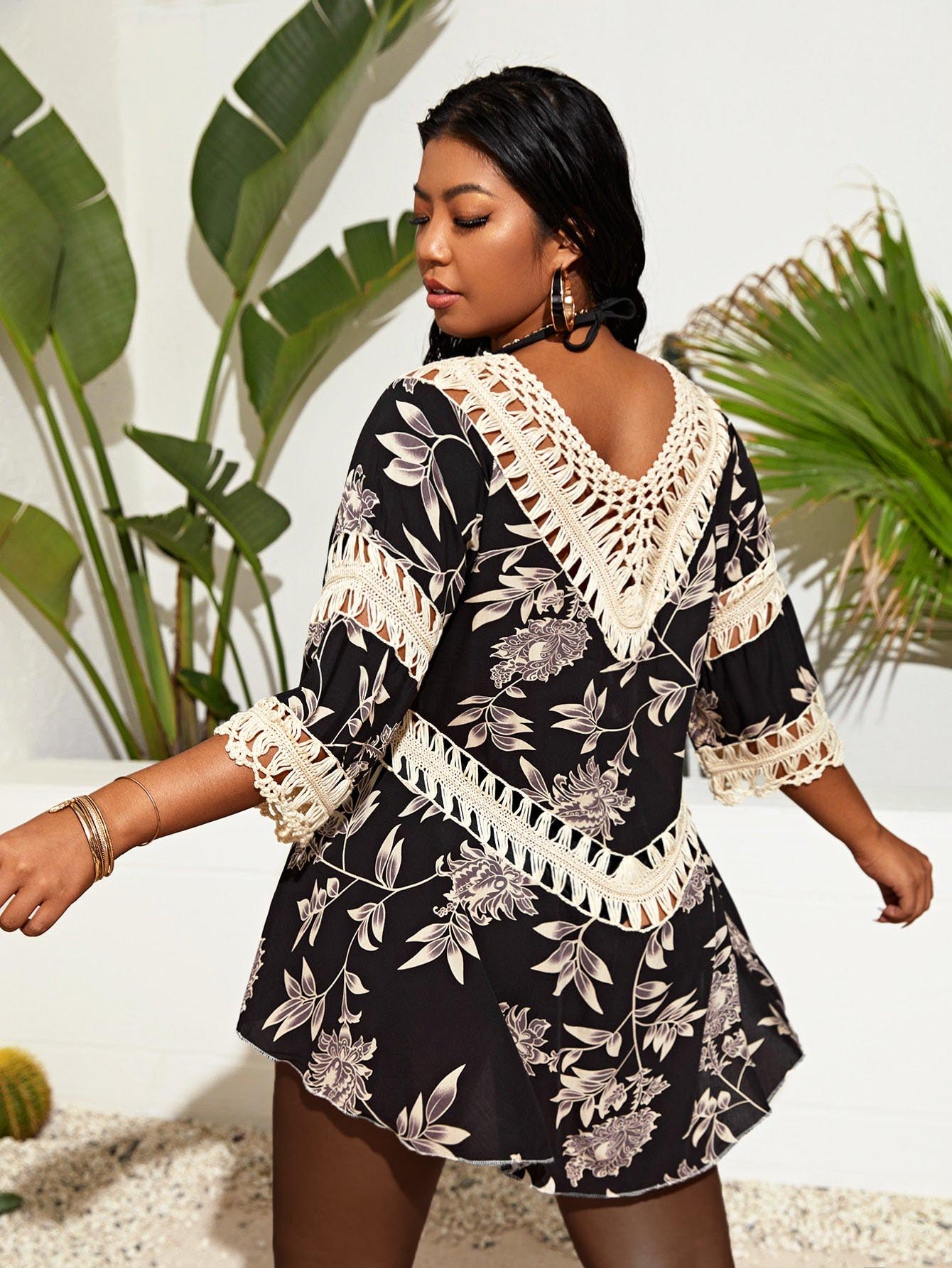 Plus Floral Crochet Insert Cover Up