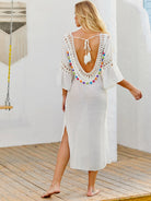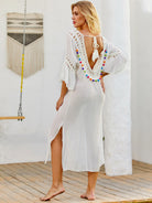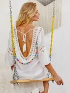 Tie Back Pom Pom Detail Slit Hem Cover Up
